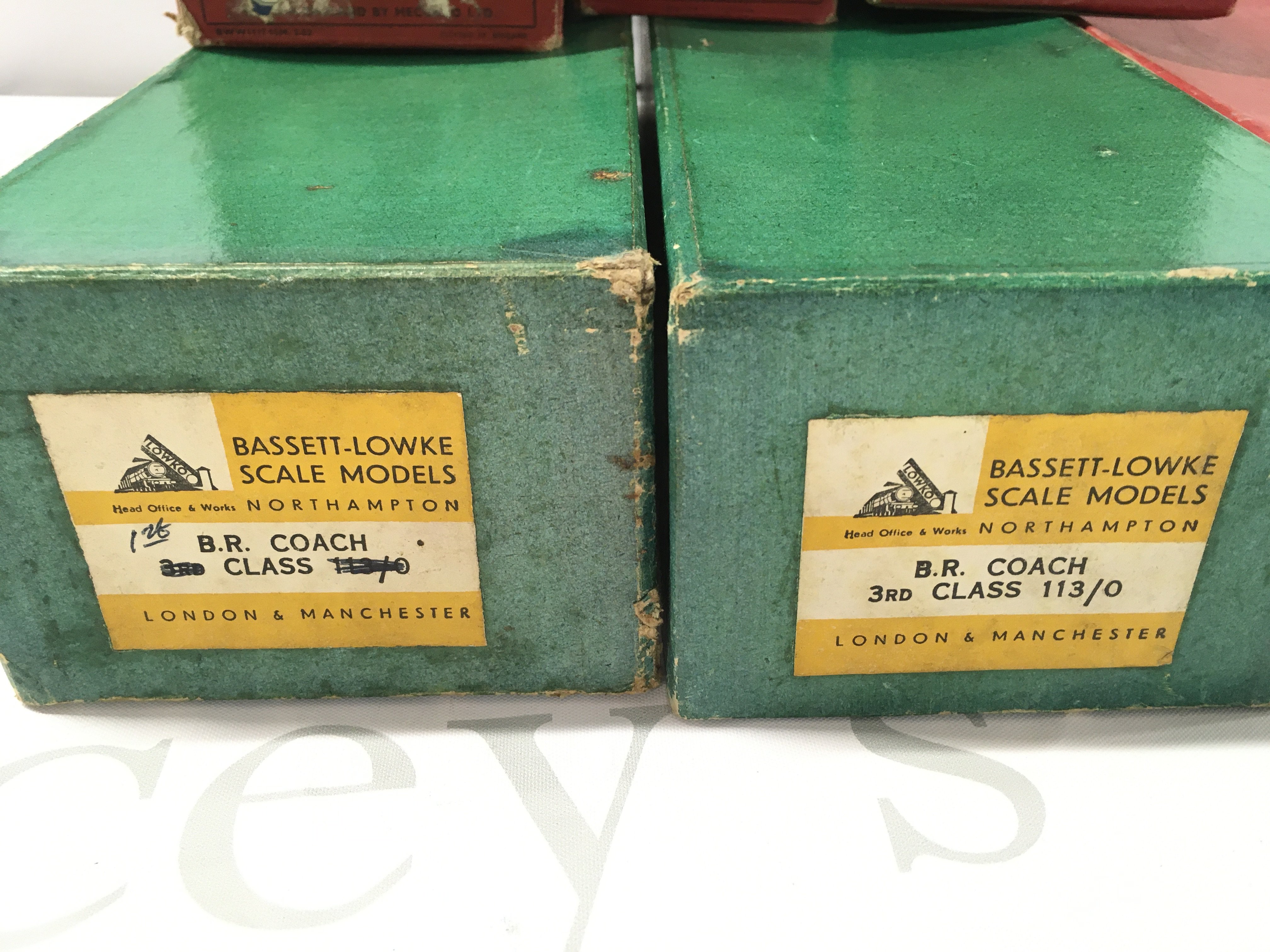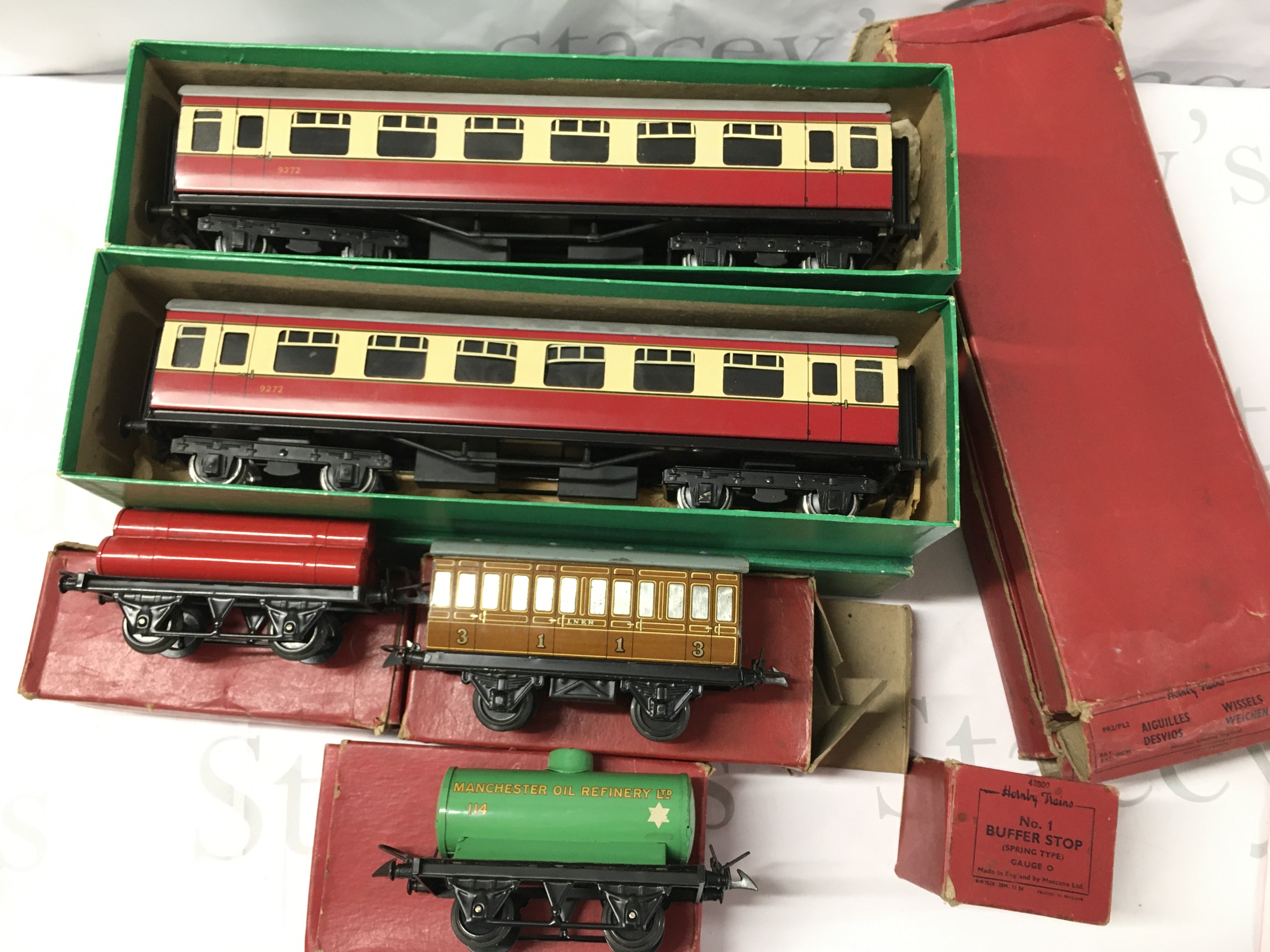 2 X Boxed 0 Gauge Bassett-Lowke Coaches and A small College of Boxed Hornby 0 Gauge wagons Track Etc.