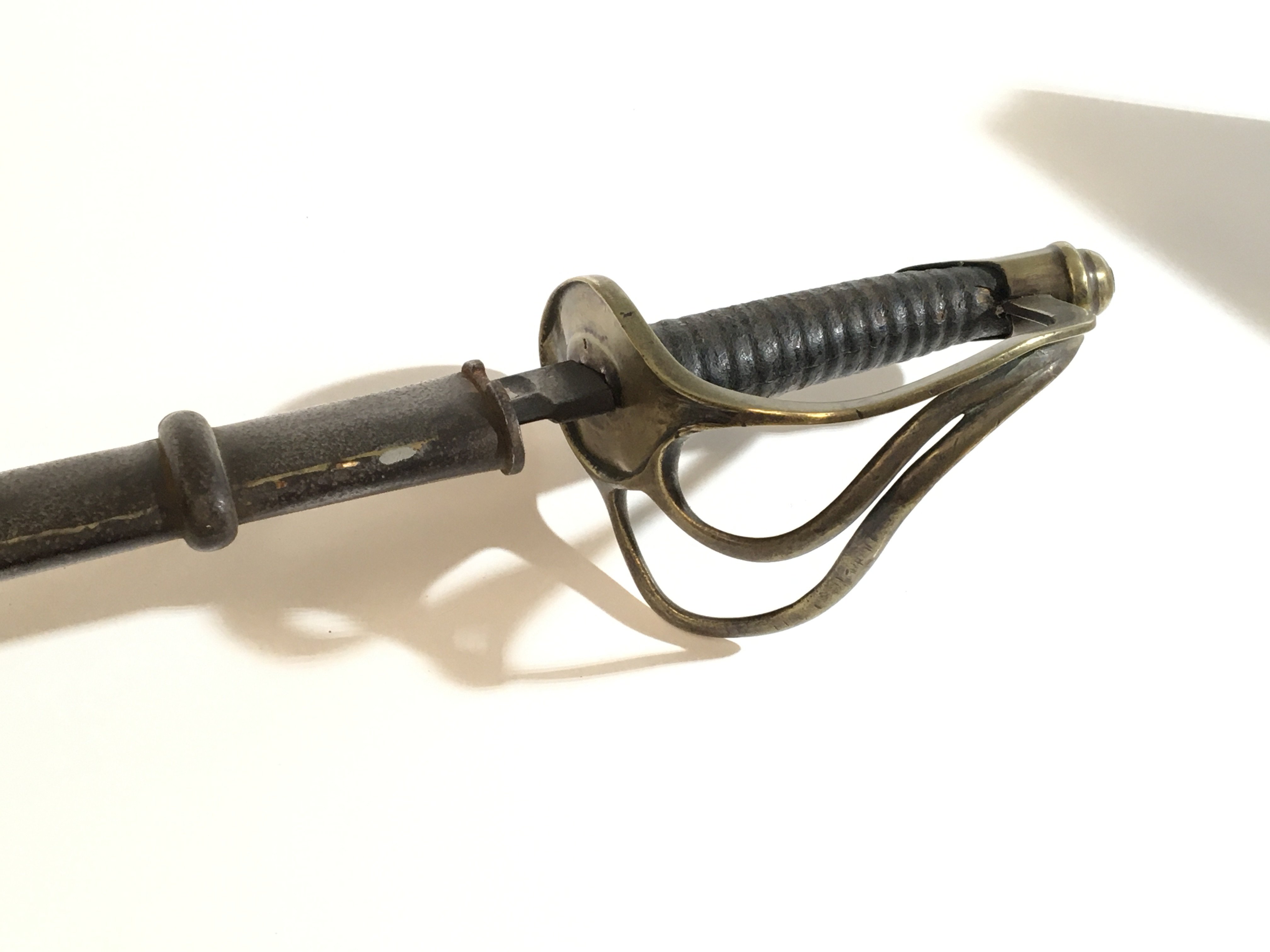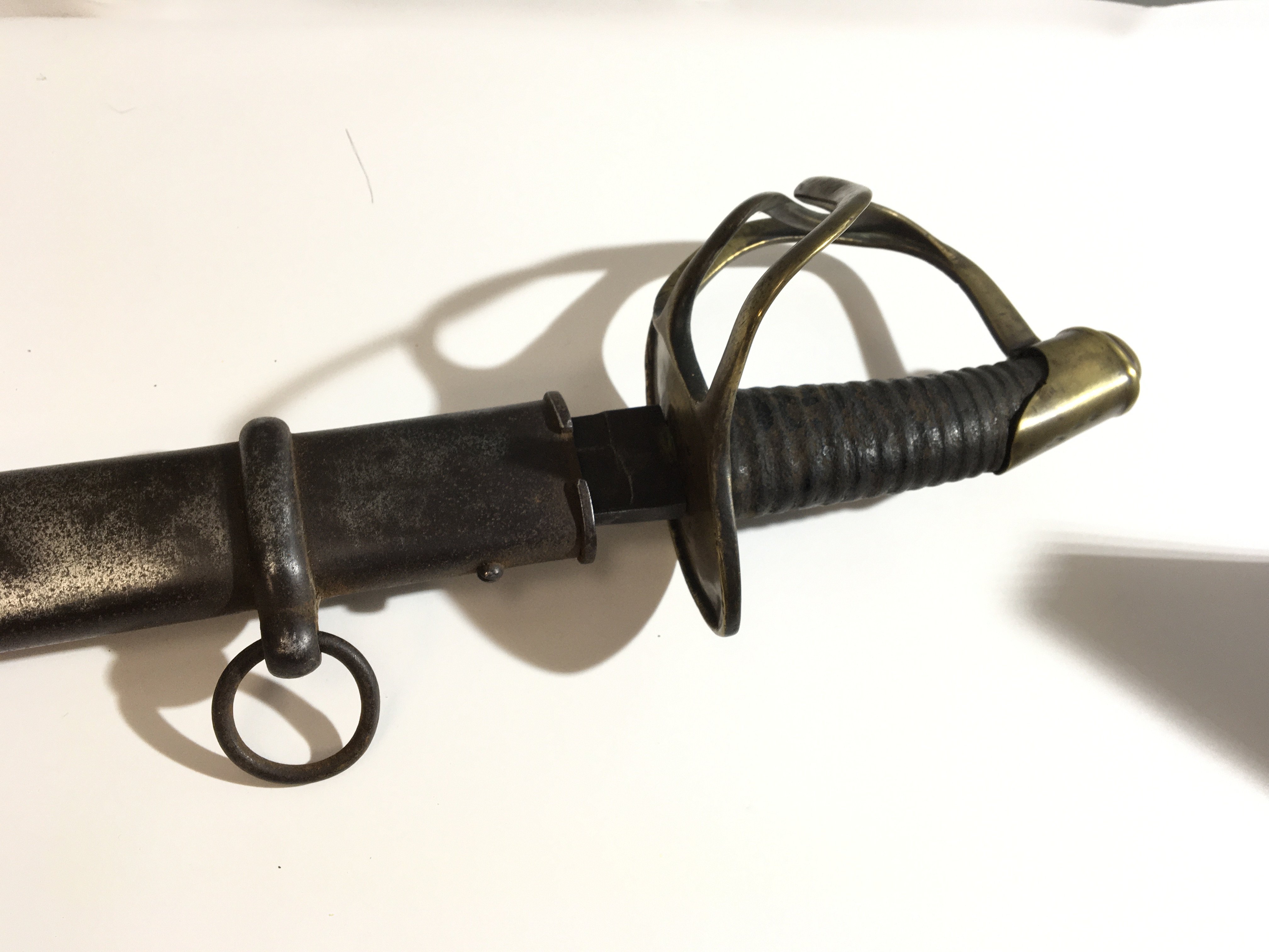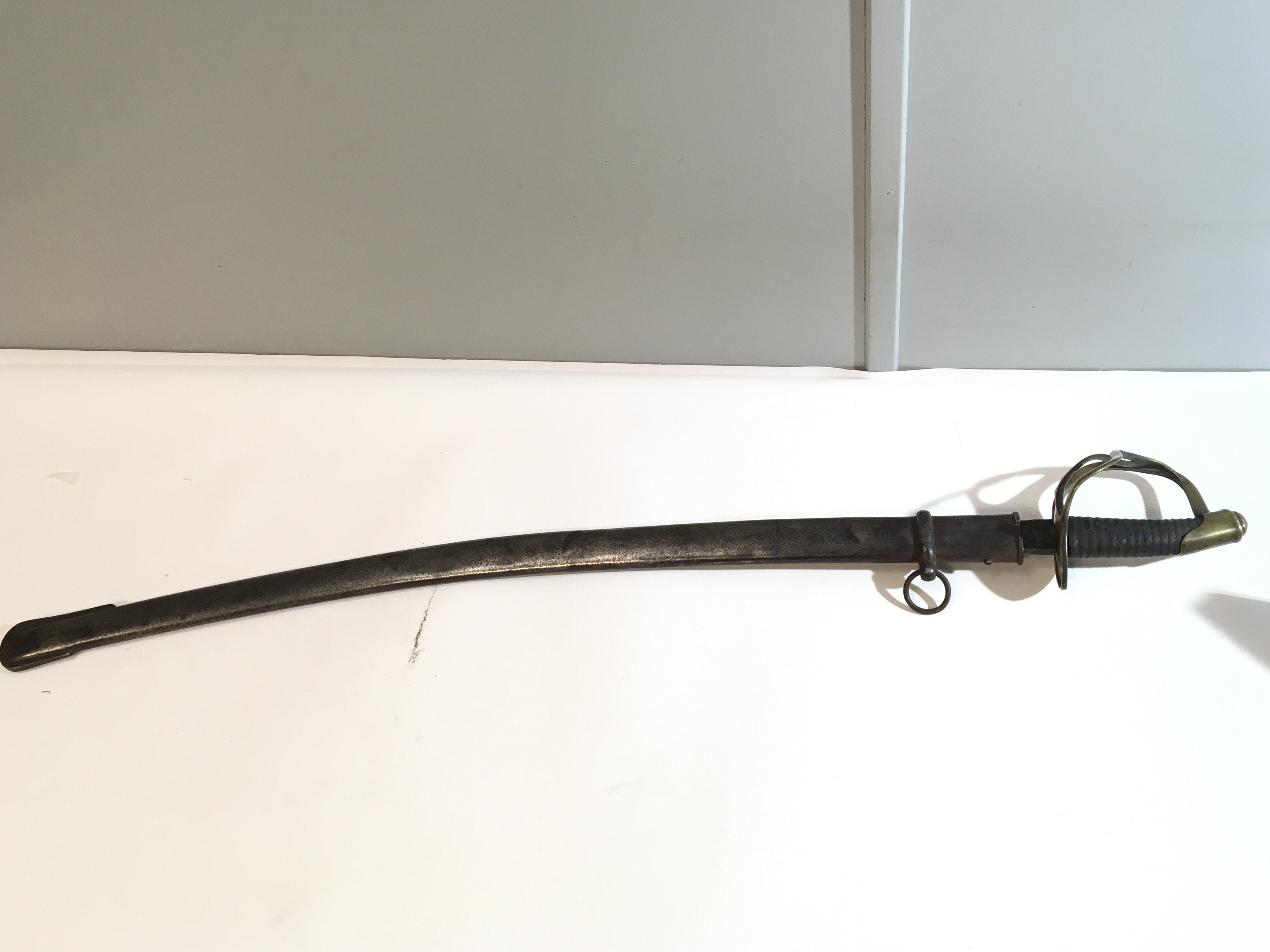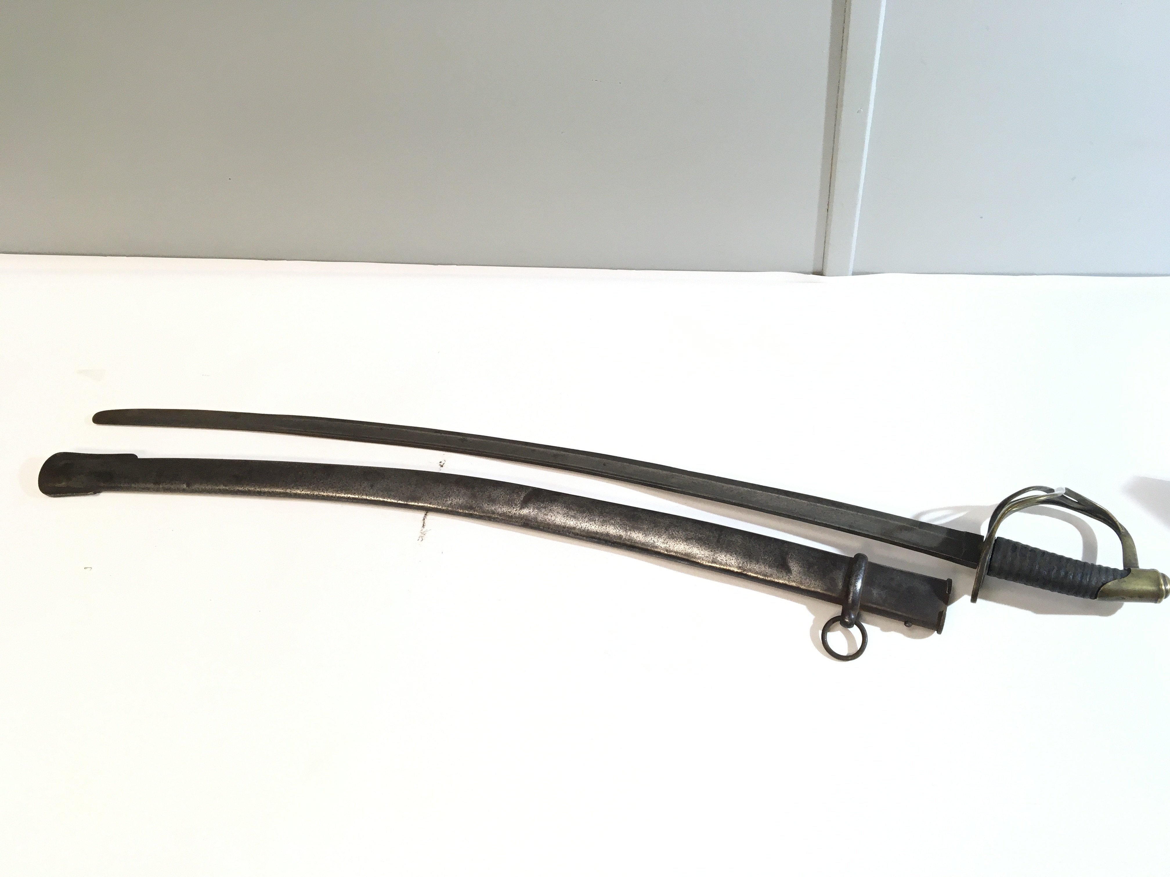A French Cuirassier Troopers sabre sword brass open basket hilt steel scabbard.
