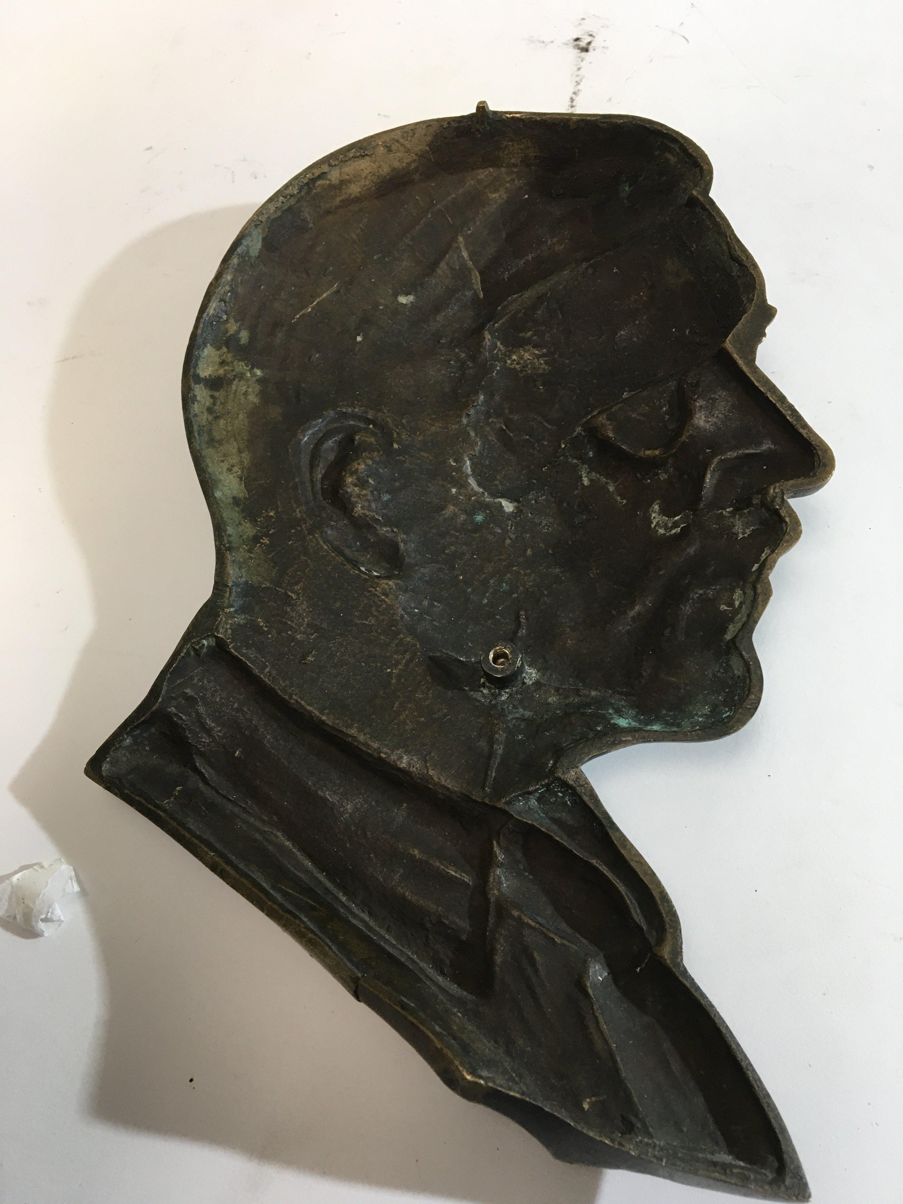 A Cast metal plaque Adolf Hitler with Indistinct signature considered to be of the mid 1930s or II world war period. Not a retrospective copy.
