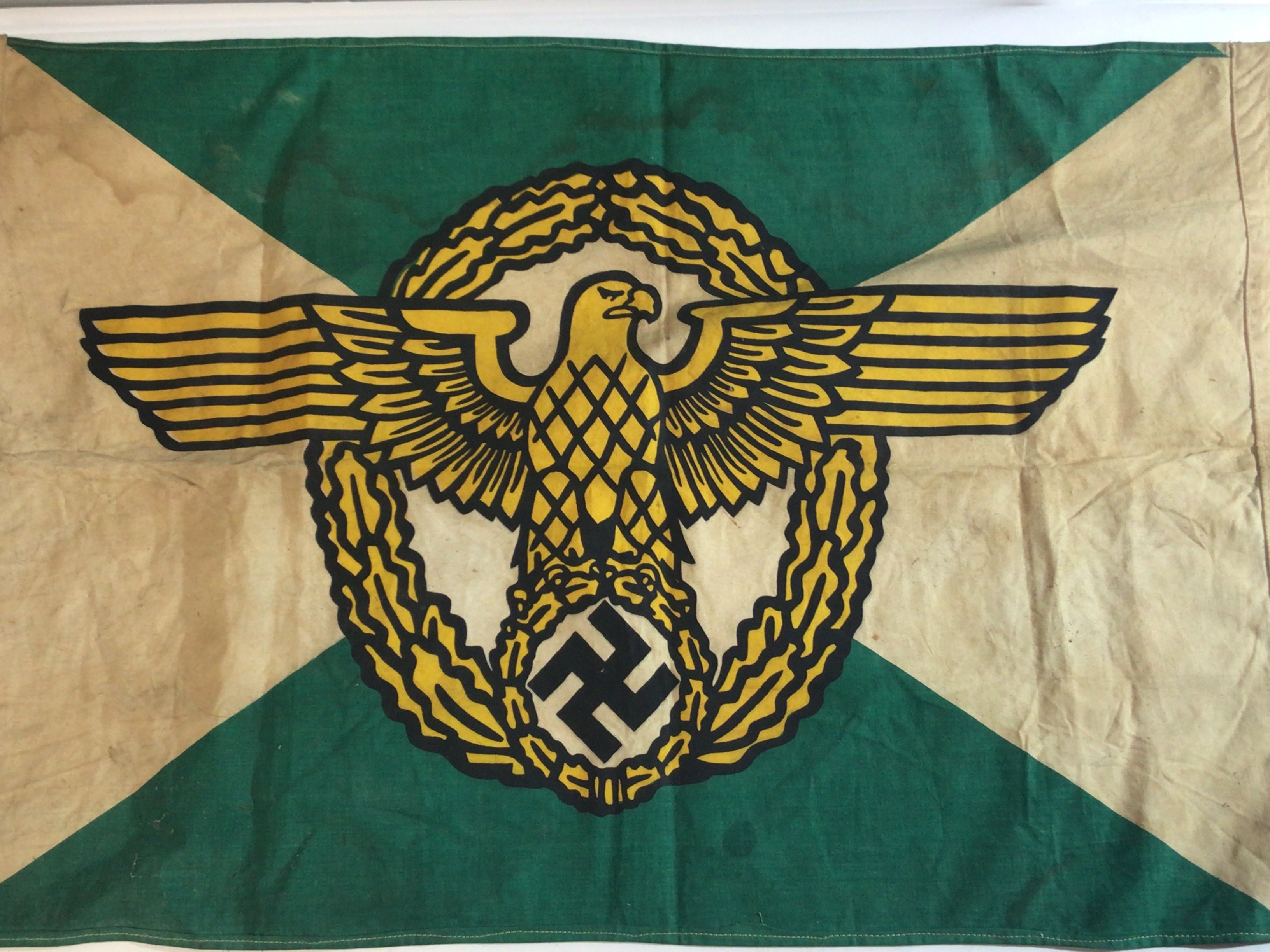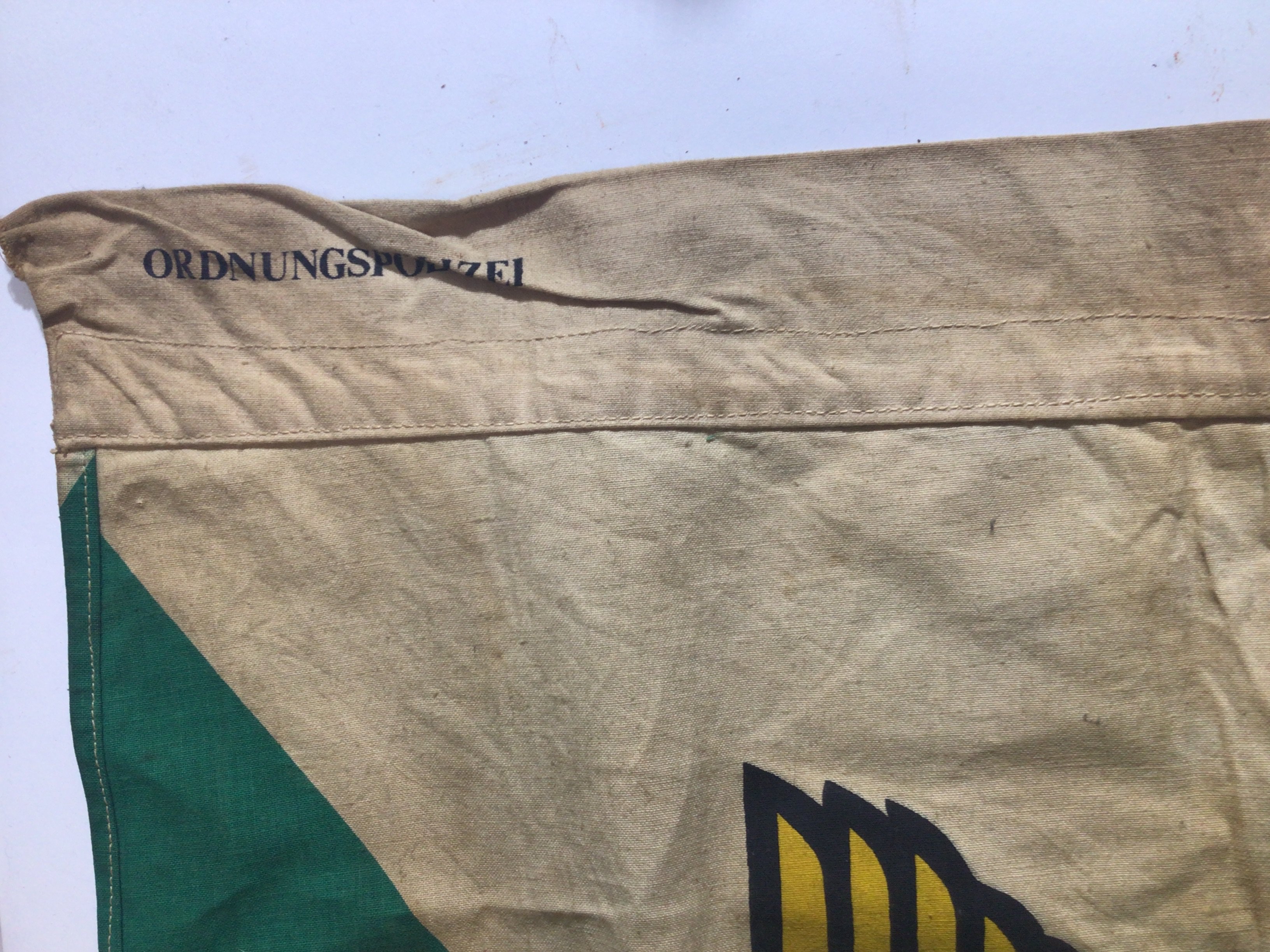 A German II world war Third Reich flag Police flag The Ordnungspolizei. With stamp to the right corner of the flag 75x49cm