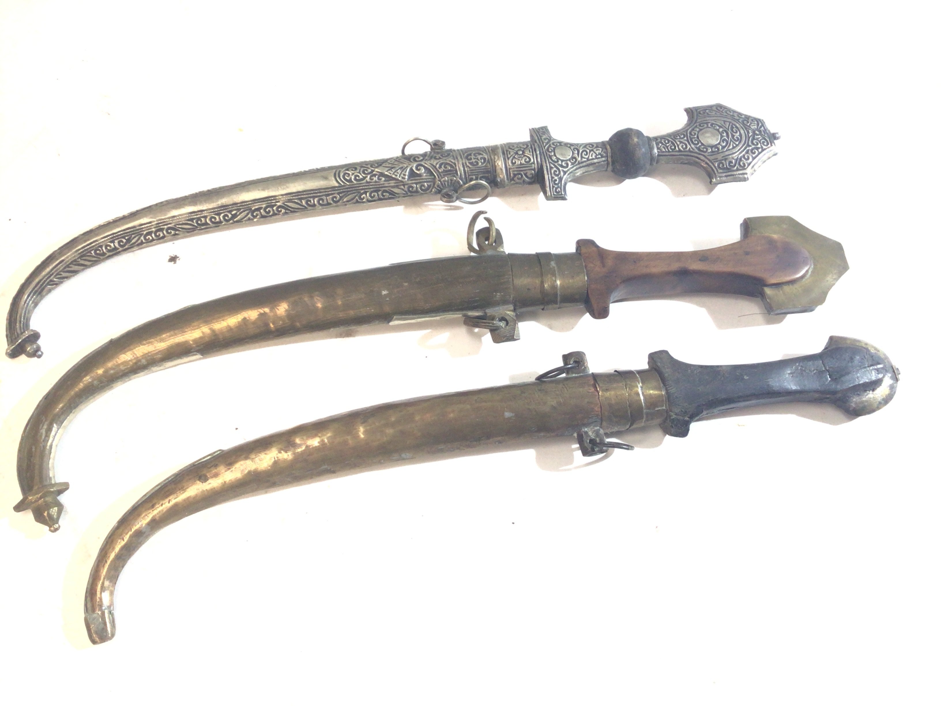 Three Moroccan Trina Koummya Daggers with brass and silvered scabbards (3) d
