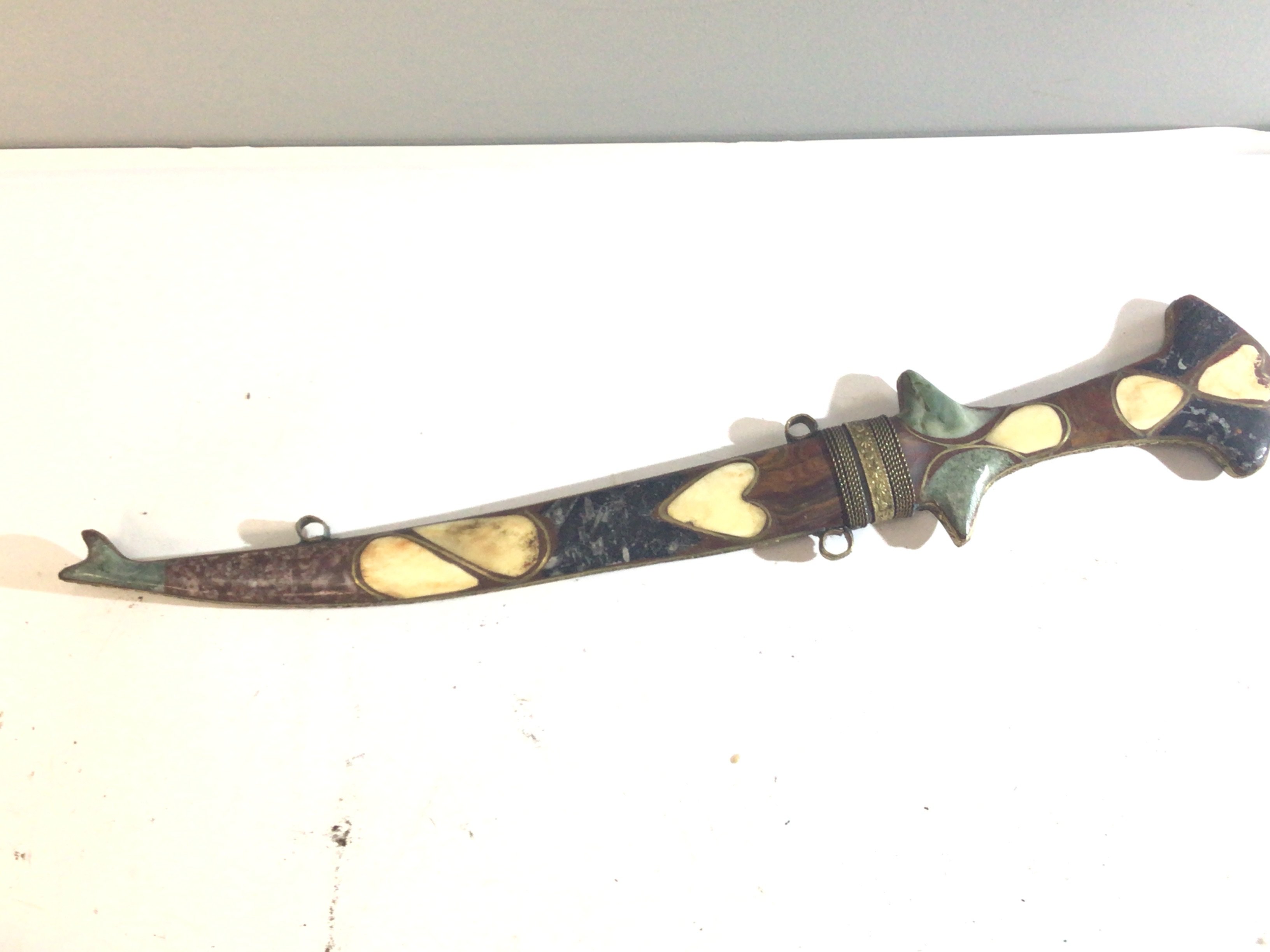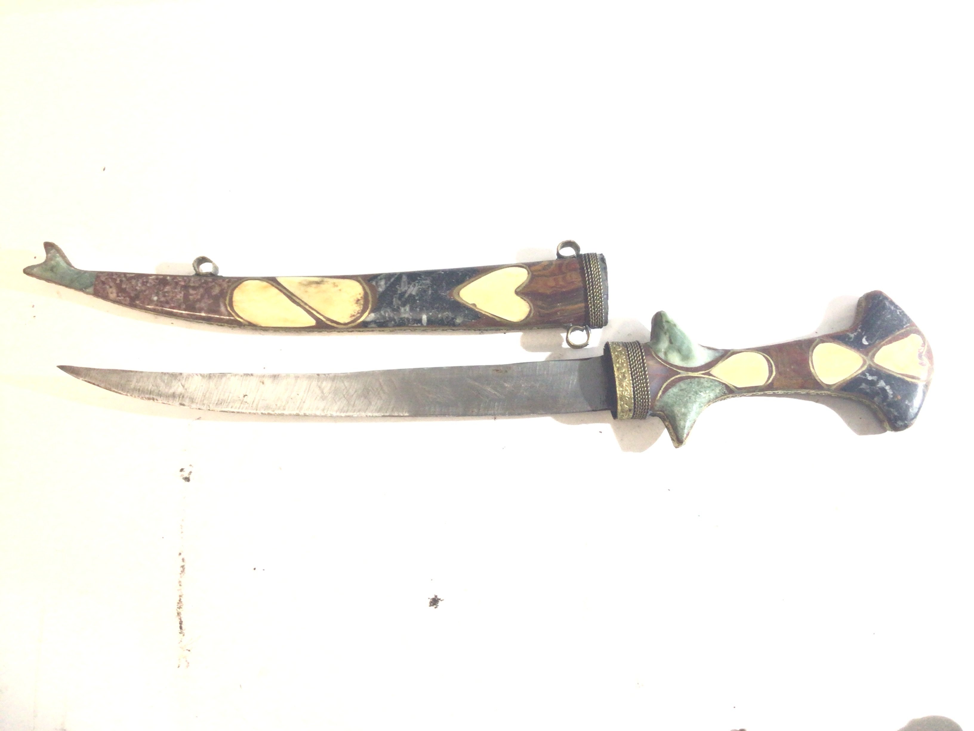 A Vintage Traditional Hand made Moroccan Berber dagger set with polished stone. 43cm approximately.
