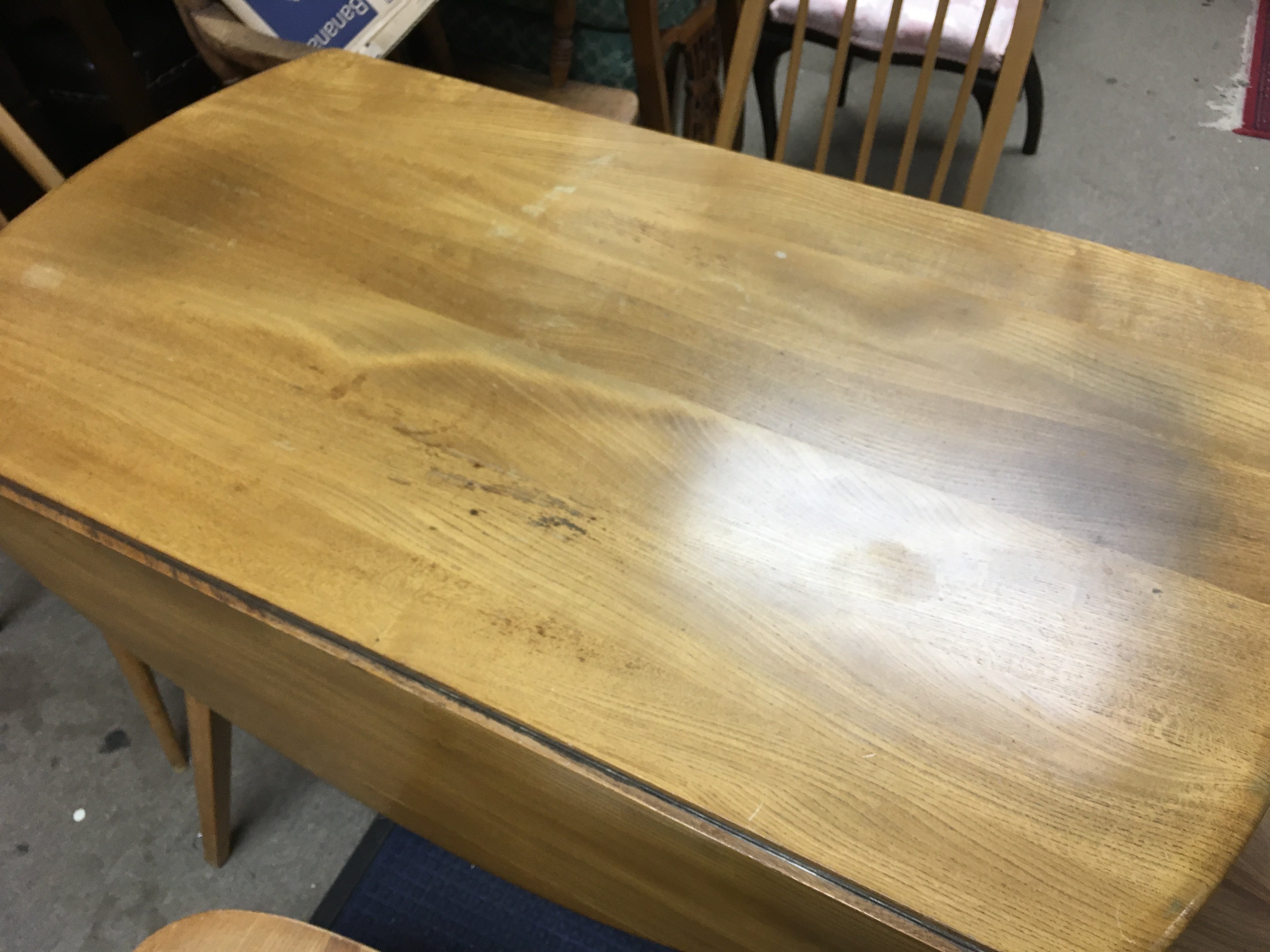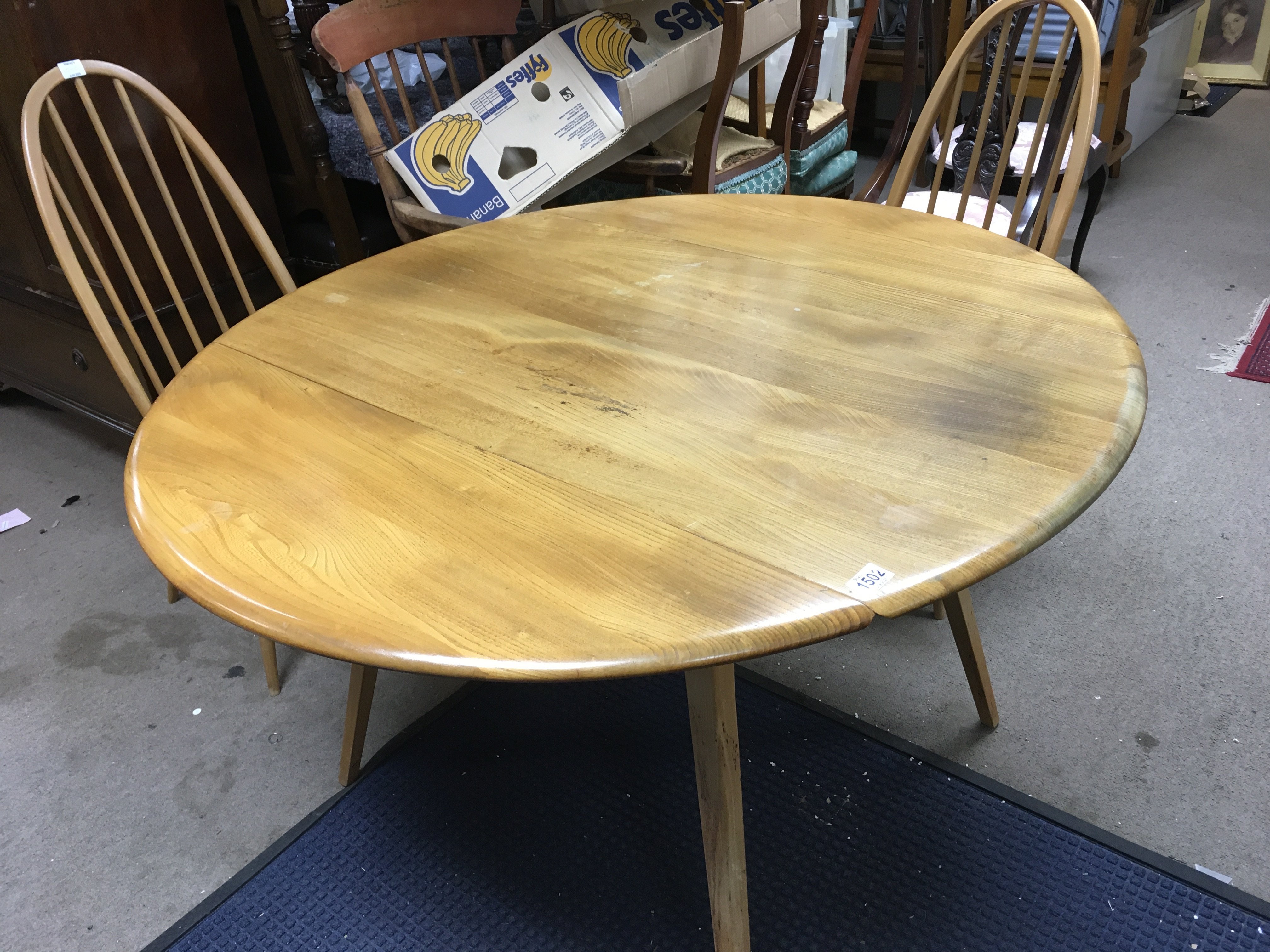 A light Ercole drop leaf table and four chairs 124cm wide 110cm long (fully extended) chairs 95cm tall