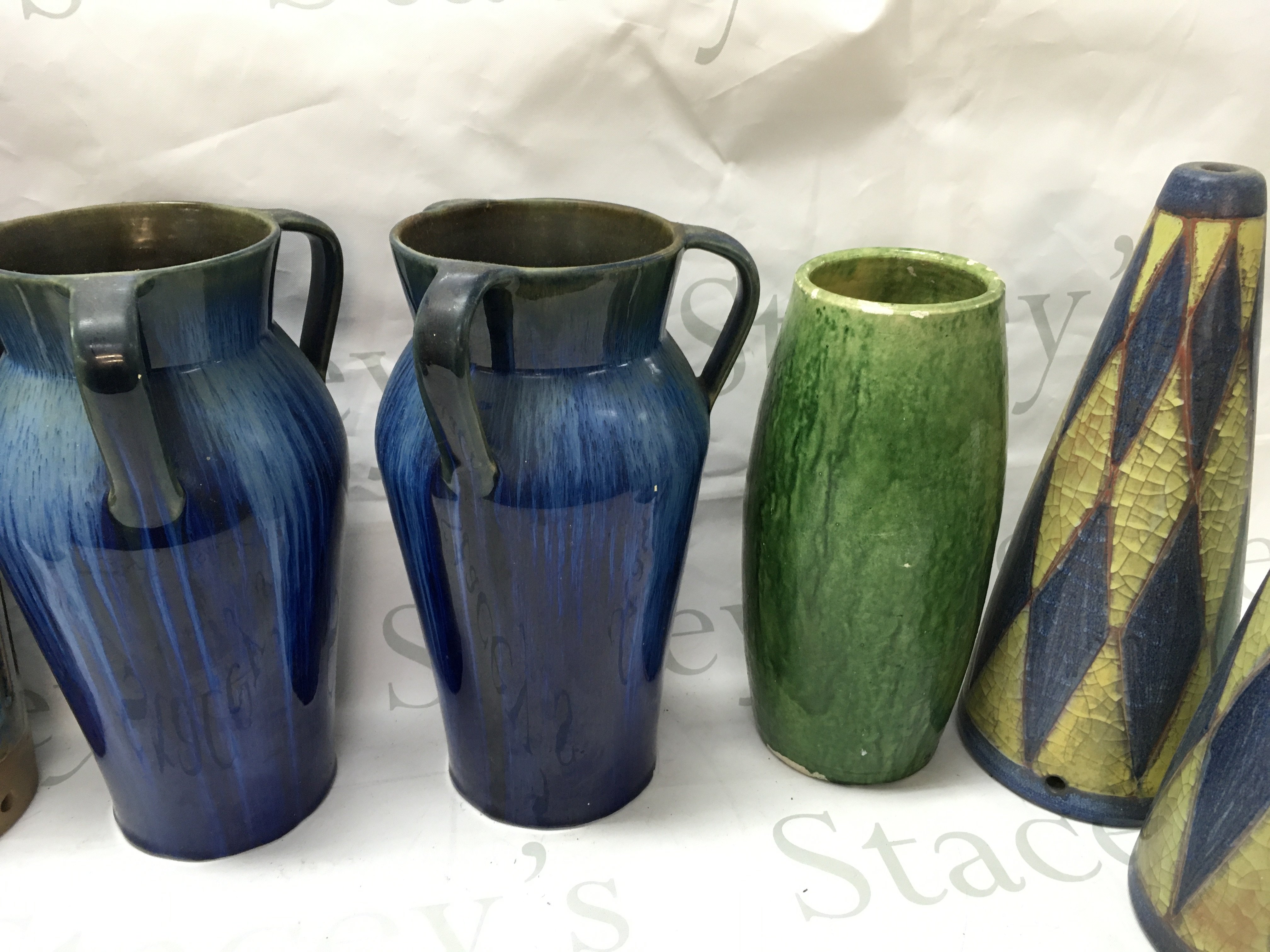 A collection of ceramic vases , made in Denmark . Pair of Bourbe Densy English vases, Bomholm Denmark vases. This lot cannot be posted