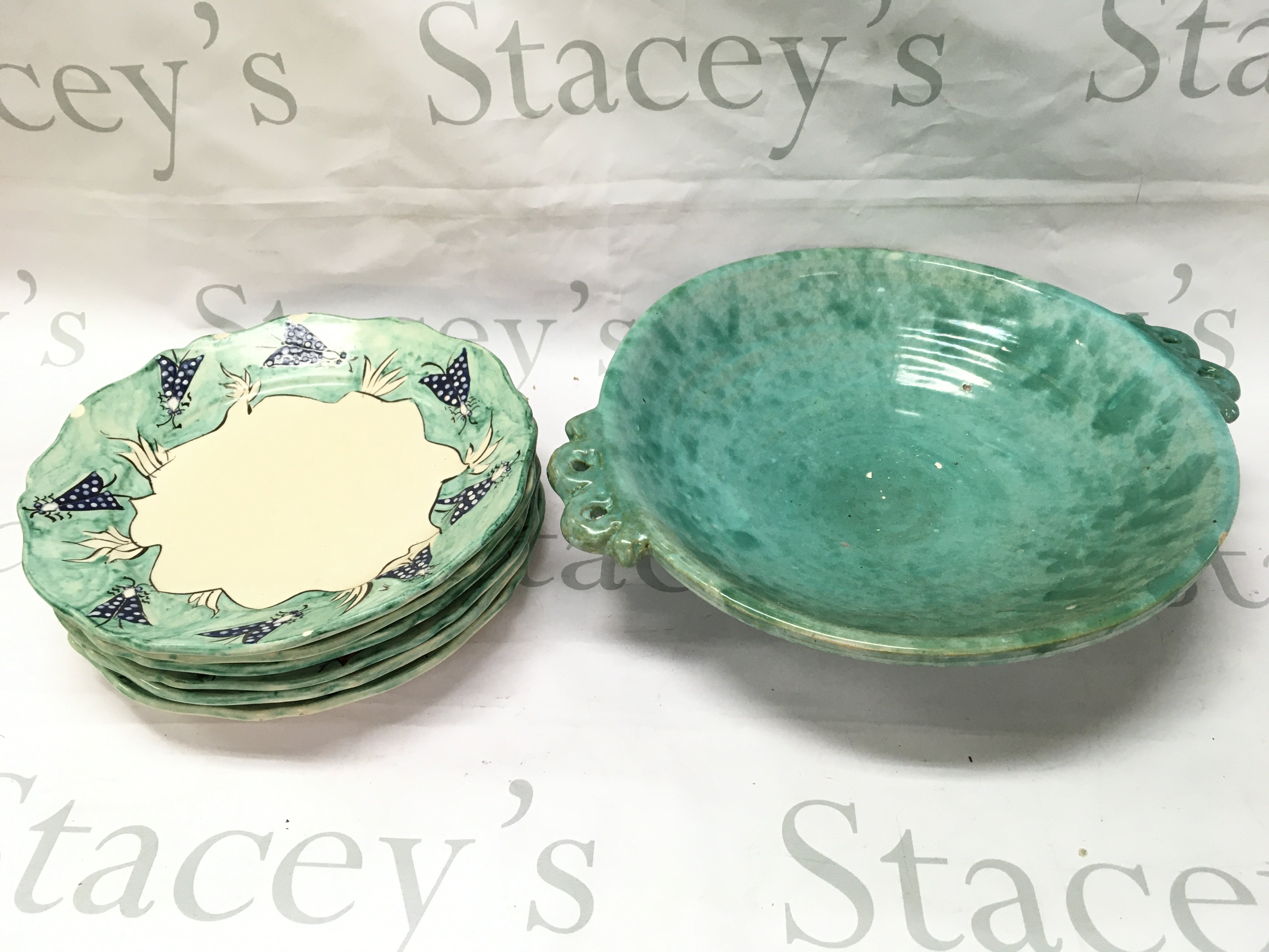 A collection of French mid 20th century plates and a Maltese dish . This lot cannot be posted