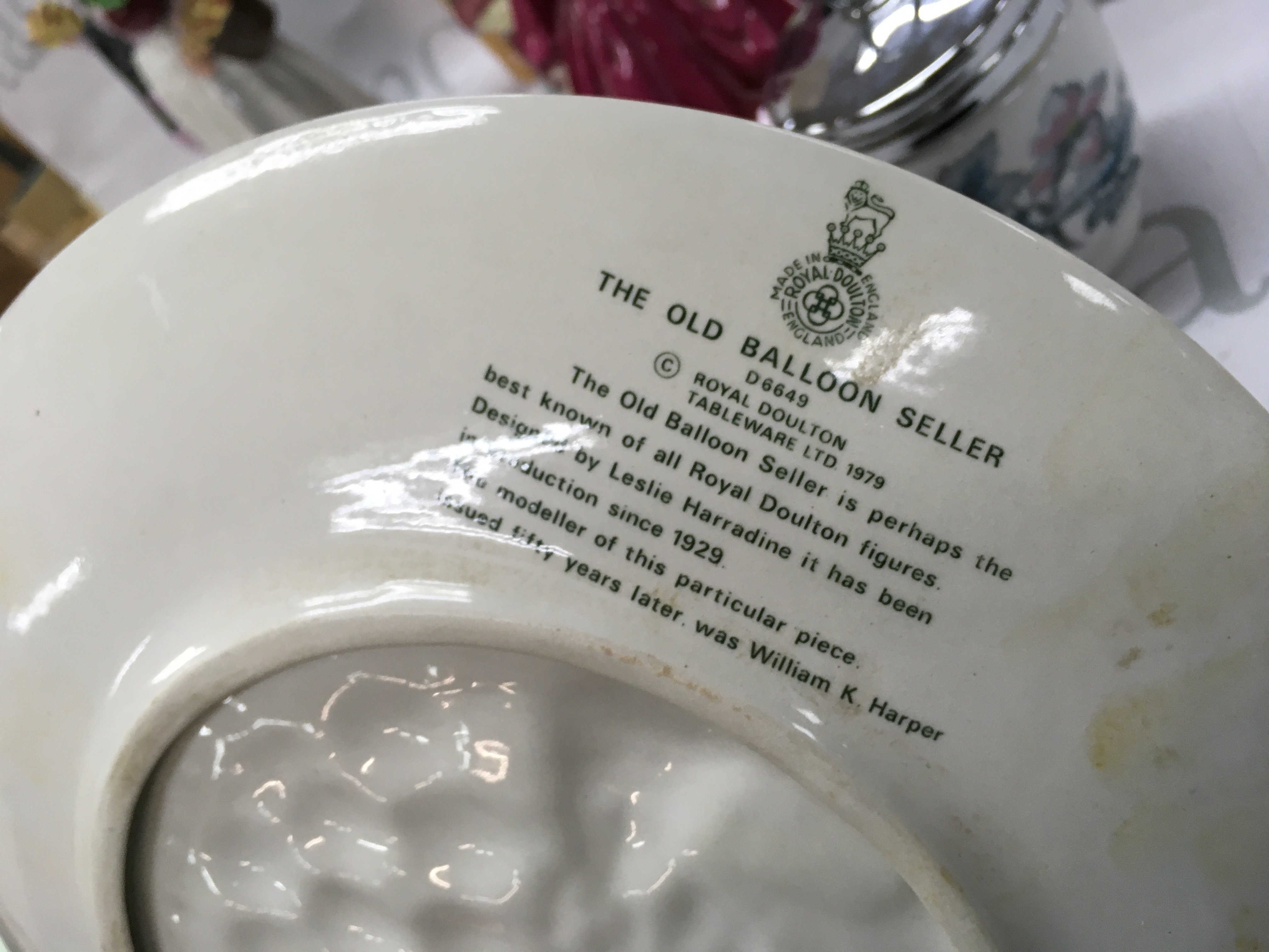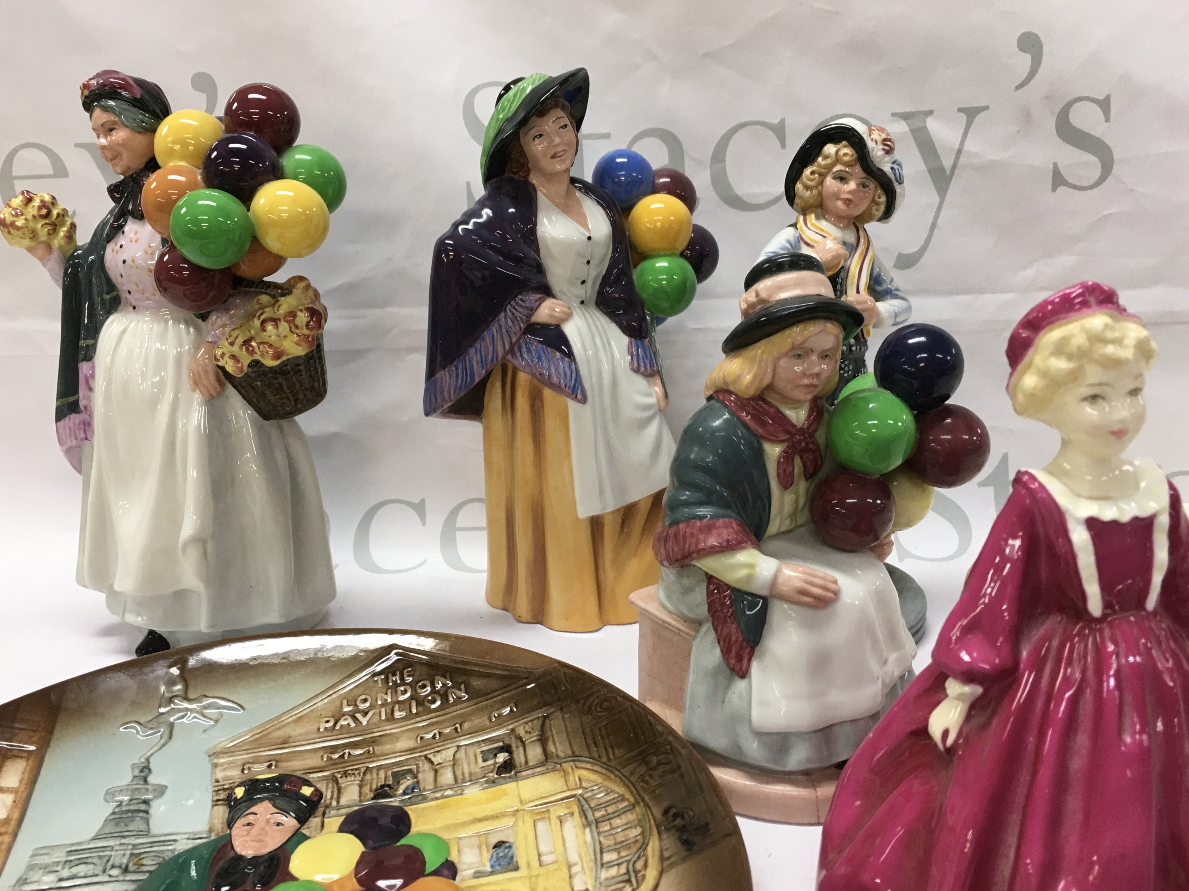 A collection of Royal Doulton balloon seller figures and plate , St Lawrence Seaway commemorative plates , Royal Worcester , Hammersly. This lot cannot be posted