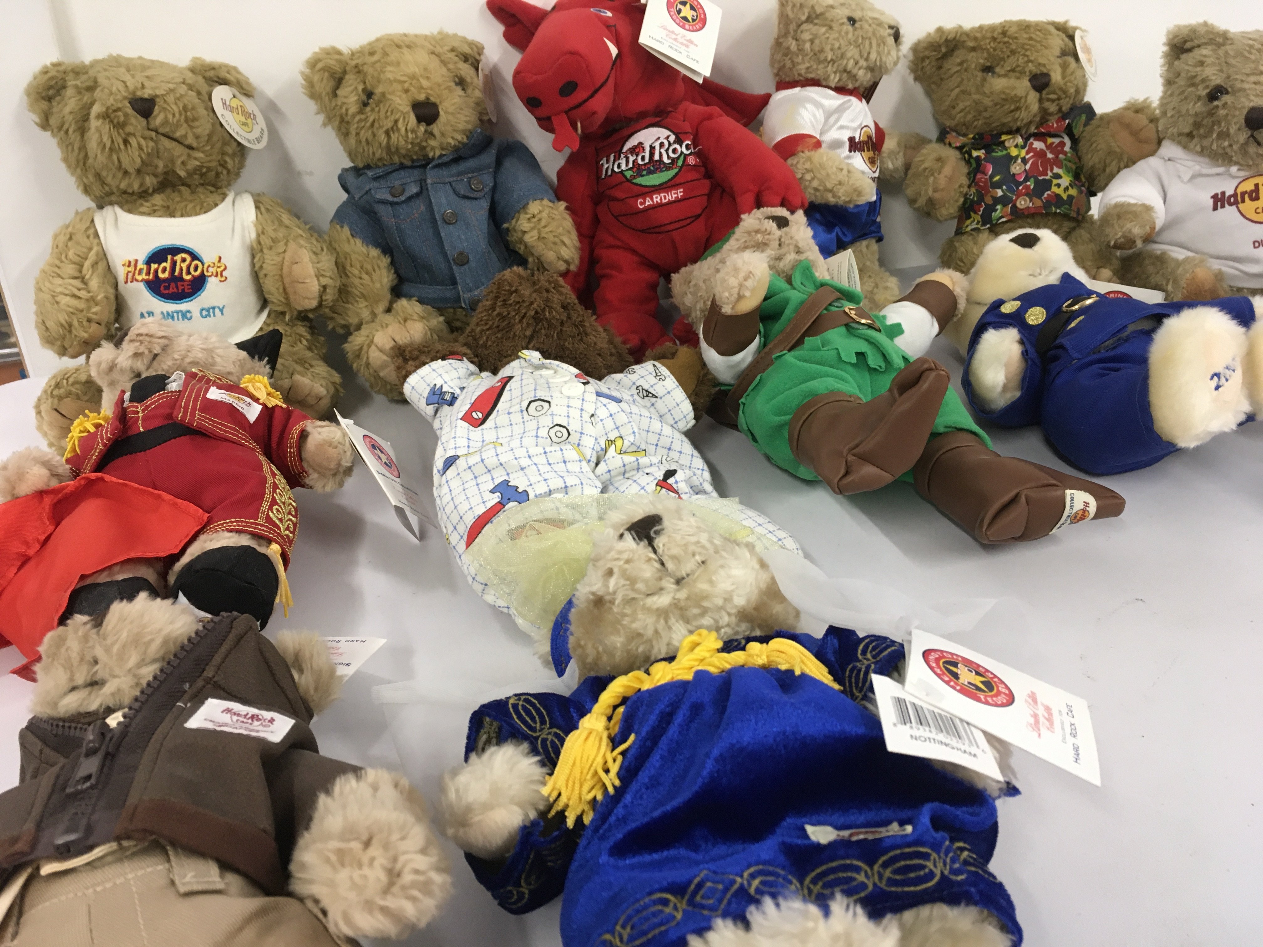 A collection of 14 Hard Rock Cafe Teddy Bears mostly with tags including some limited edition and Signature Collection pieces. No reserve