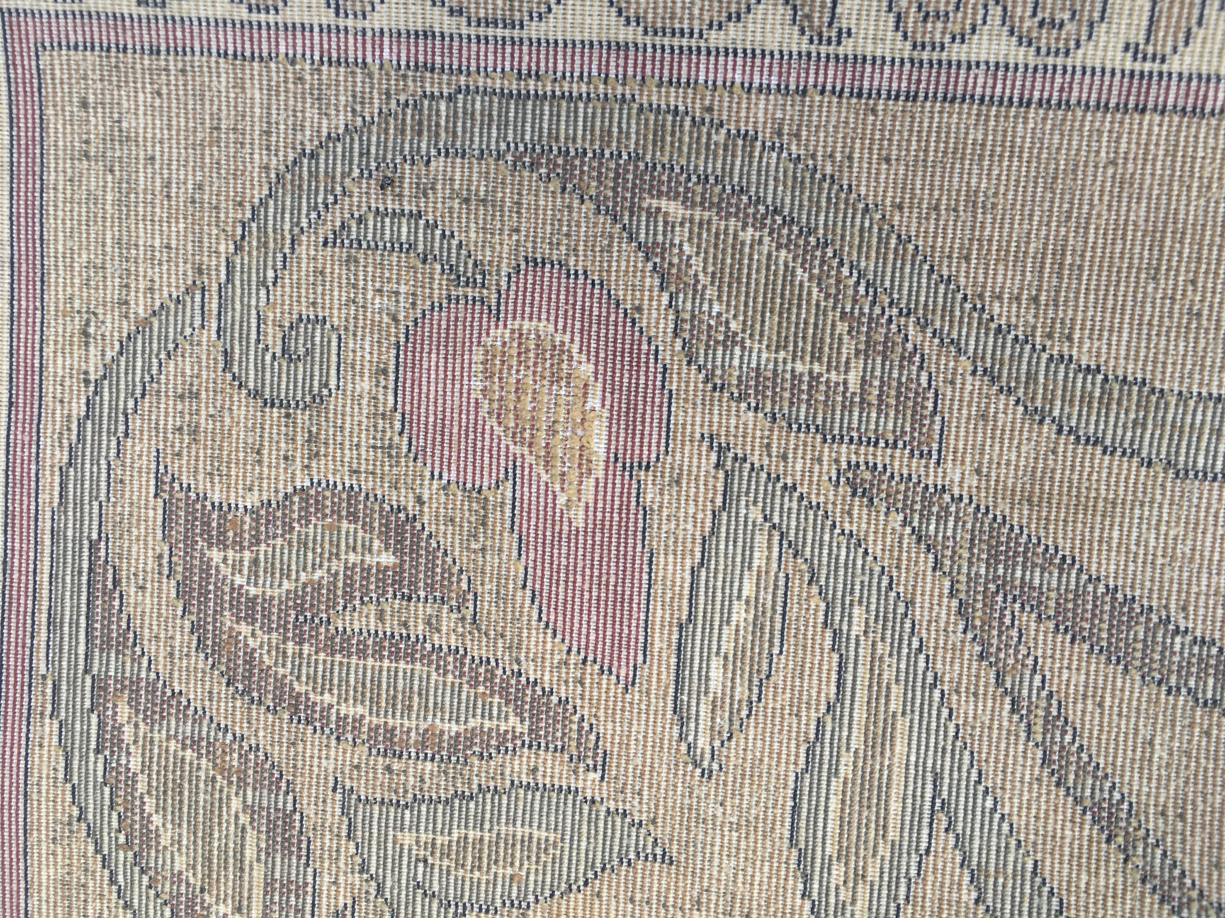 A silk carpet with central foliage pattern repeat pattern boards on a ivory field .6 ft 6 by 9 ft 6 .