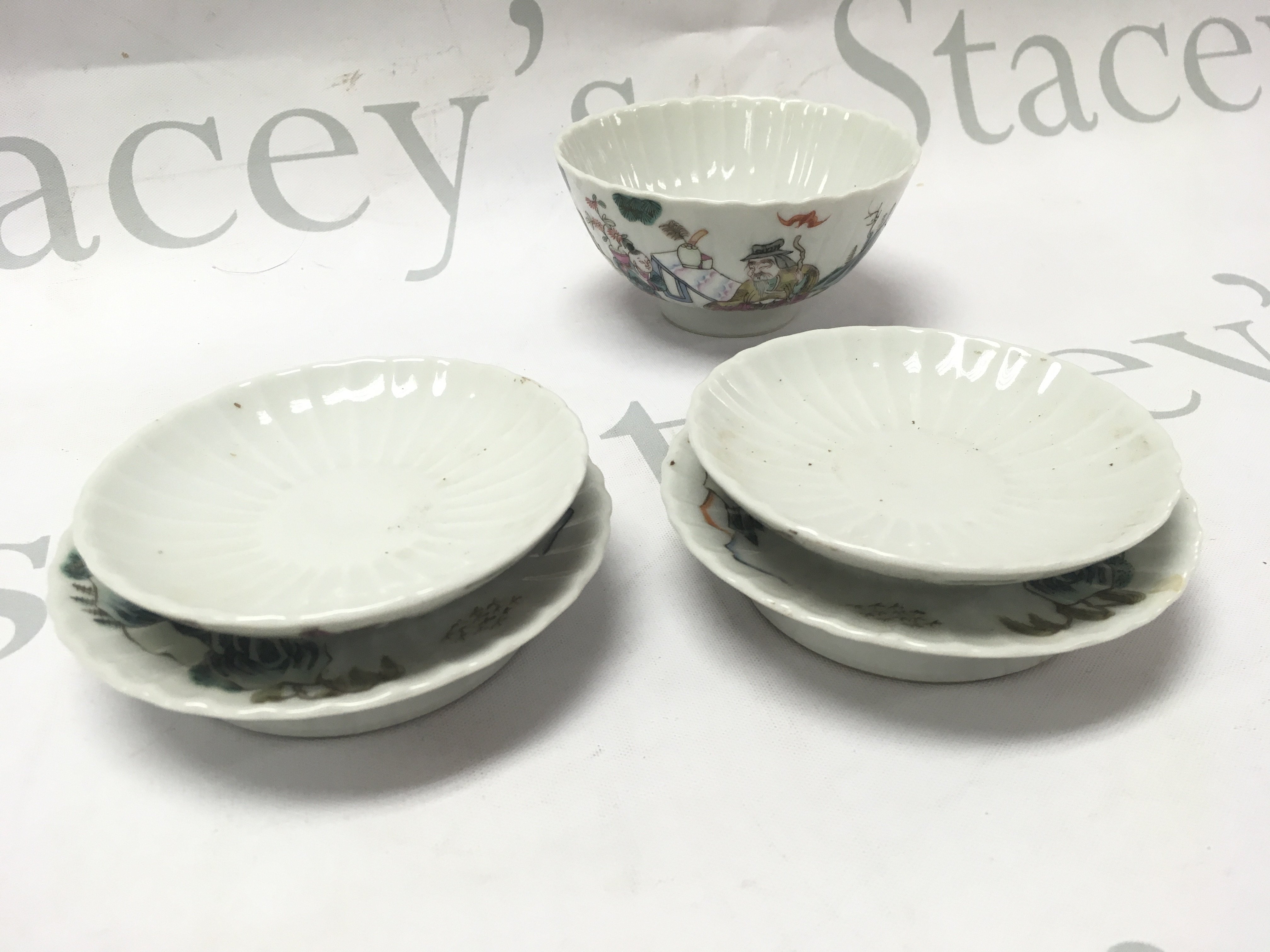 Chinese porcelain Famille Rose bowls and dishes decorated with scenes of figures and nature. This lot cannot be posted