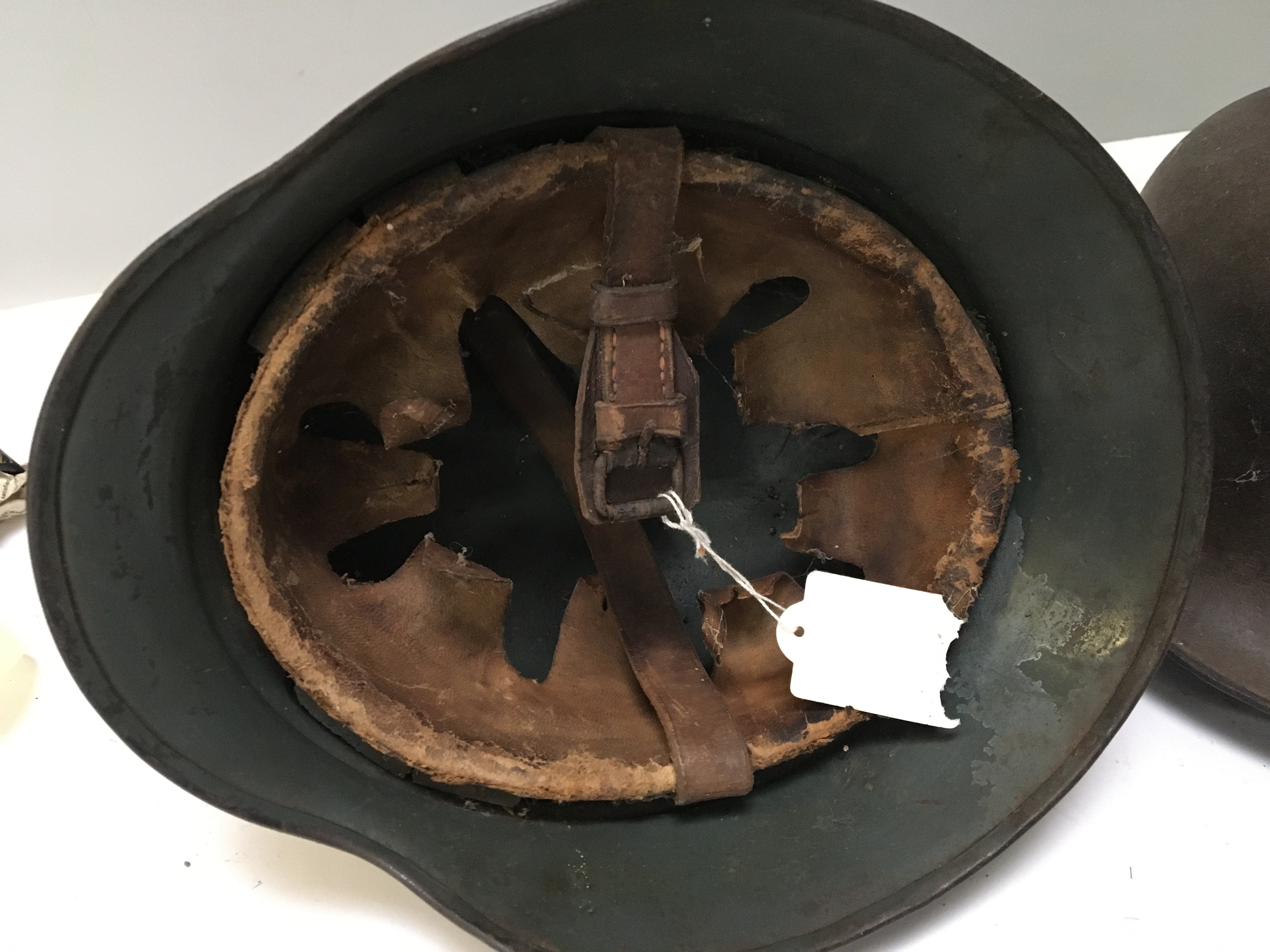 A German I world war combat helmet M-16 pattern and a German type 47 steel helmet with liner folded edge and stamped E1 (2)