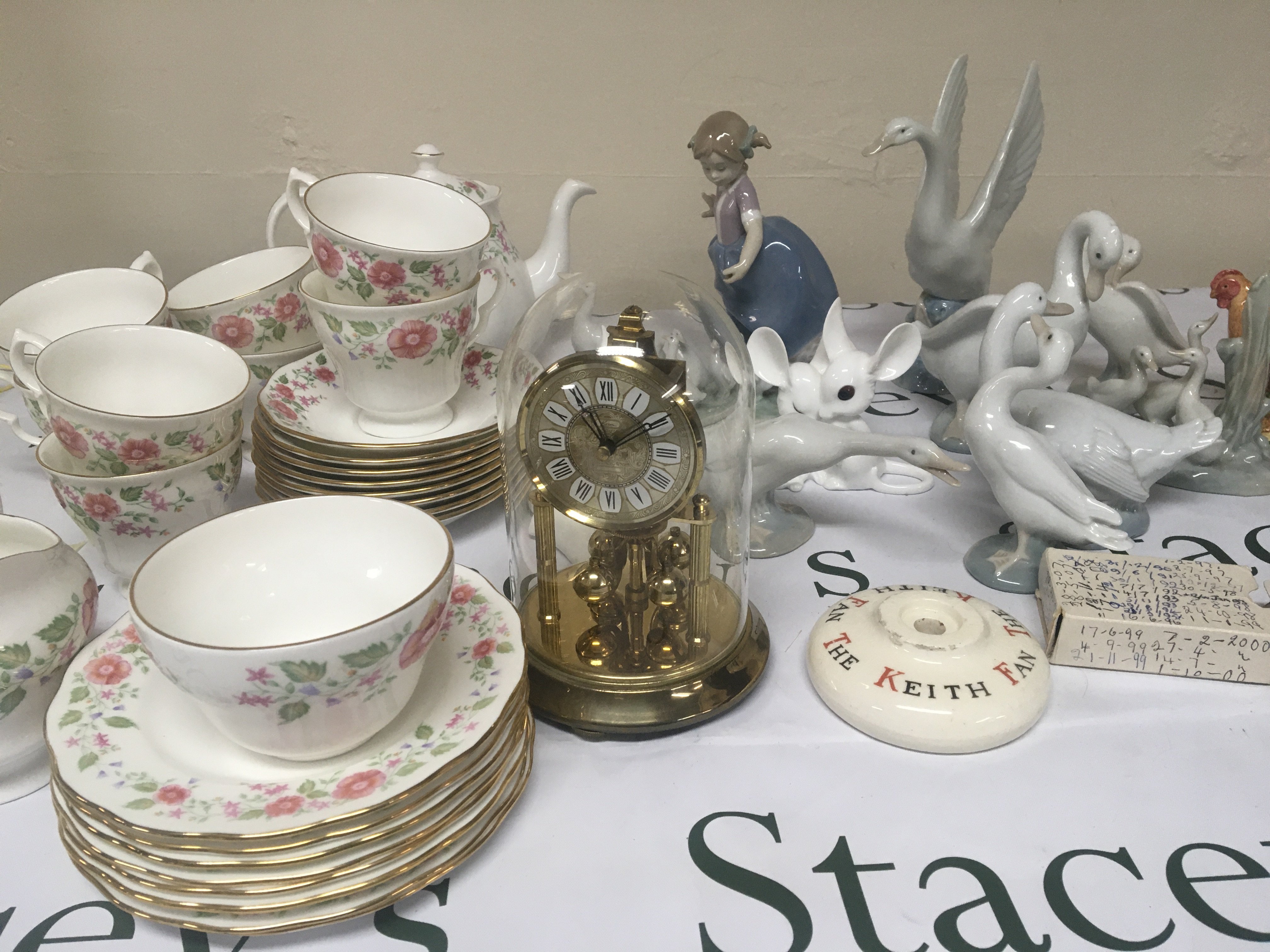 A Royal Albert Aviemore china tea set and a quantity of Lladro and Nao figures geese a clock and other oddments. NO RESERVE