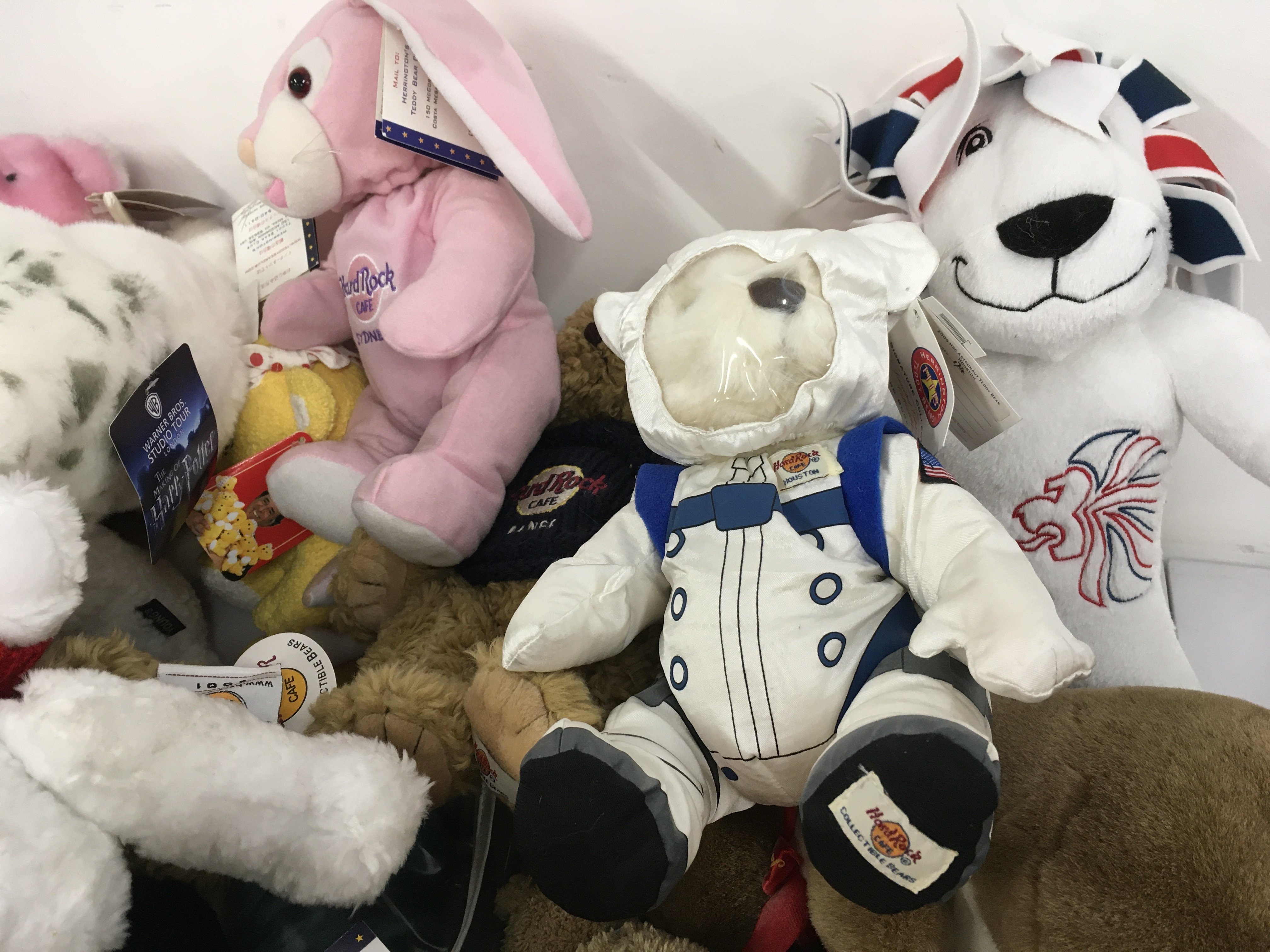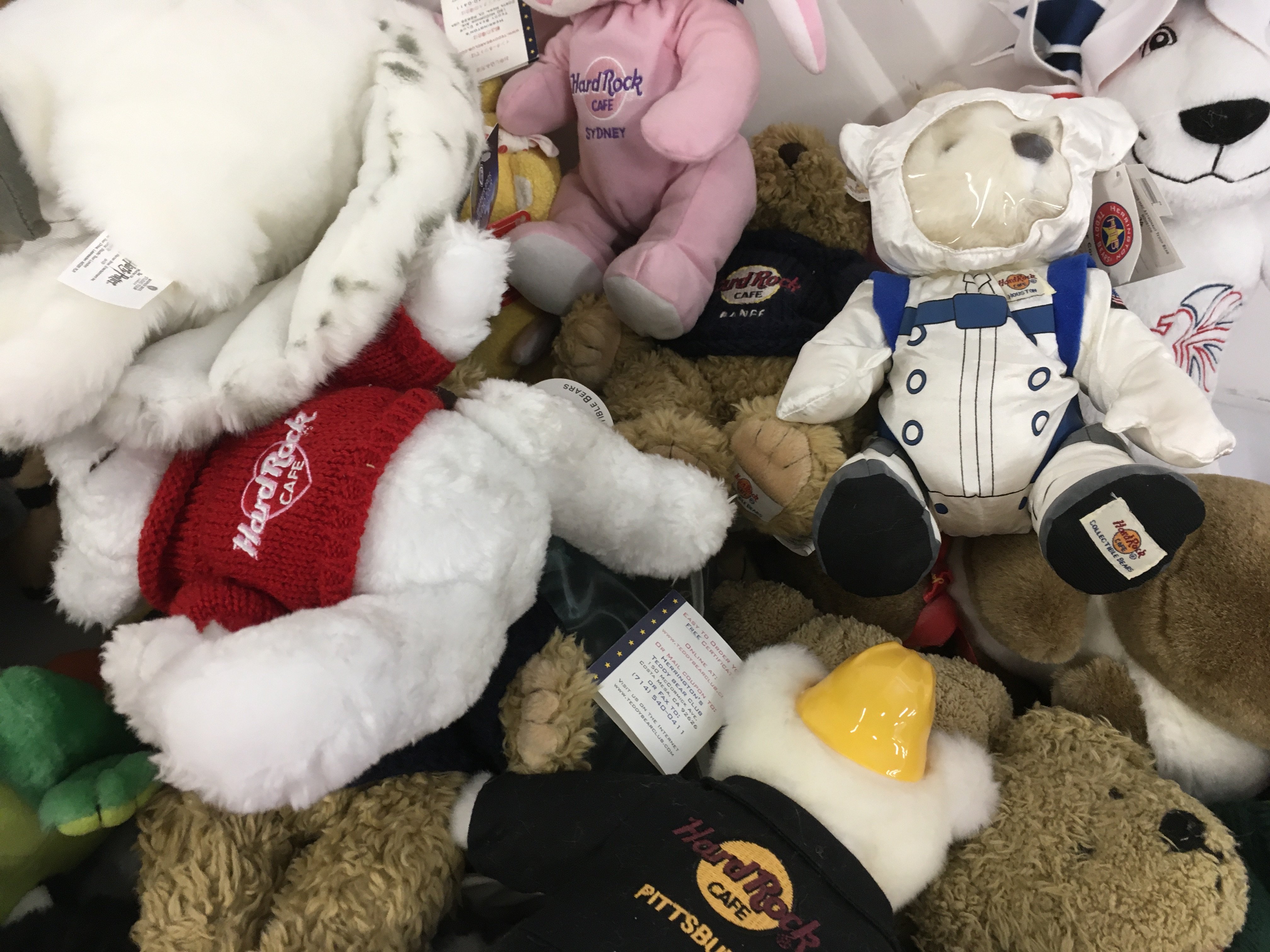 A large collection of teddy bears Hard Rock Cafe with tags but also includes other bears such as Harrods etc. no reserve.