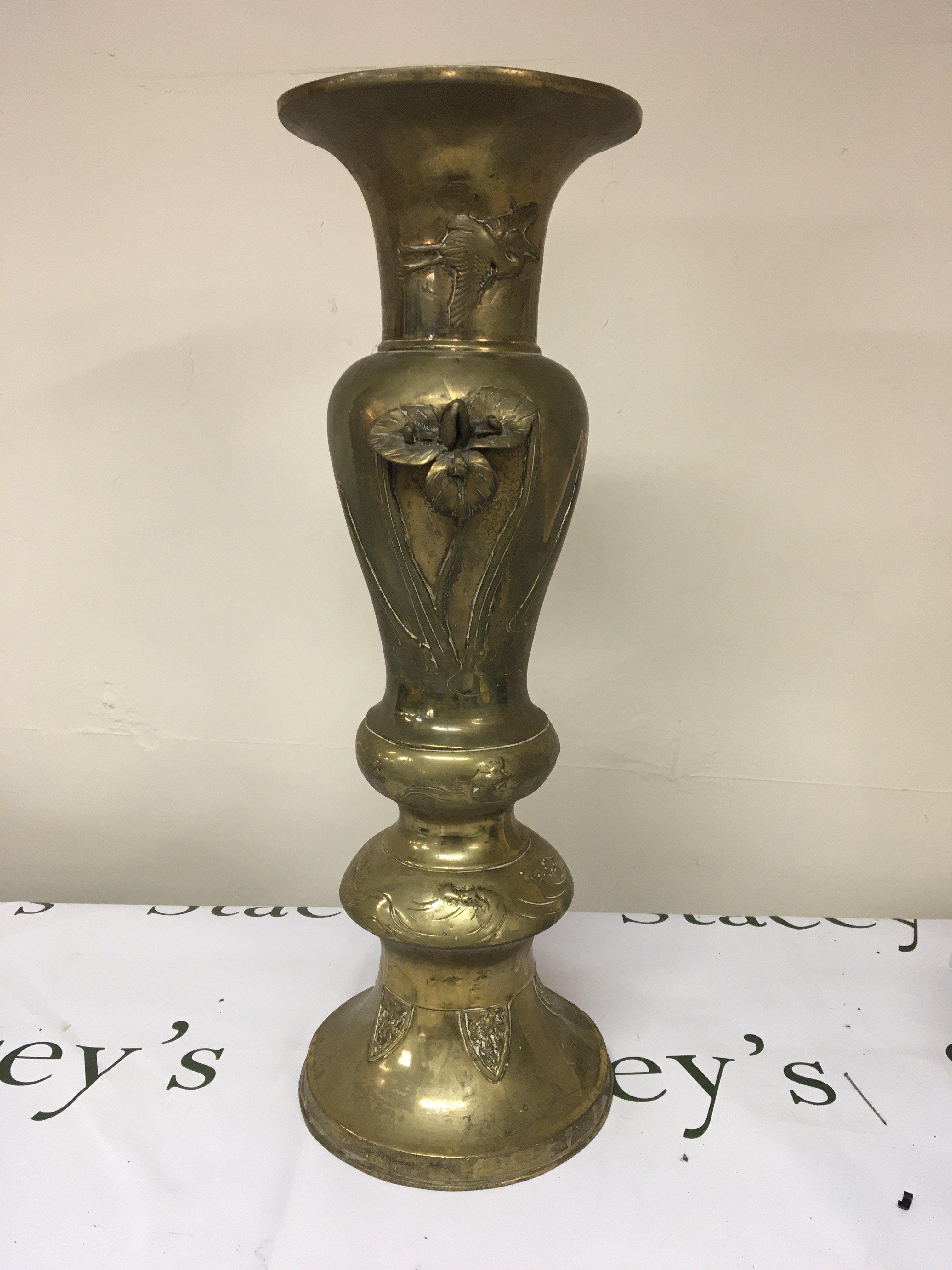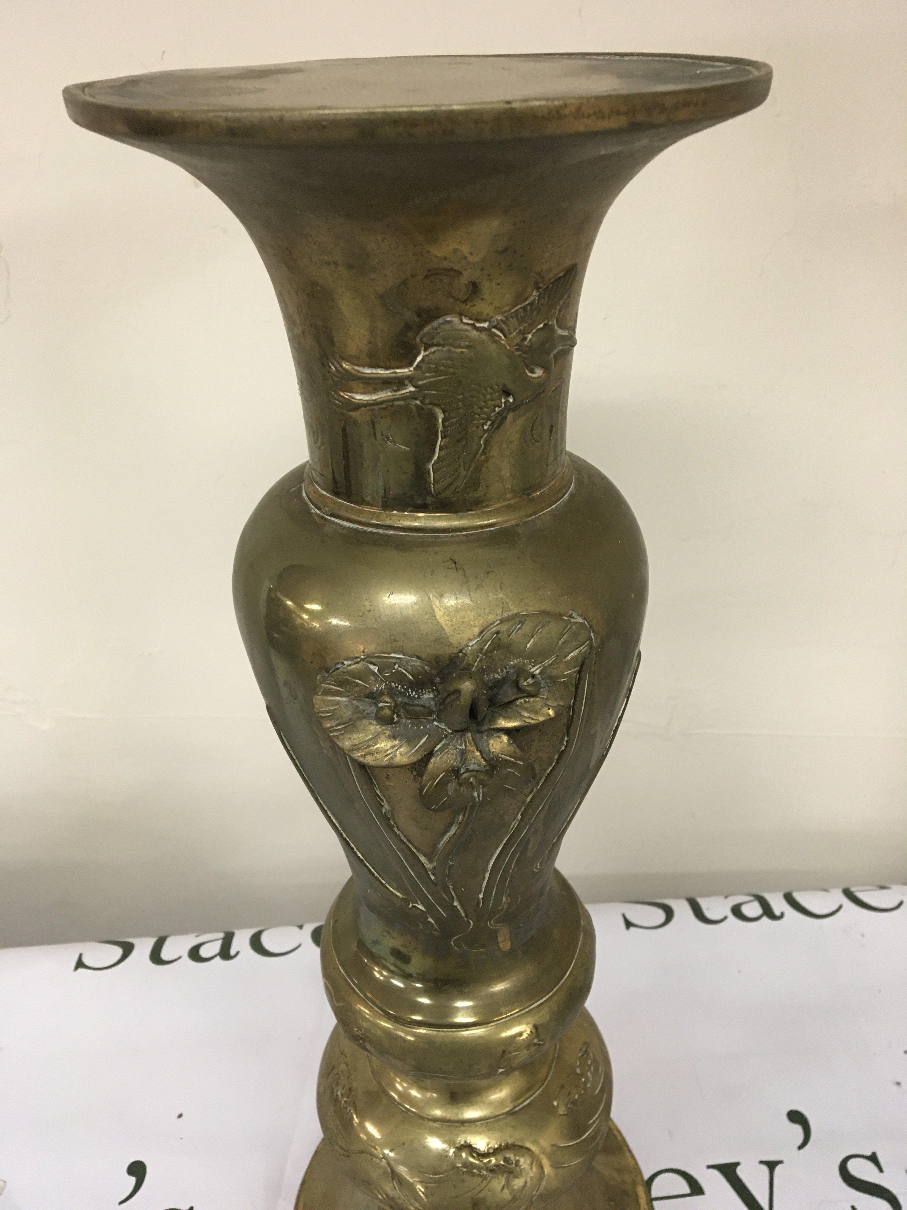 A brass Chinese vase or stand with raised floral decoration. NO RESERVE