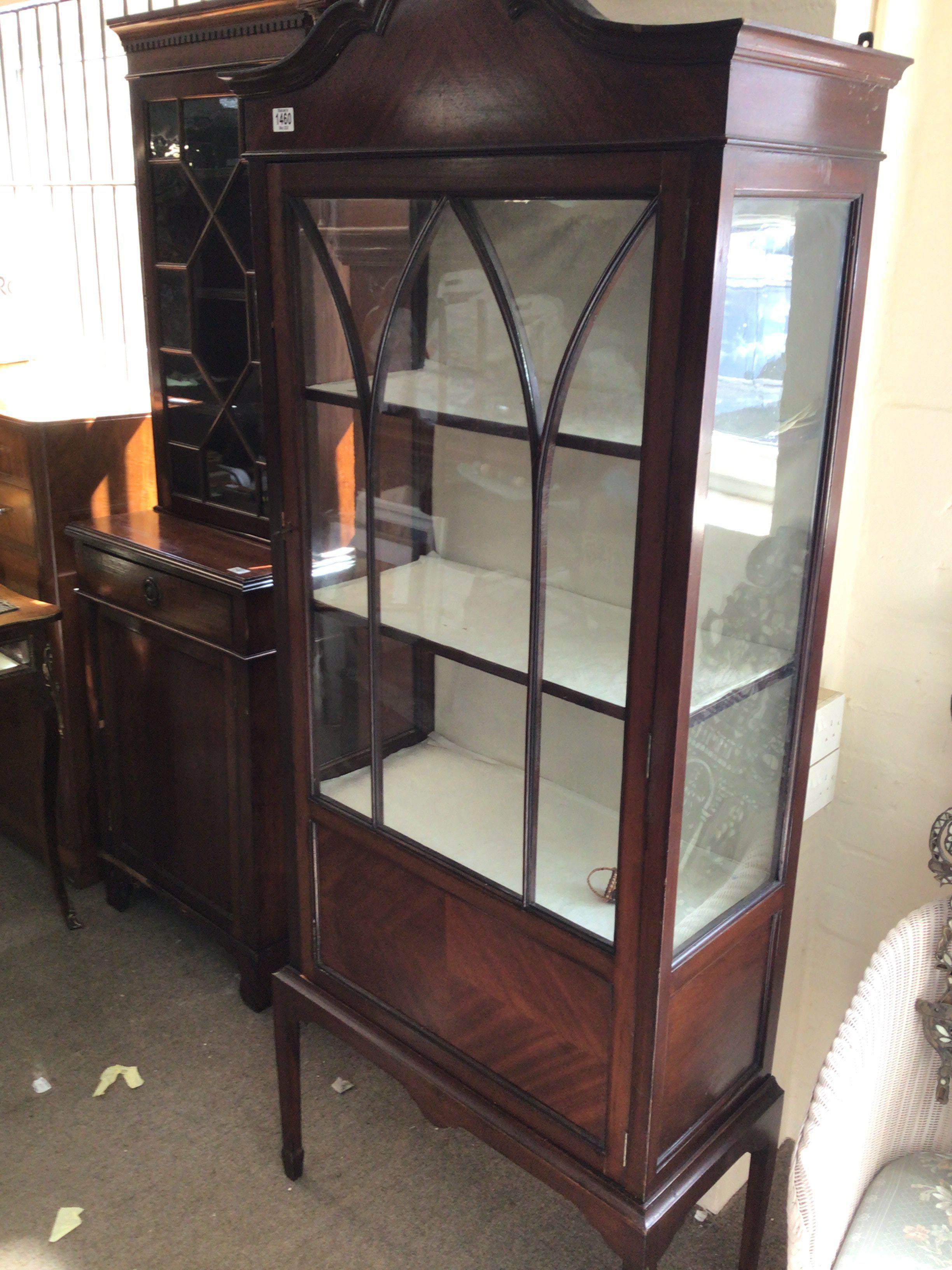 An Edwardian mahogany display cabinet with an arched shaped top above a single door on square legs. NO RESERVE