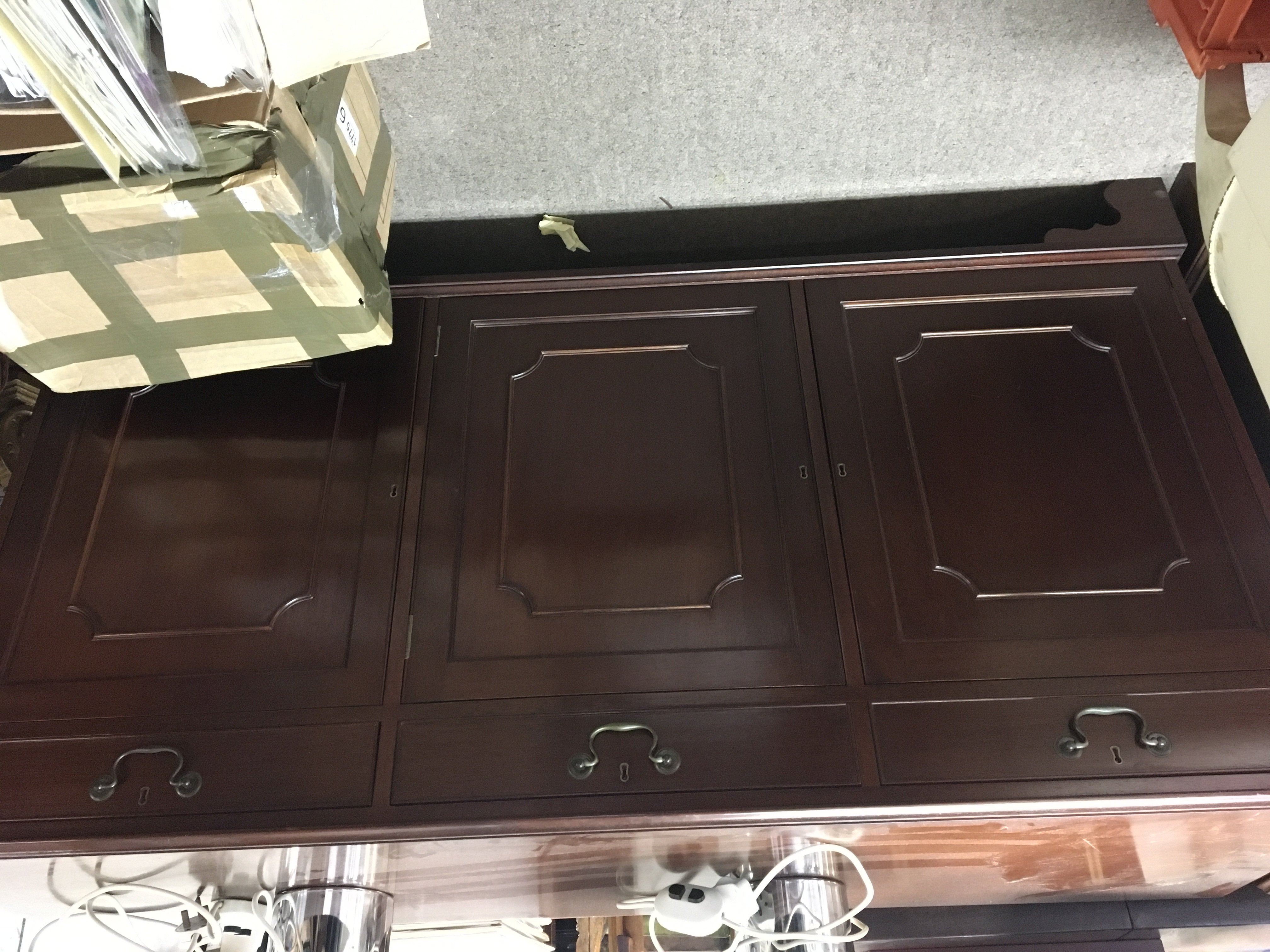 A Quality Mahogany sideboard maker Readman & Hale with three oak lined drawers above cupboards. Length 150cm. NO RESERVE