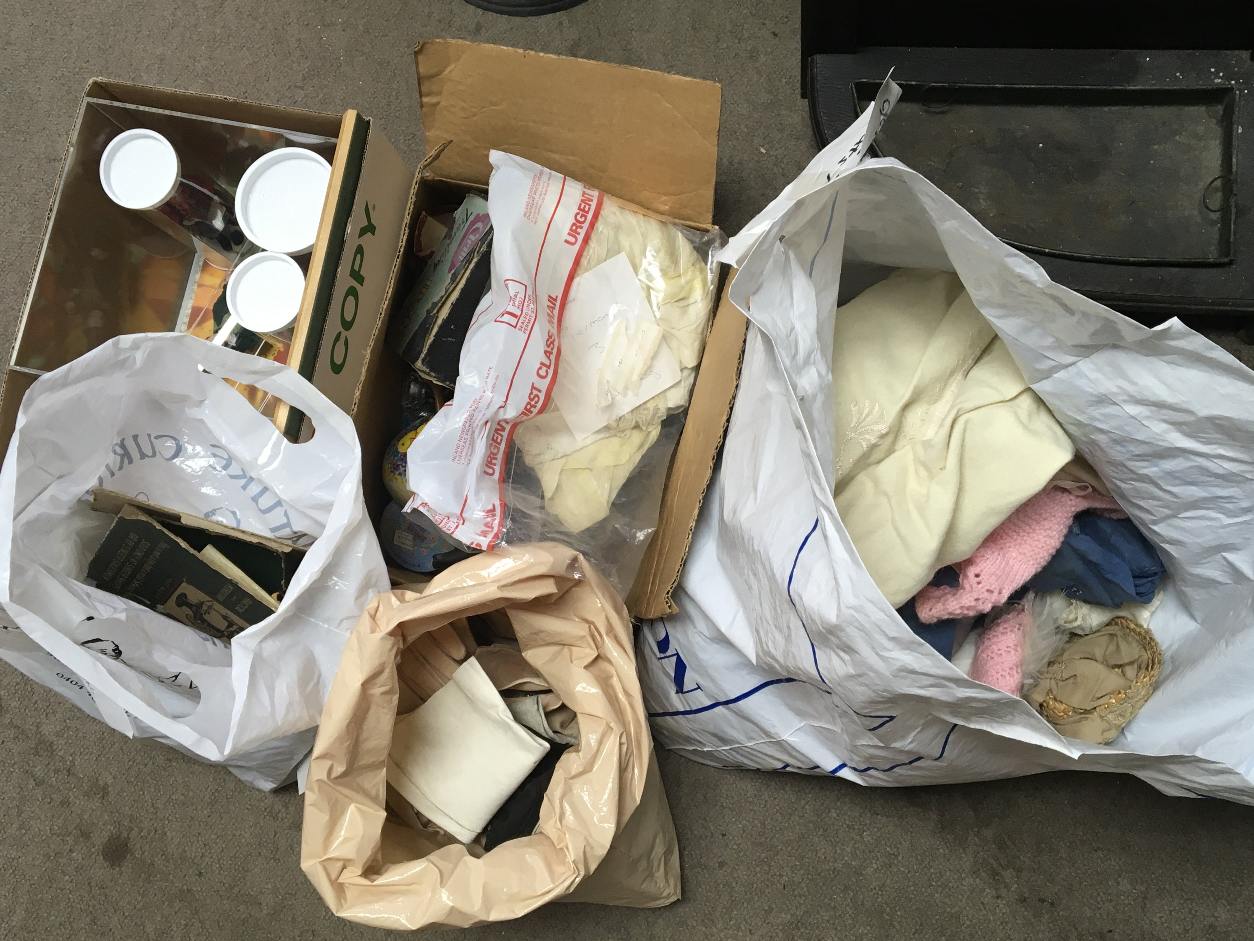 A collection of assorted vintage items including Kaiser Carol singer figures, miniature singer sewing machine, vintage childrens clothes, gloves etc. Postage category C. NO RESERVE