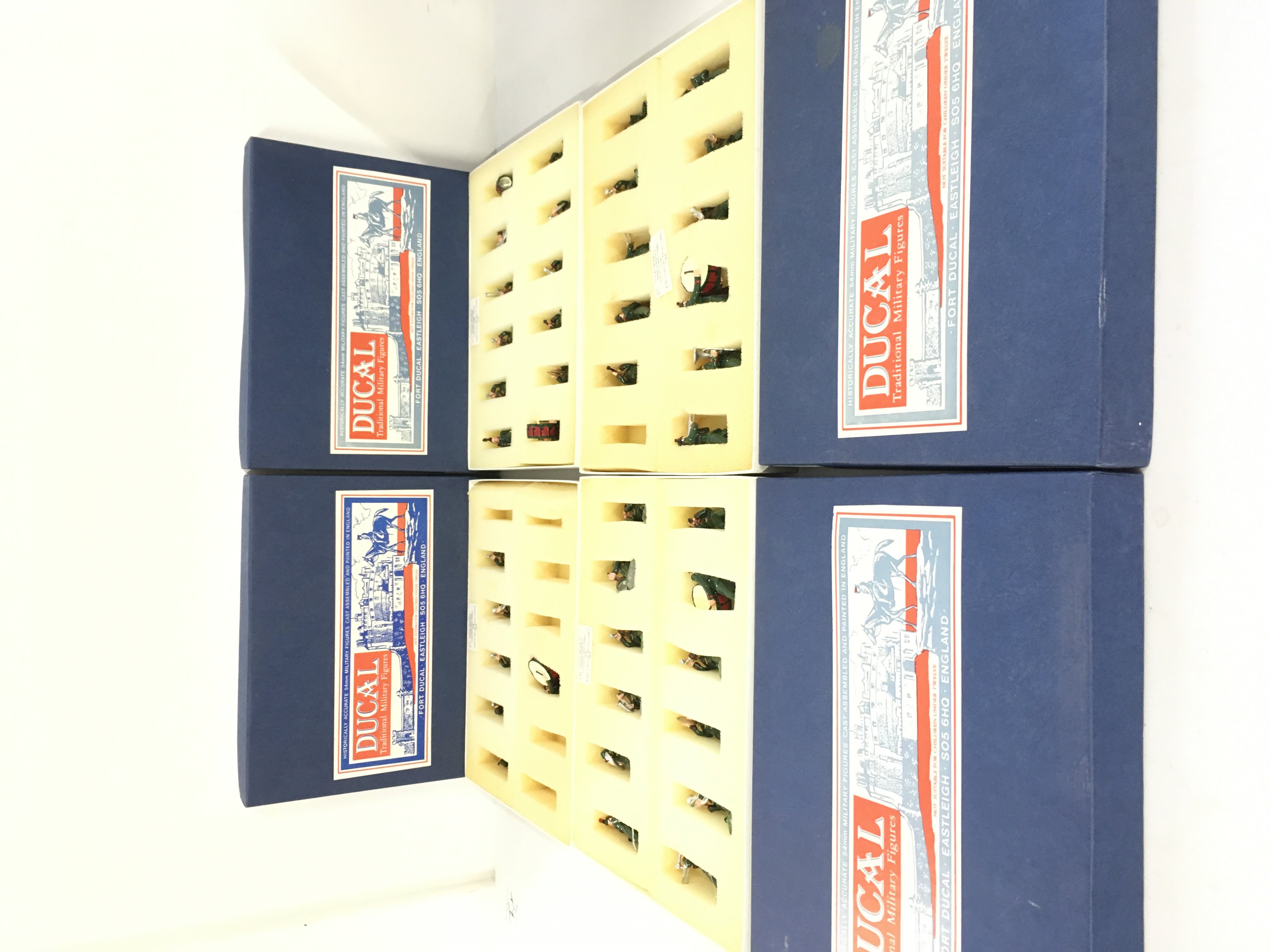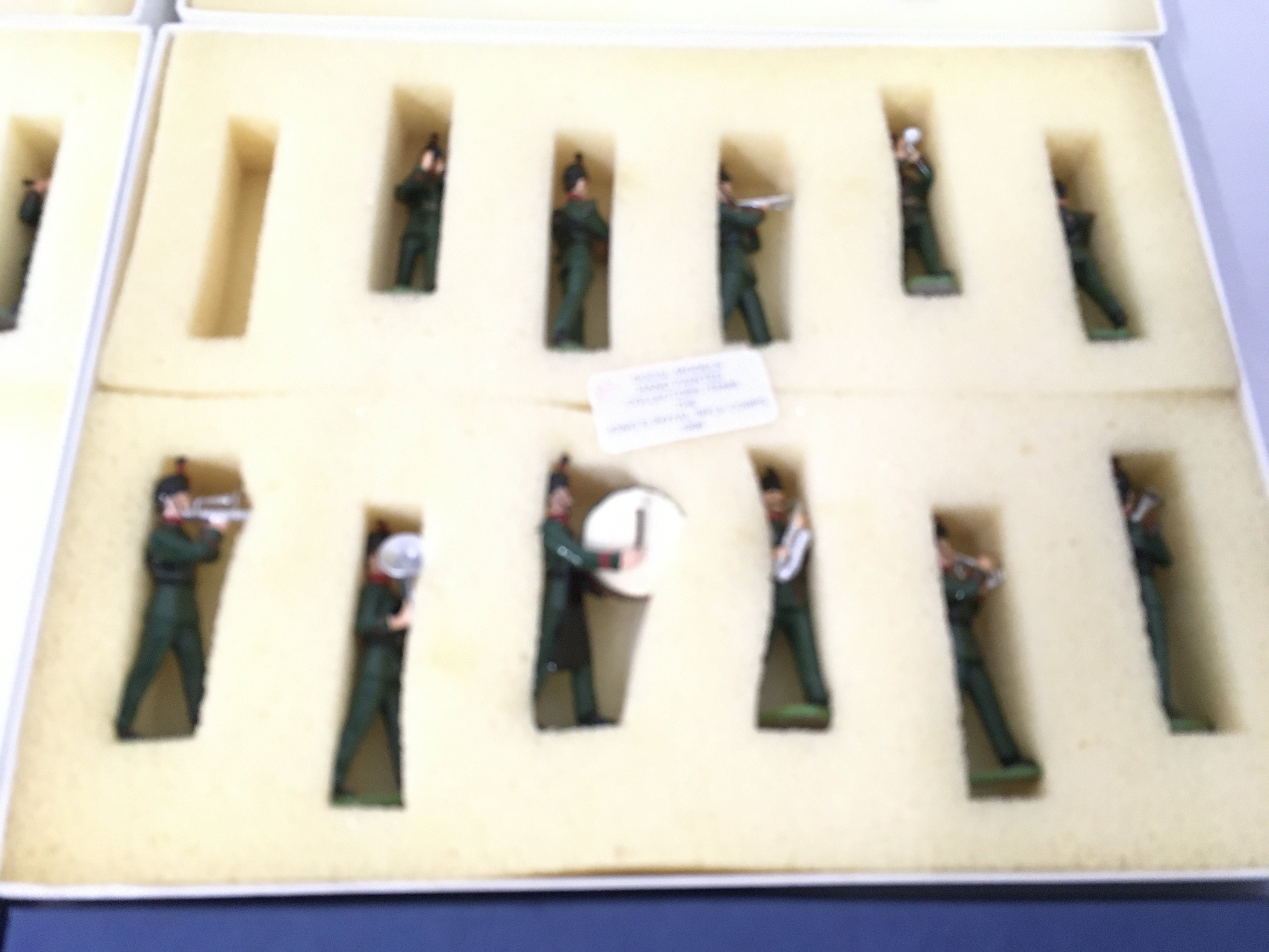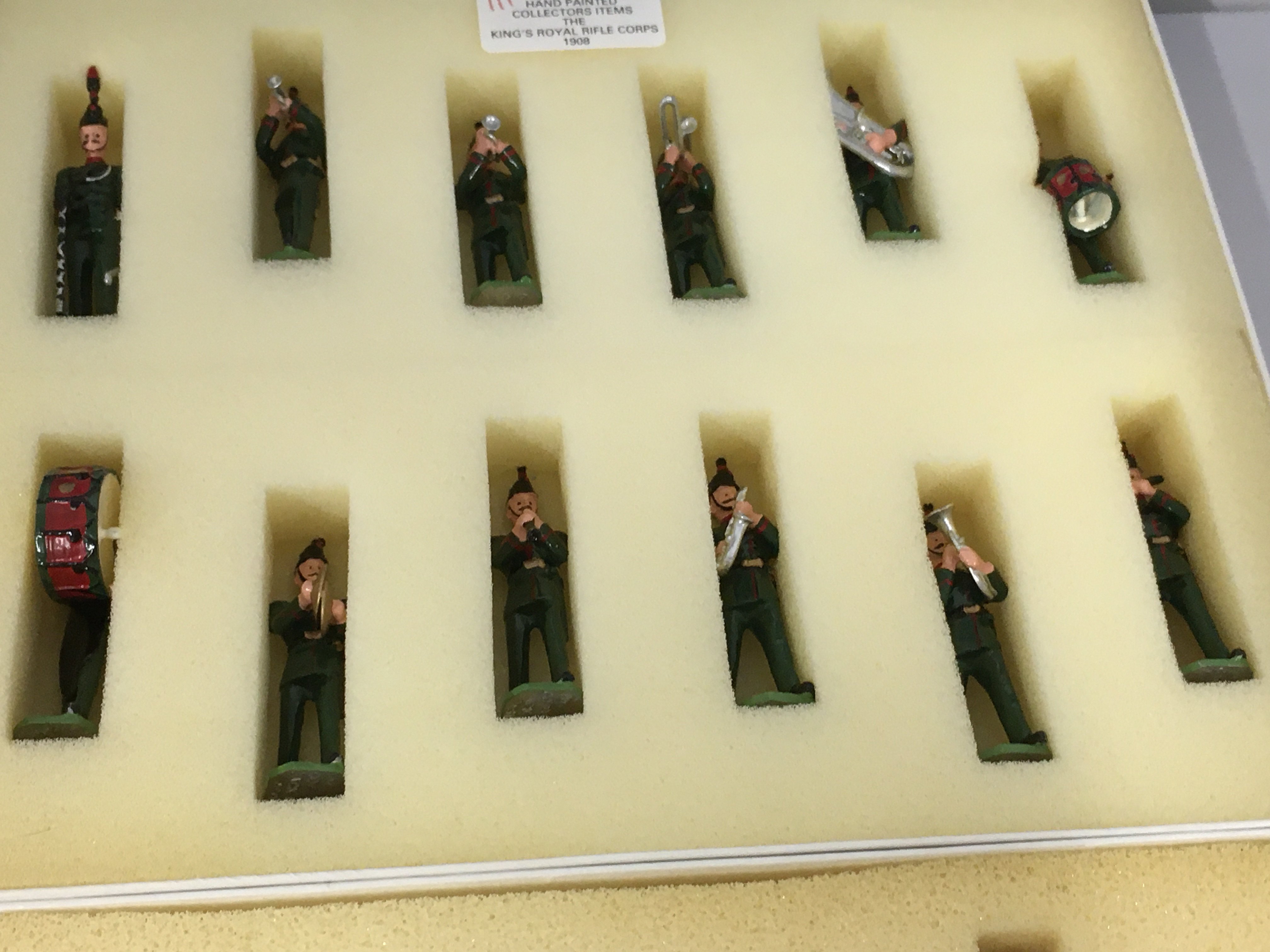 4 boxed Ducal metal military Minature figure sets features the marching band of The Kings Royal Rifle Corps 1908. No reserve