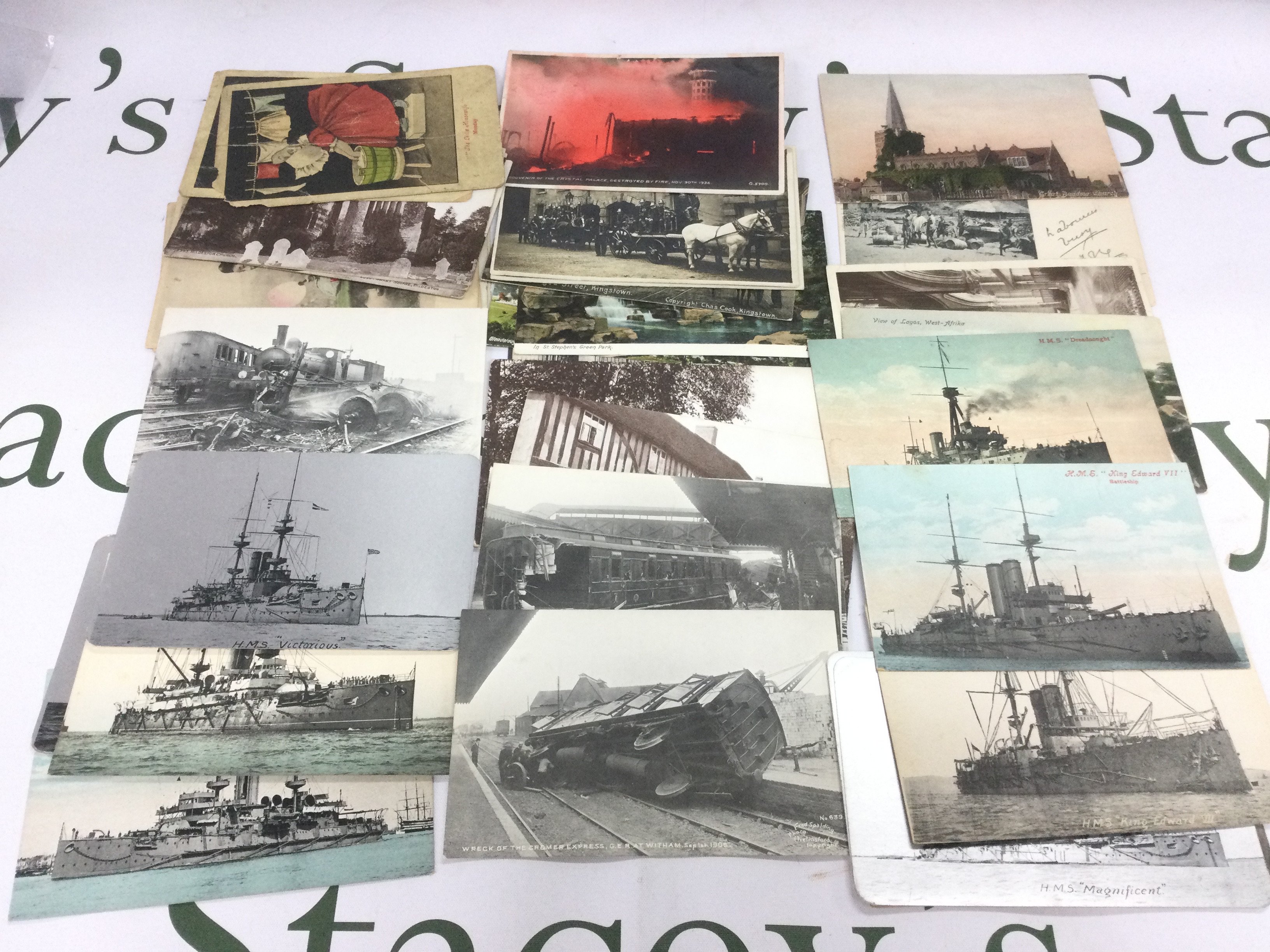 A small collection of postcards including Warships, the wreck of the Cromer Express, the Crystal Palace etc. Shipping category A. NO RESERVE
