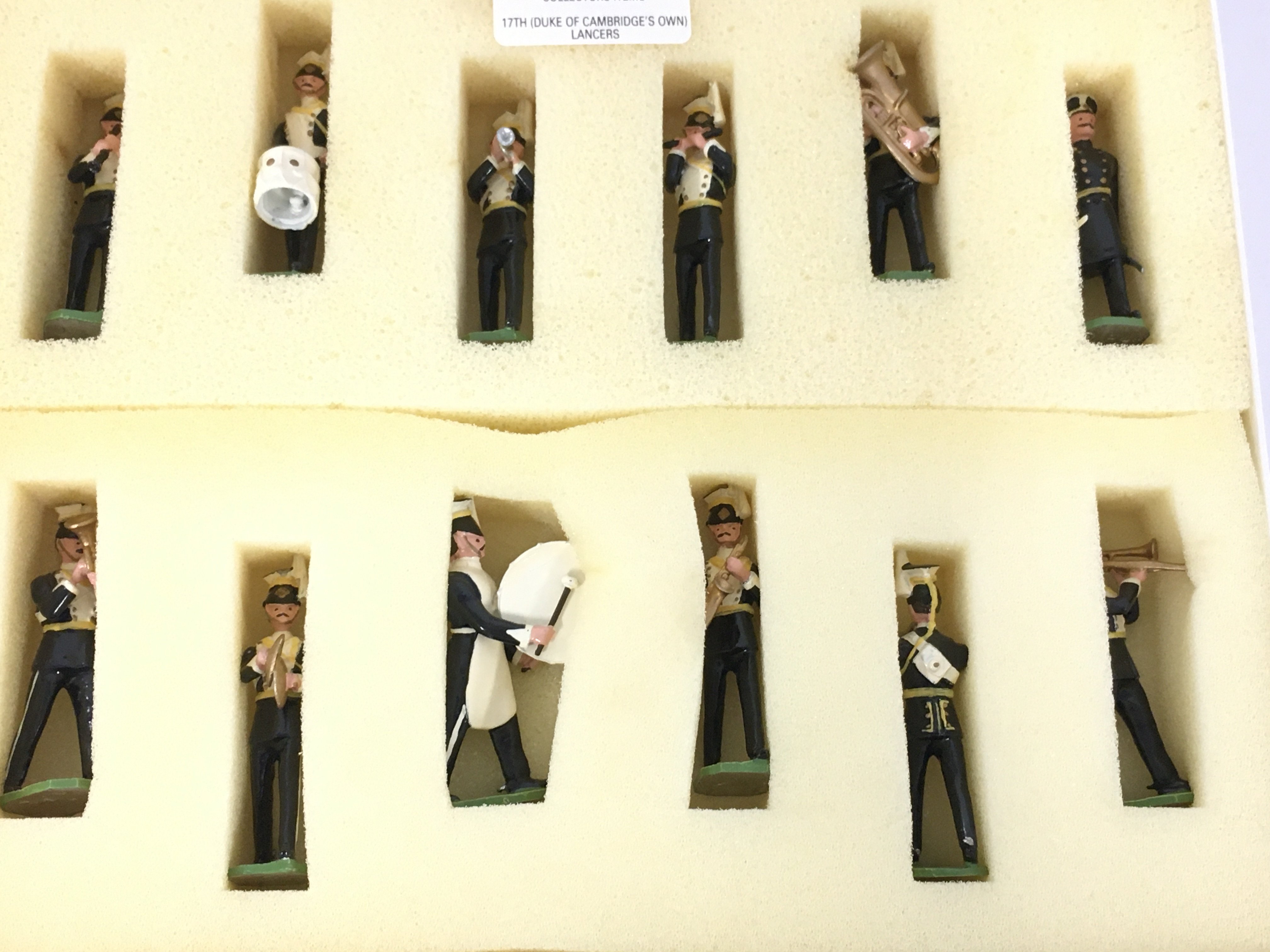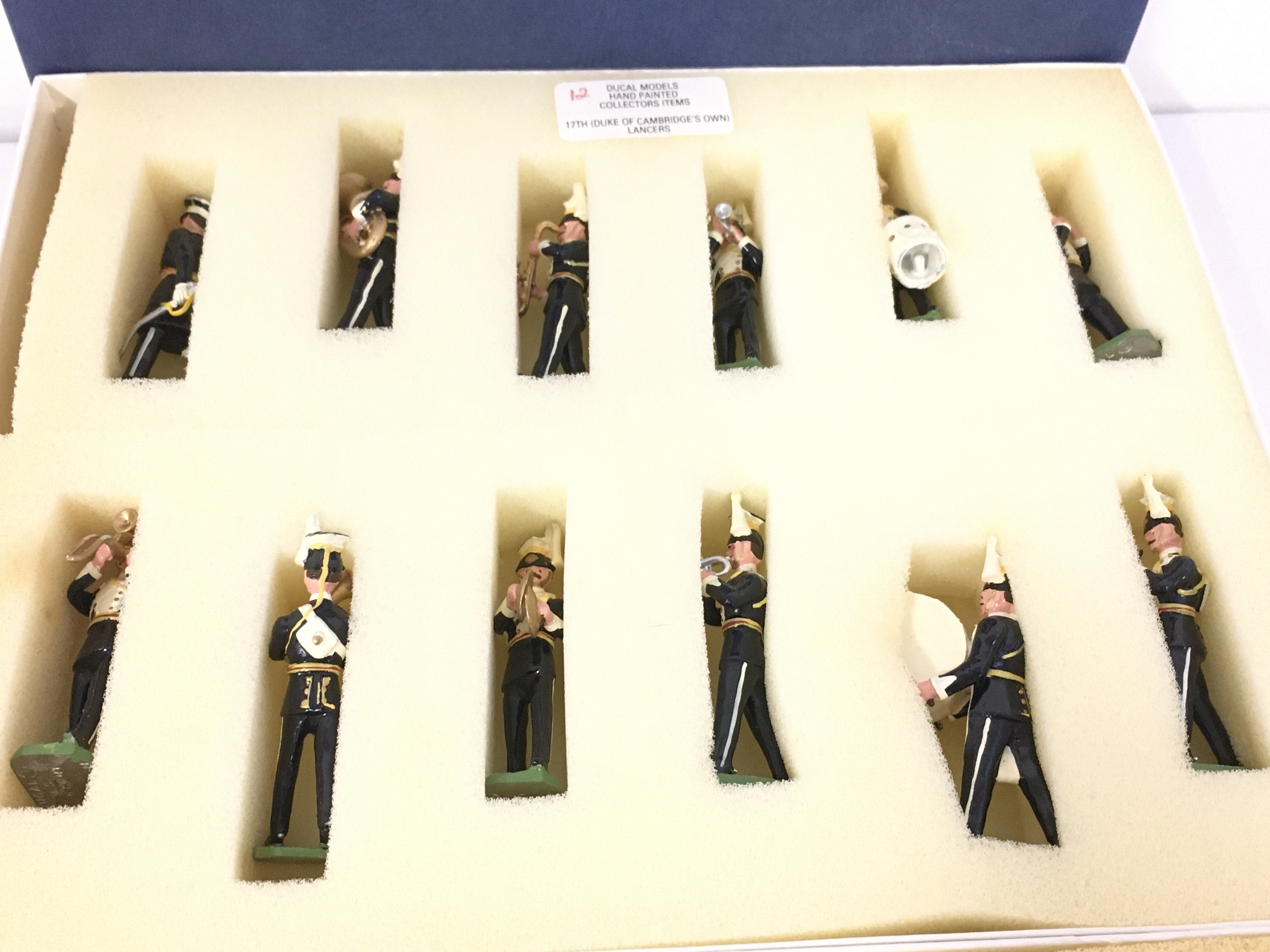 2 boxed Ducal metal military miniature figures featuring the marching band of 17th Duke of Cambridges Own Lancers. No reserve