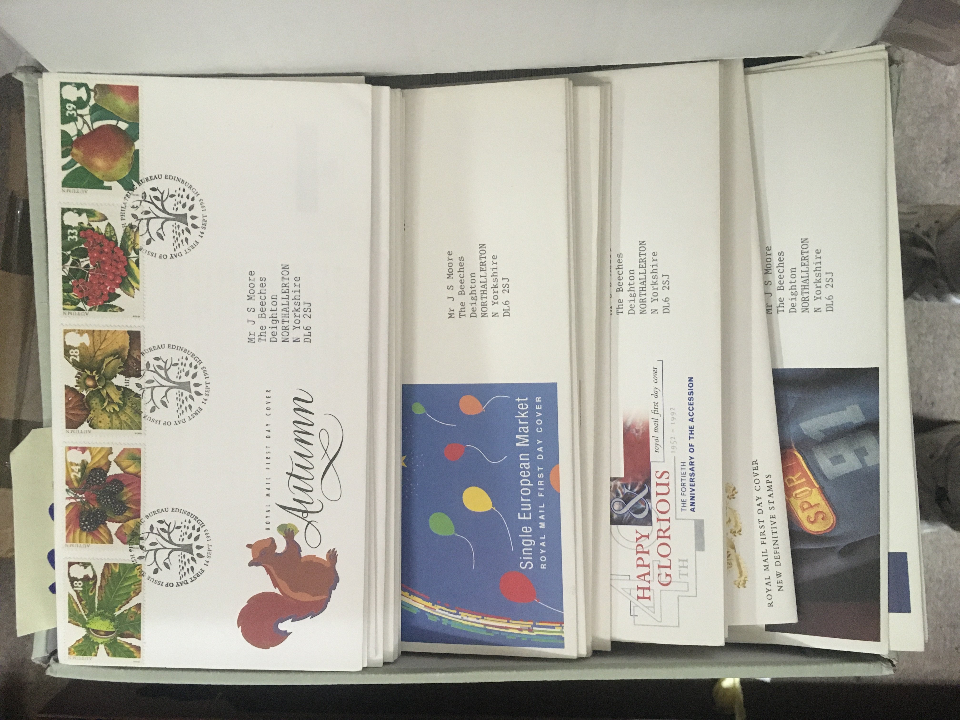 Two boxes of stamps including Fist Day Covers various. NO RESERVE