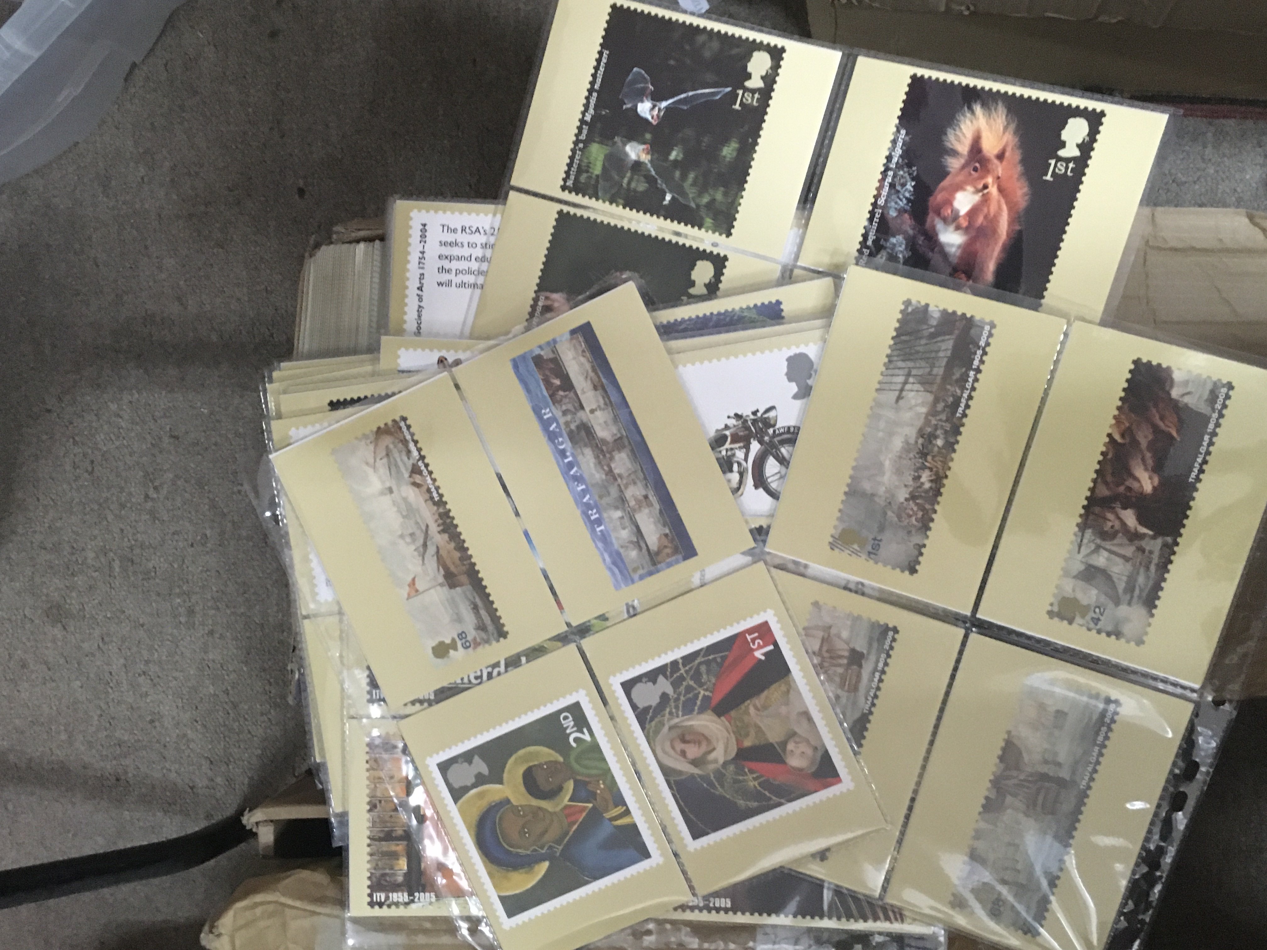 A box containing various royal mails stamp card series including Christmas sences,battle of Trafalgar and science from nature. NO RESERVE