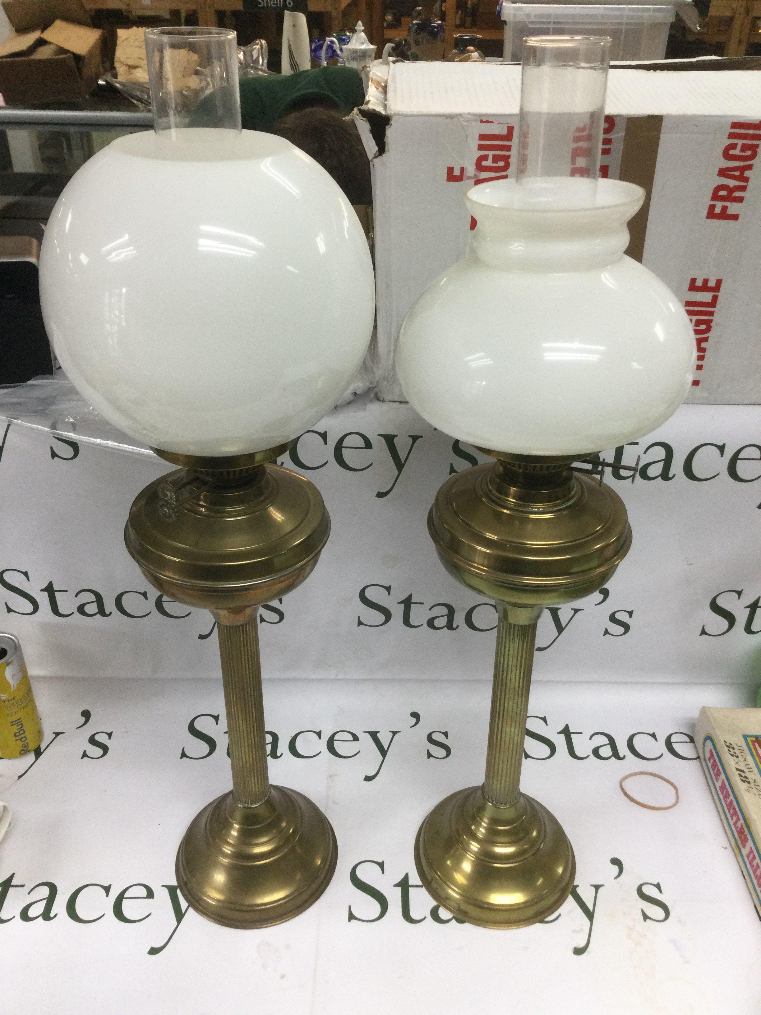 A pair of brass oil lamps. Shipping category D. NO RESERVE