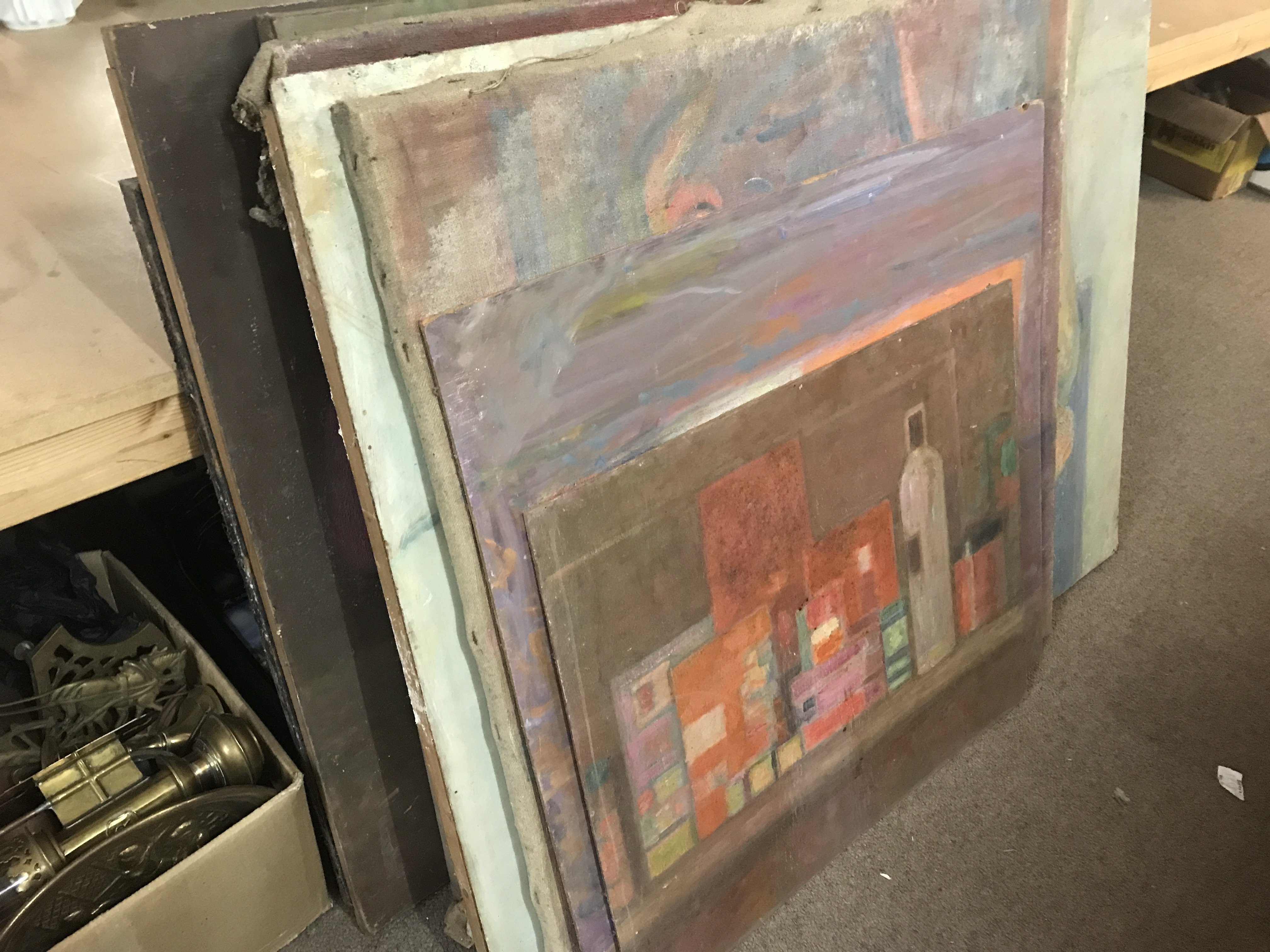 A large collection of 20th century paintings by Albert Harold Palmer including several depictions of figures including some nude, abstract, portrait etc. This lot cannot be posted