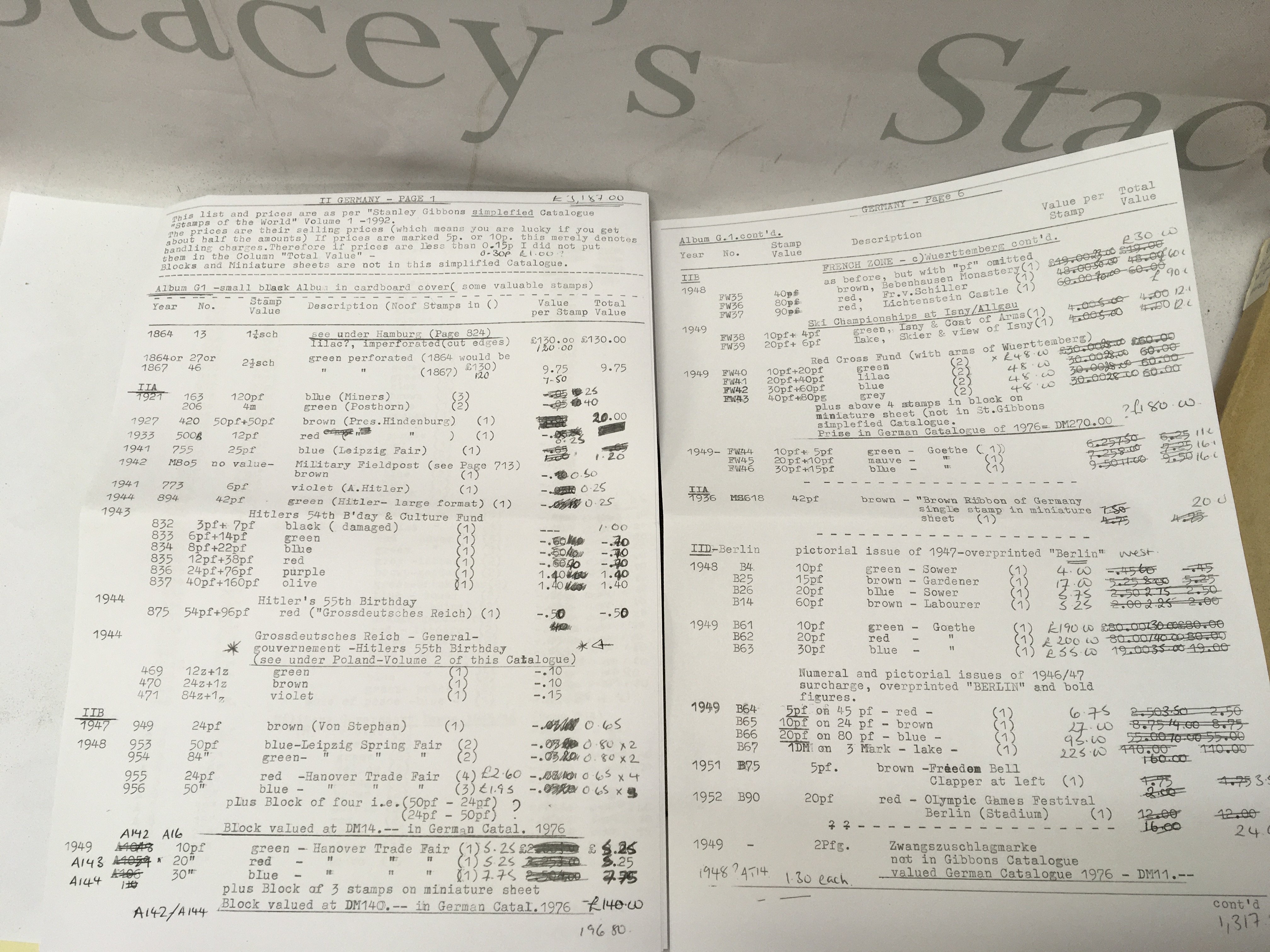 An album of German stamps used and unused, some 19th century stamps with a detailed inventory from Stanley Gibbons