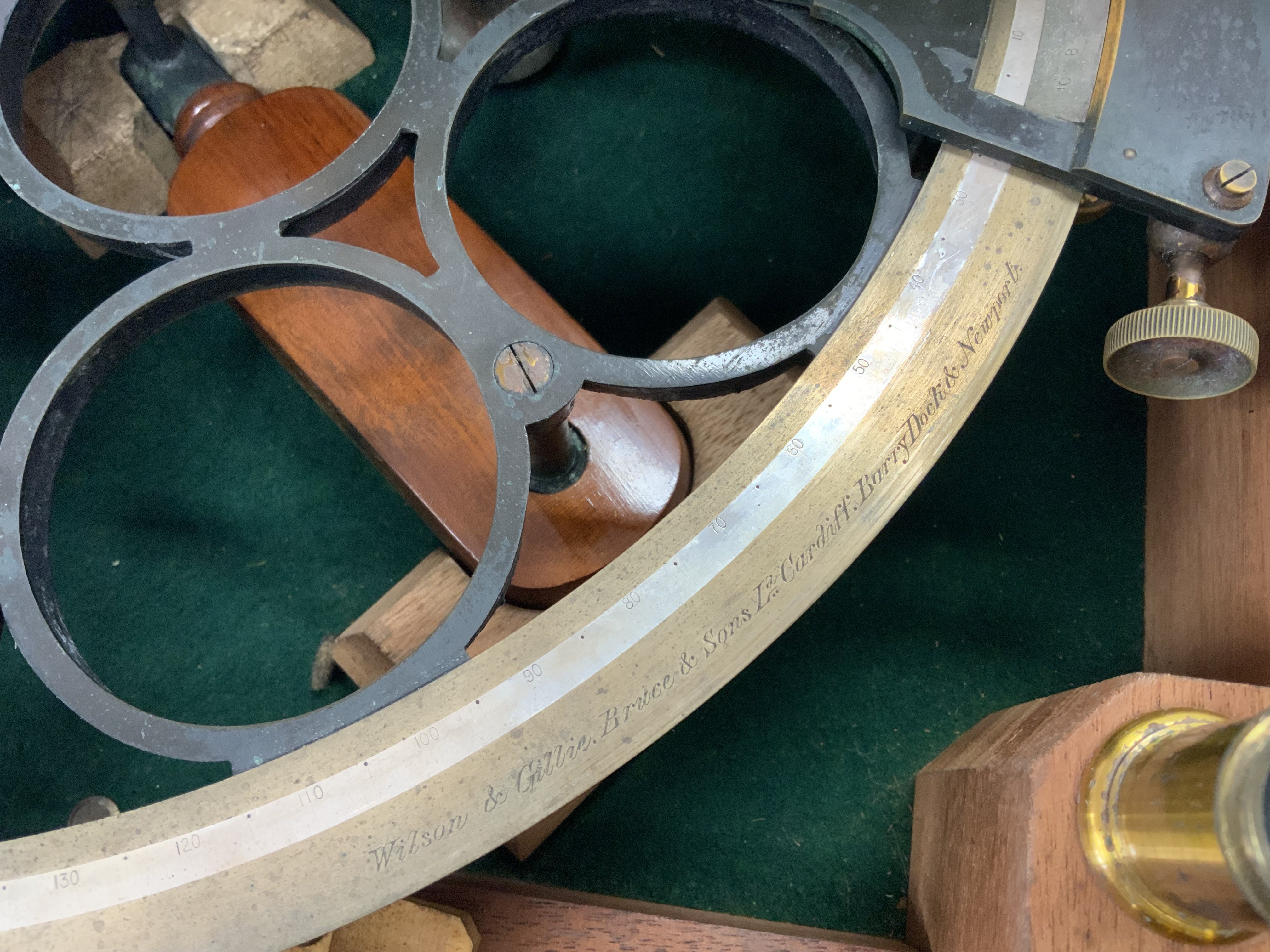 A cased 19th century brass sextant by Wilson, Gillie, Bruce & Sons Ltd, Cardiff, with accessories (C)