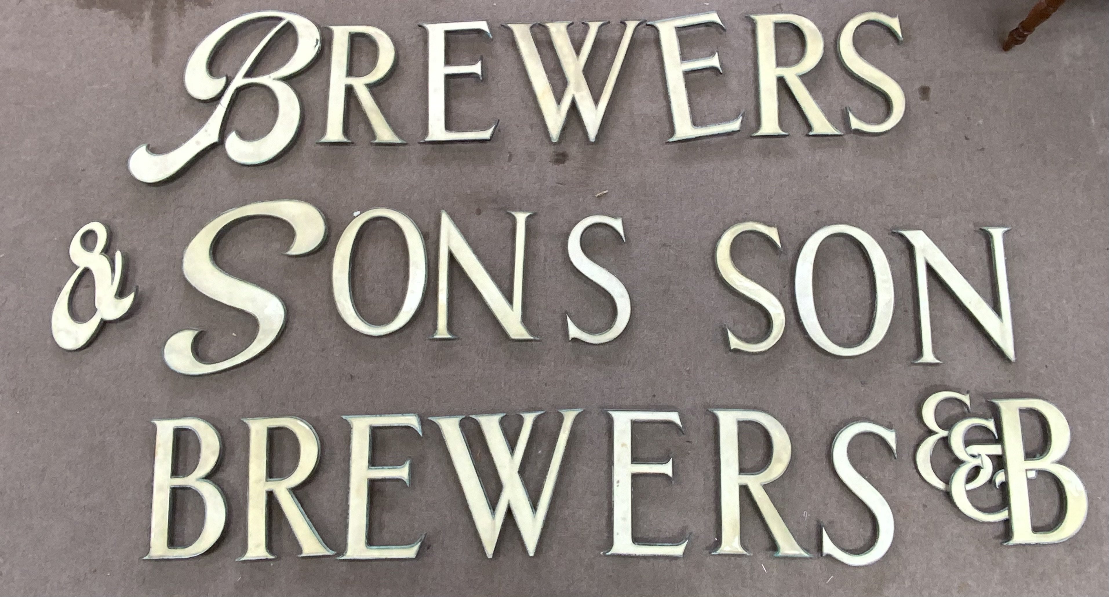 Local interest. A collection of 24 large enamel letters from Brewers & Sons grocers store, Leigh on Sea, 36cm.