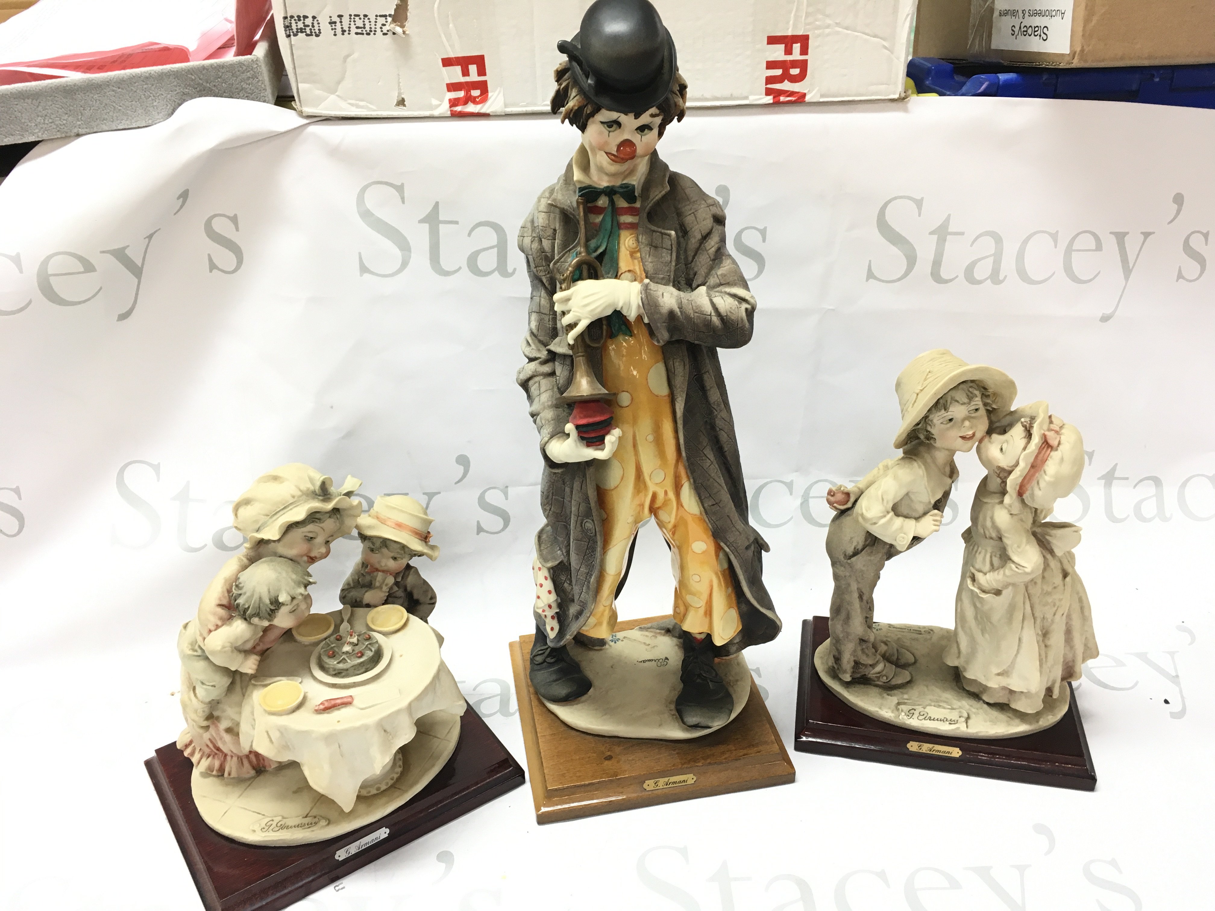 Three resin Figures including two groups and a large clown figure . This lot cannot be posted. NO RESERVE