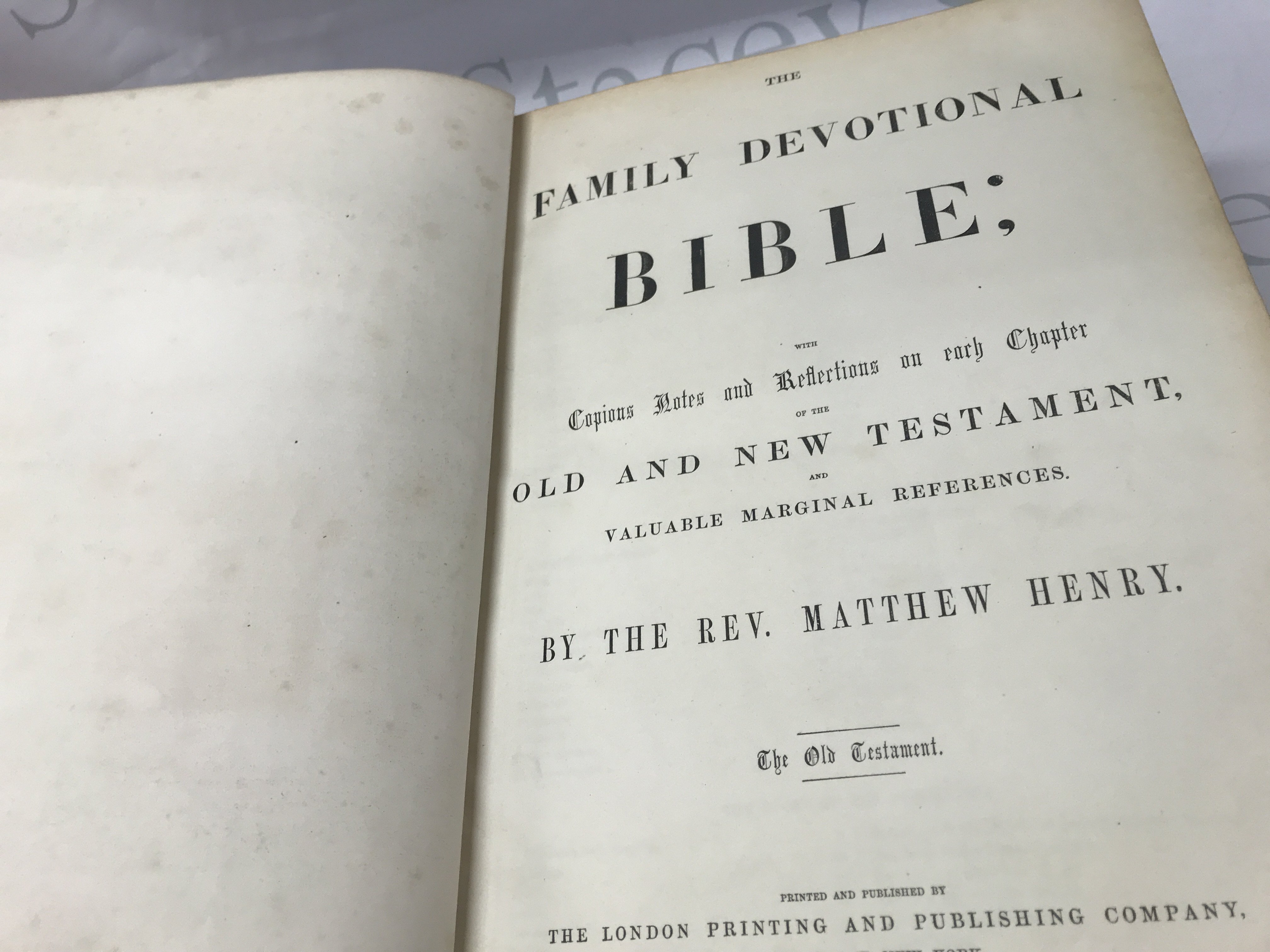 A large Victorian leather bound bible, The Family Devotional Bible by the Revered Matthew Henry . Postage category C