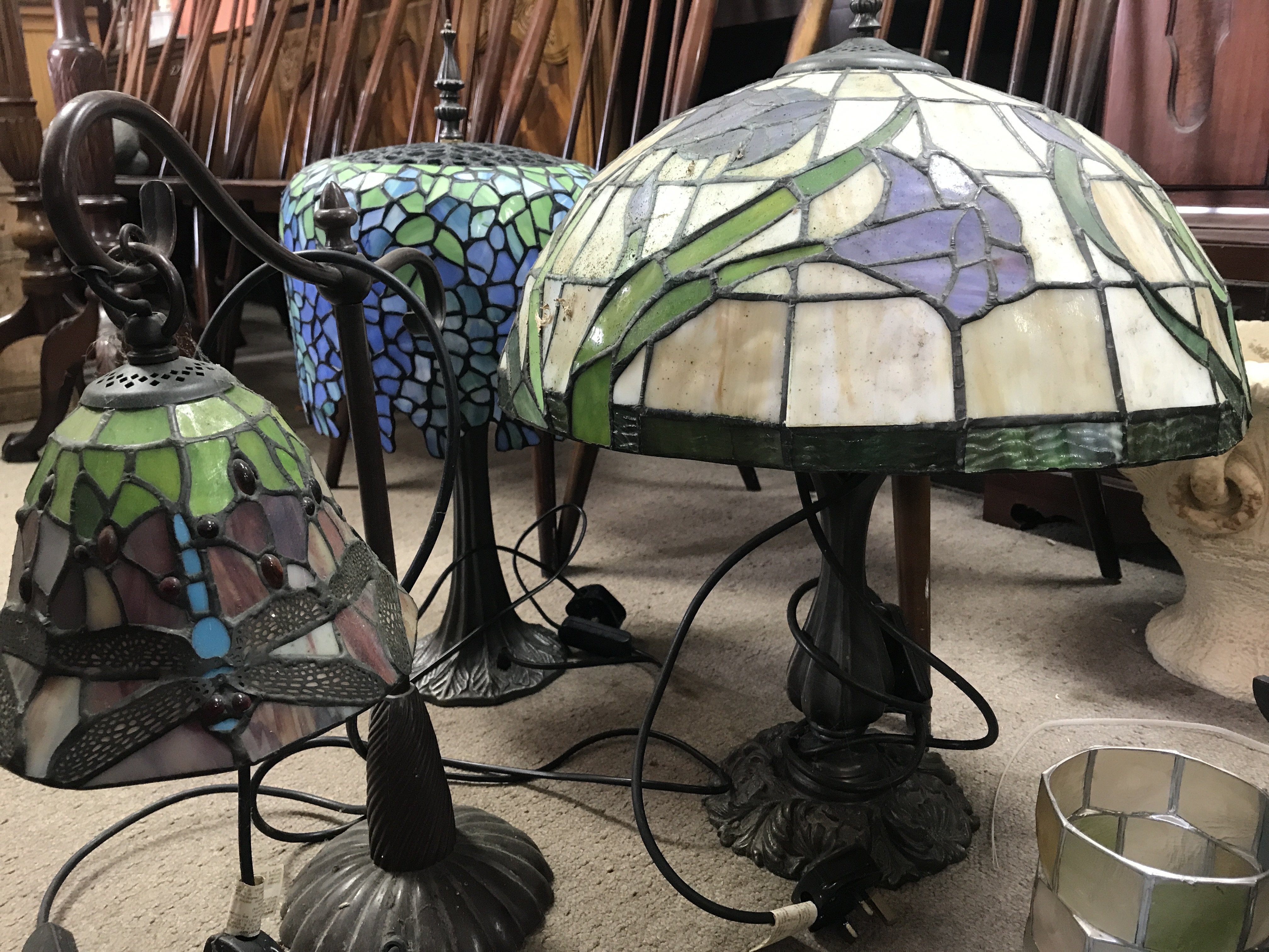 Retrospective copy Tiffany style coloured glass lamps . This lot cannot be posted