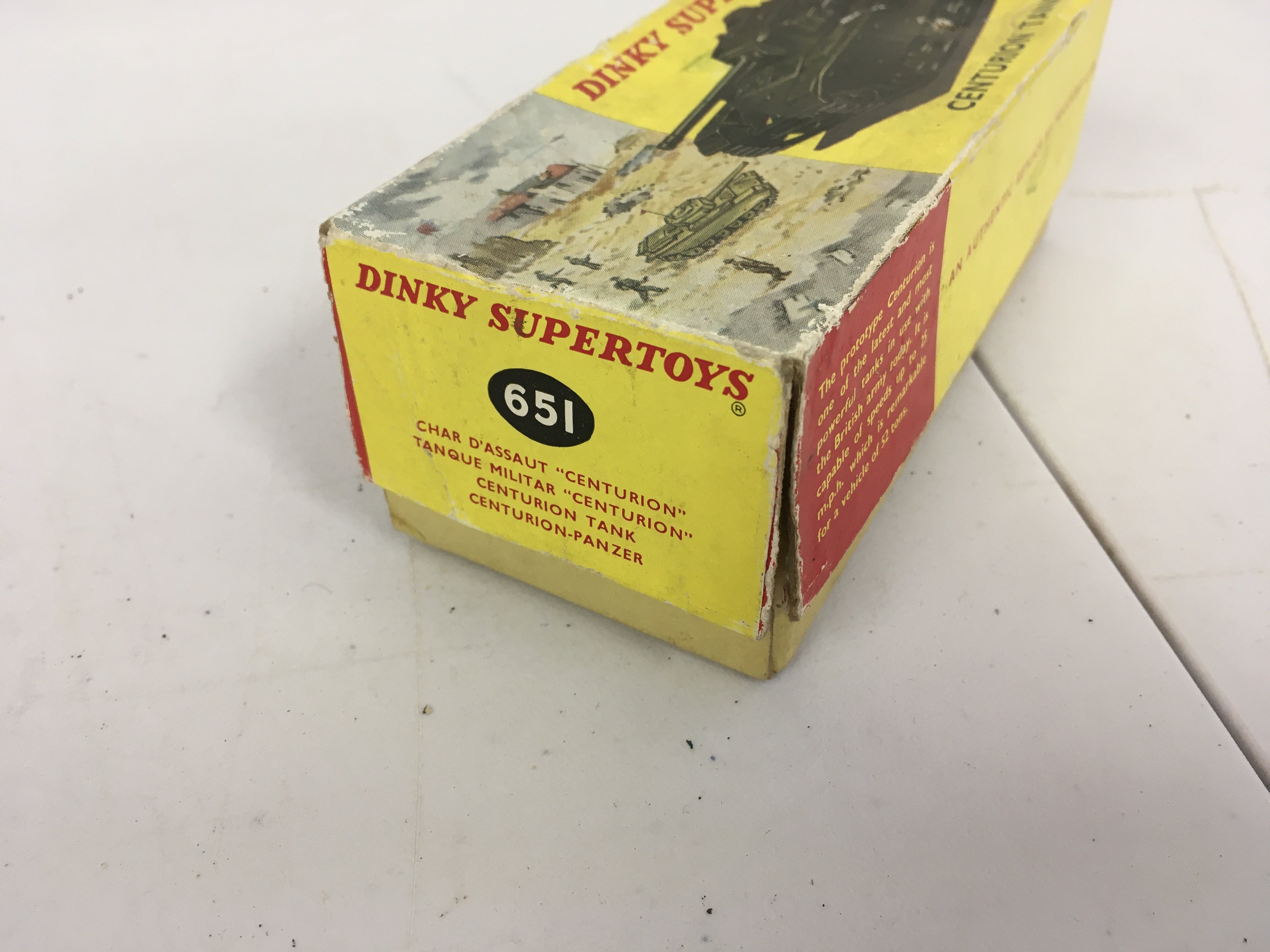 A boxed diecast model Centurion Tank by Dinky no.651. Box is worn. No reserve