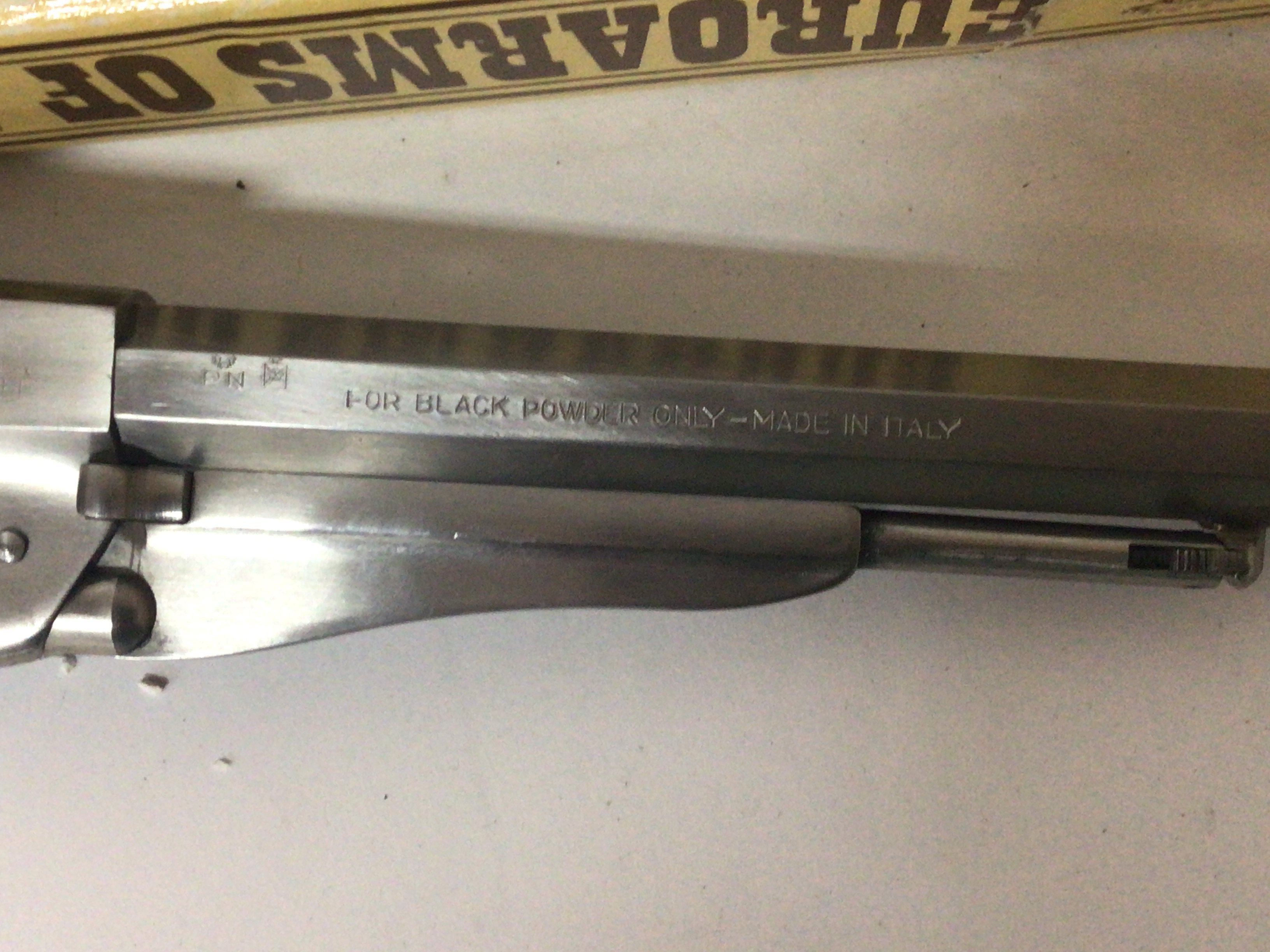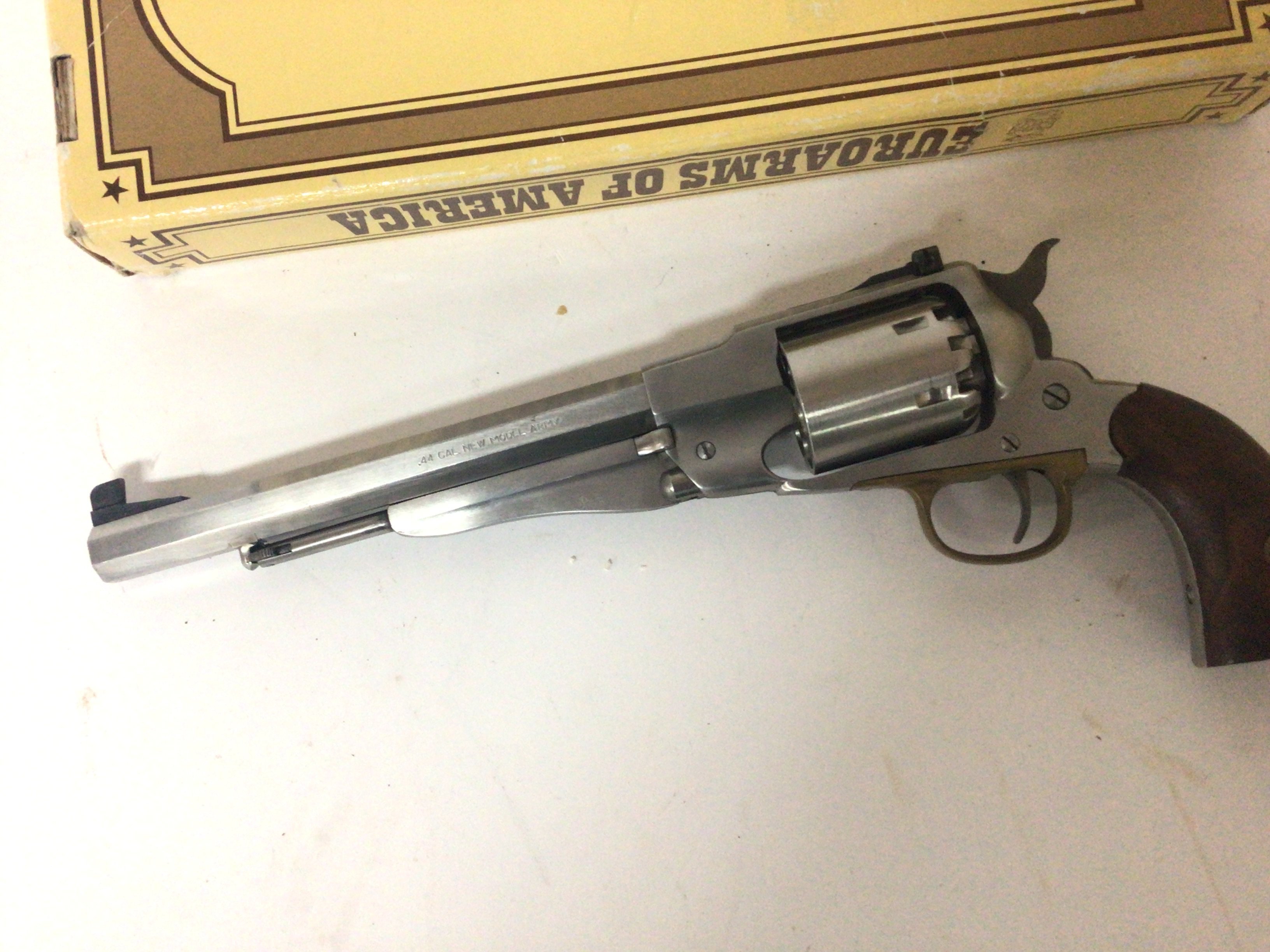 An Italian made Rodgers & Spencer Revolver 44 caliber retrospective functional copy of a 19th century percussion six shot 1858 model As new and boxed Euroarms of America. Very good condition. Serial number 115305 the barrel stamped FOR BLACK POWDER ONLY. A FIRE ARMS LICENSE IS REQUIRED TO BID AND BUY THIS LOT.VIEWING AND COLLECTION BY APPOINTMENT ONLY.
