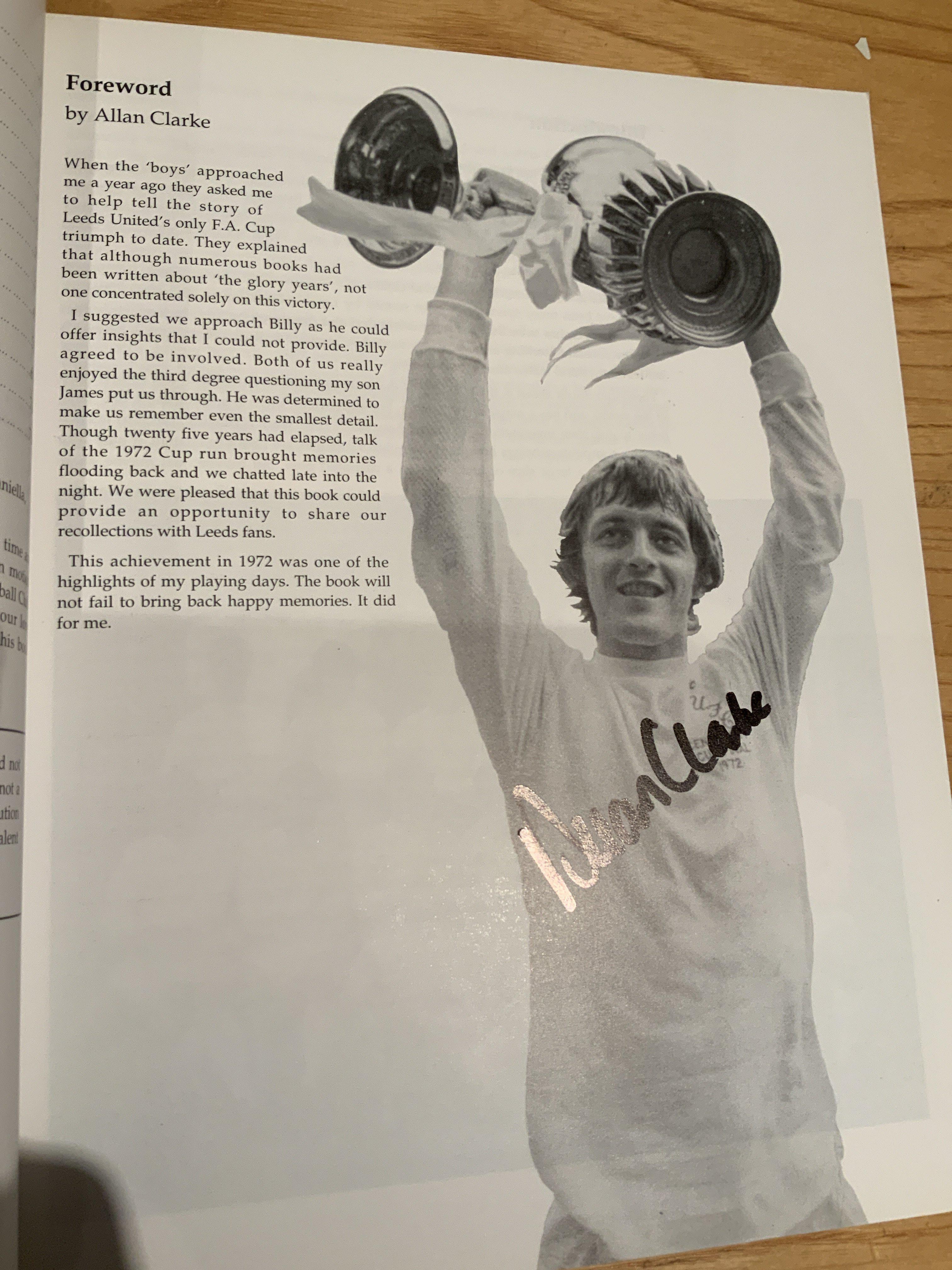 Leeds United 1972 Cup Kings Signed Football Book: Soft cover excellent condition book signed inside by Reaney Harvey Gray Jones Bates and on picture inside by Clarke.