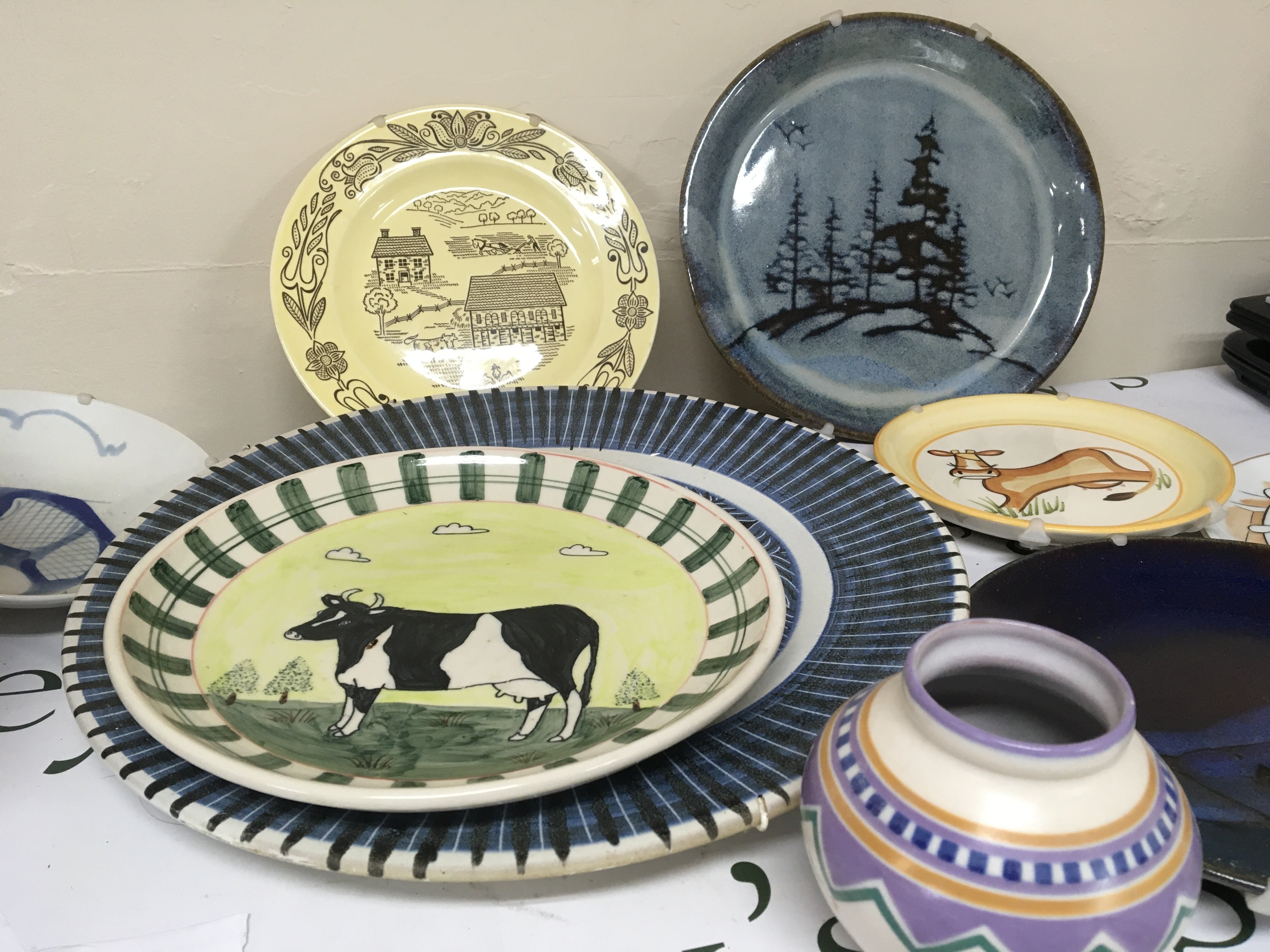 A collection of Mid 20th century and later modern ceramics including a Poole vase Norwegian dish and other ceramics