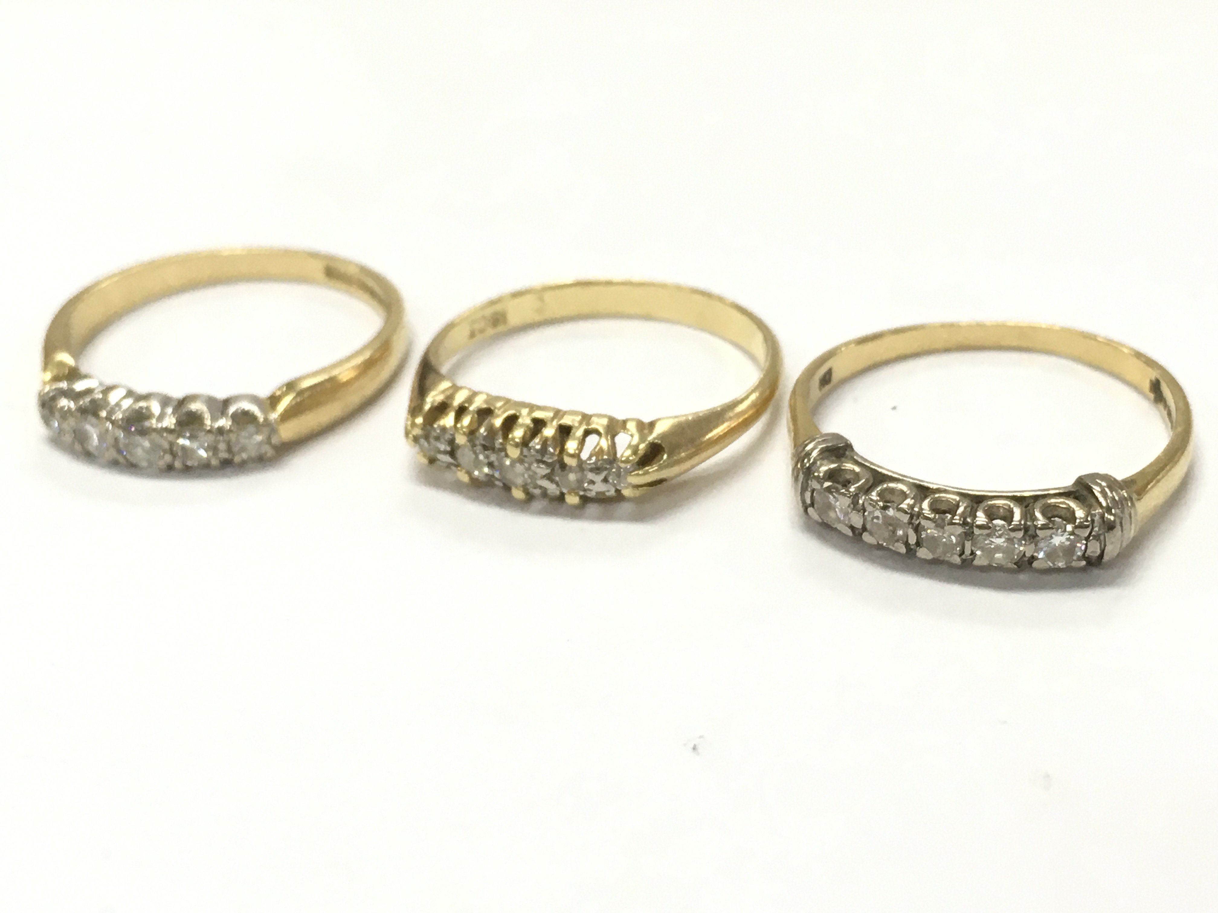 18ct white gold 5 stone diamond rings, 7.8g total weight. Postage category A