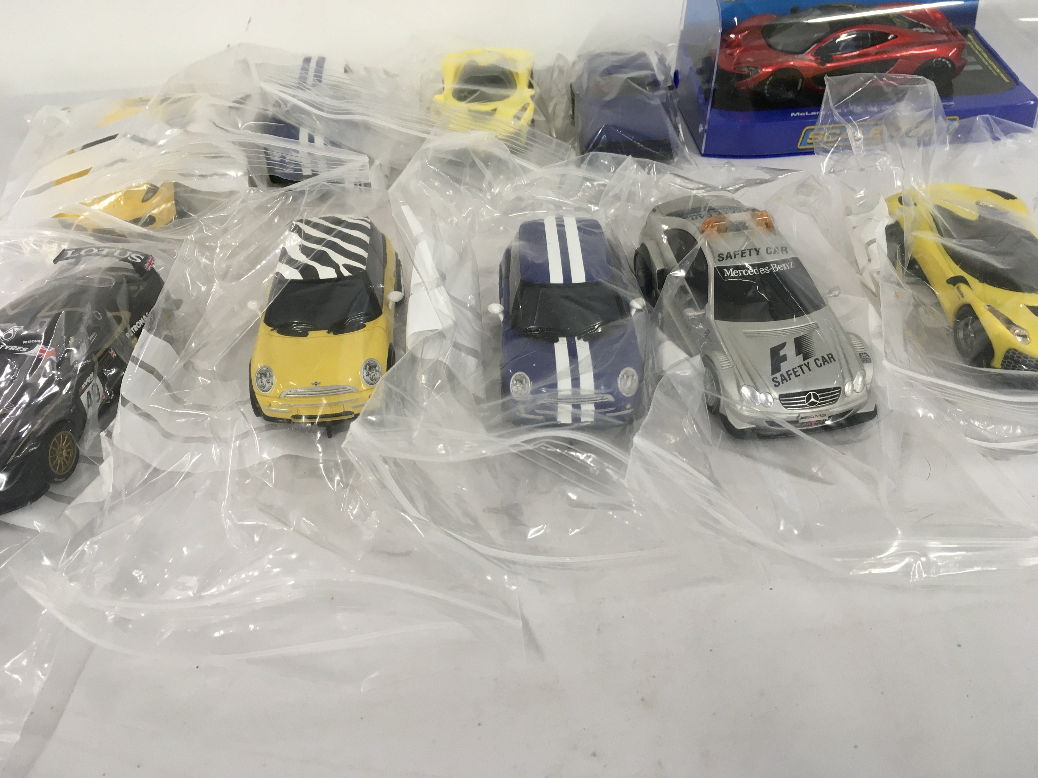A collection of used Scalextric..Hornby model cars including a boxed McLaren P1. No reserve