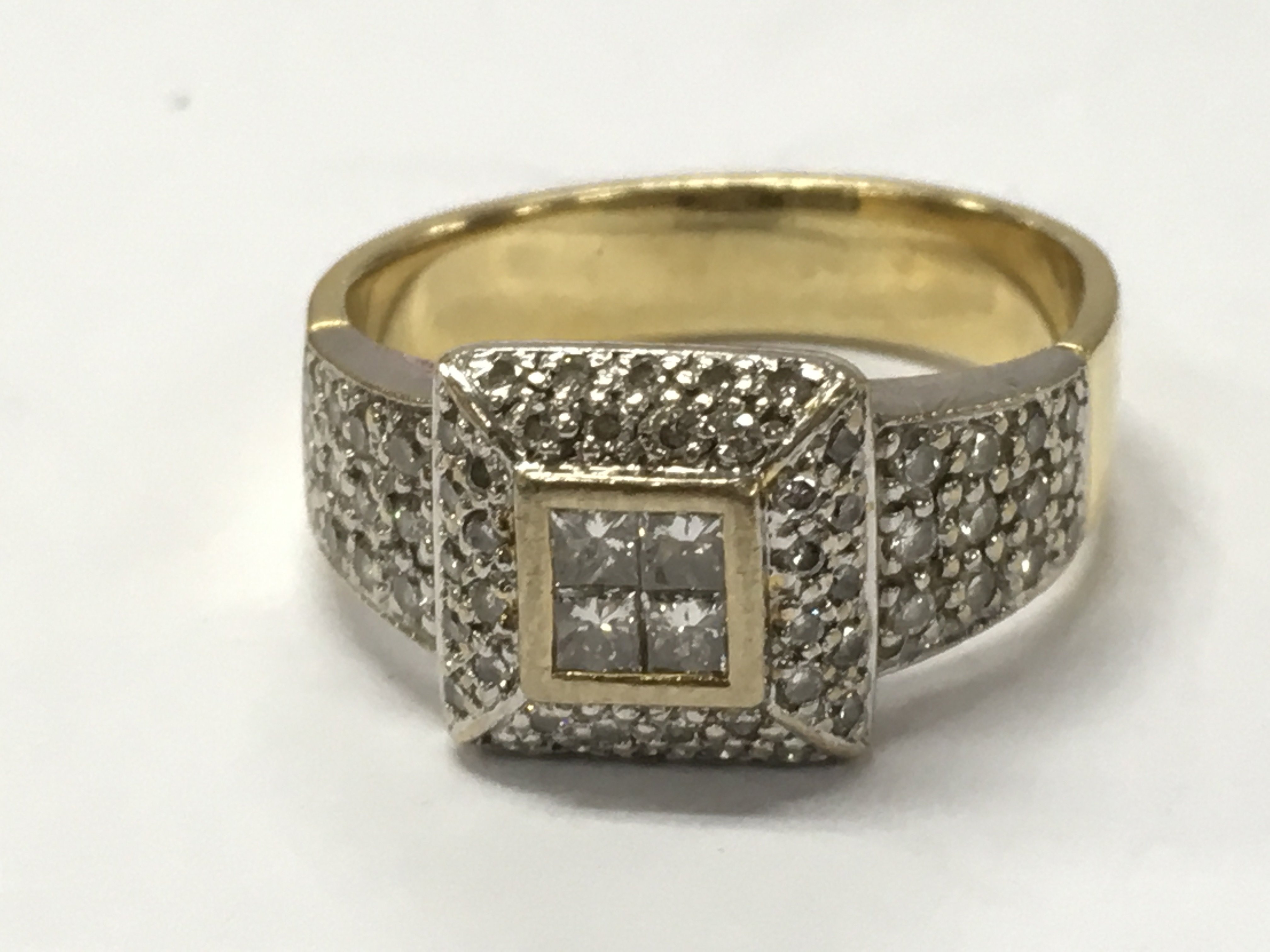 An 18ct gold diamond cluster ring , 7g total weight, size O. Postage category A