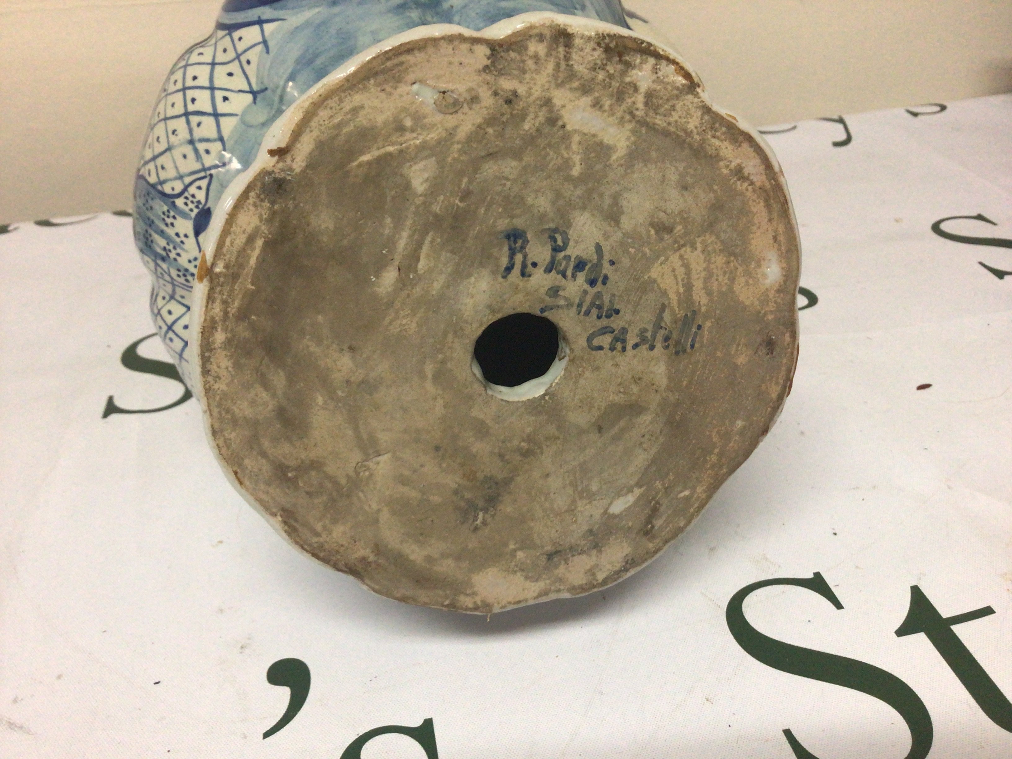 A 19th century Dutch Delft blue and white vase decorated with figures birds and foliage signed base height 33cm