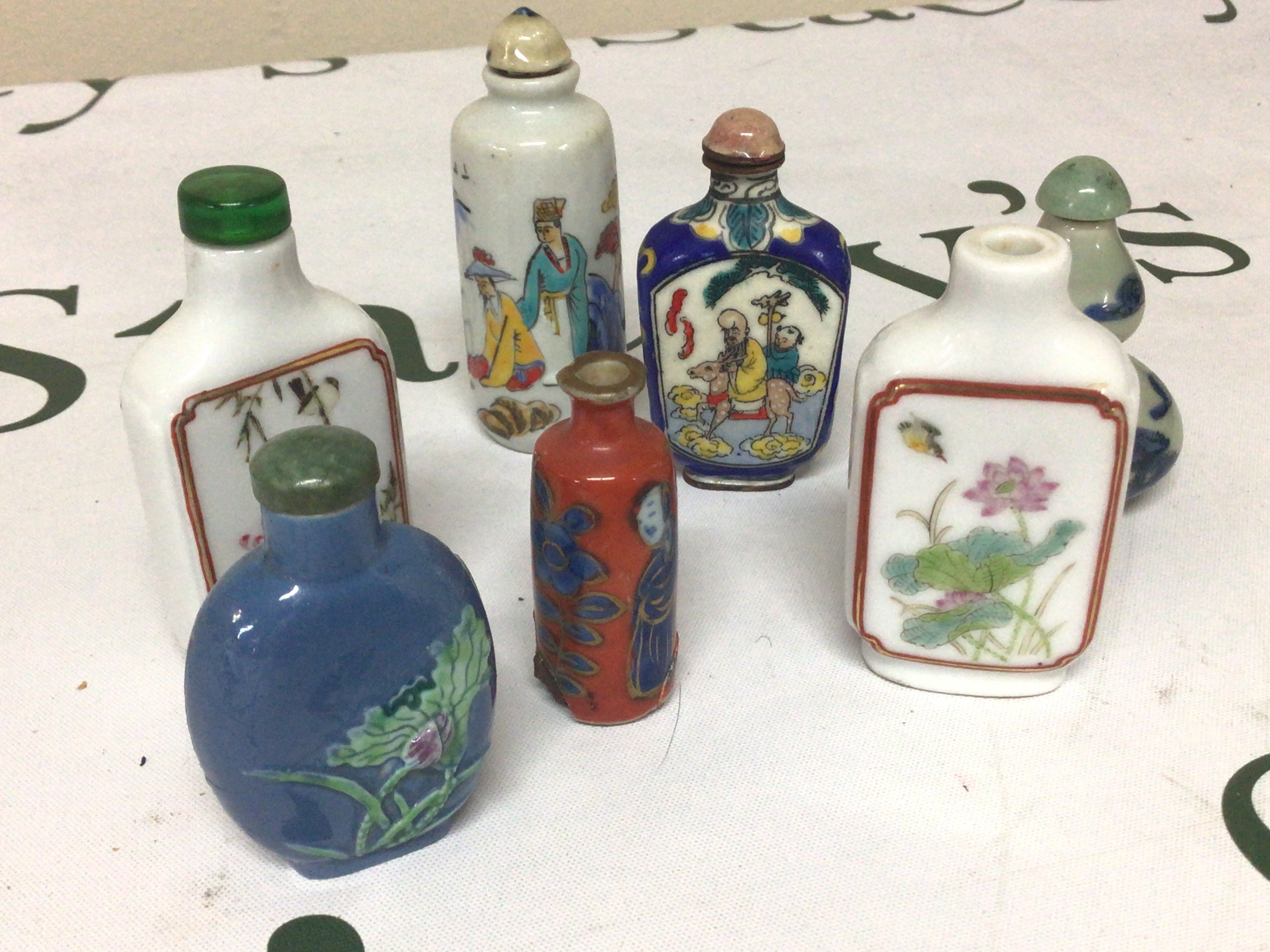 A collection of Chinese Republic and other porcelain scent bottles two with obvious damage.