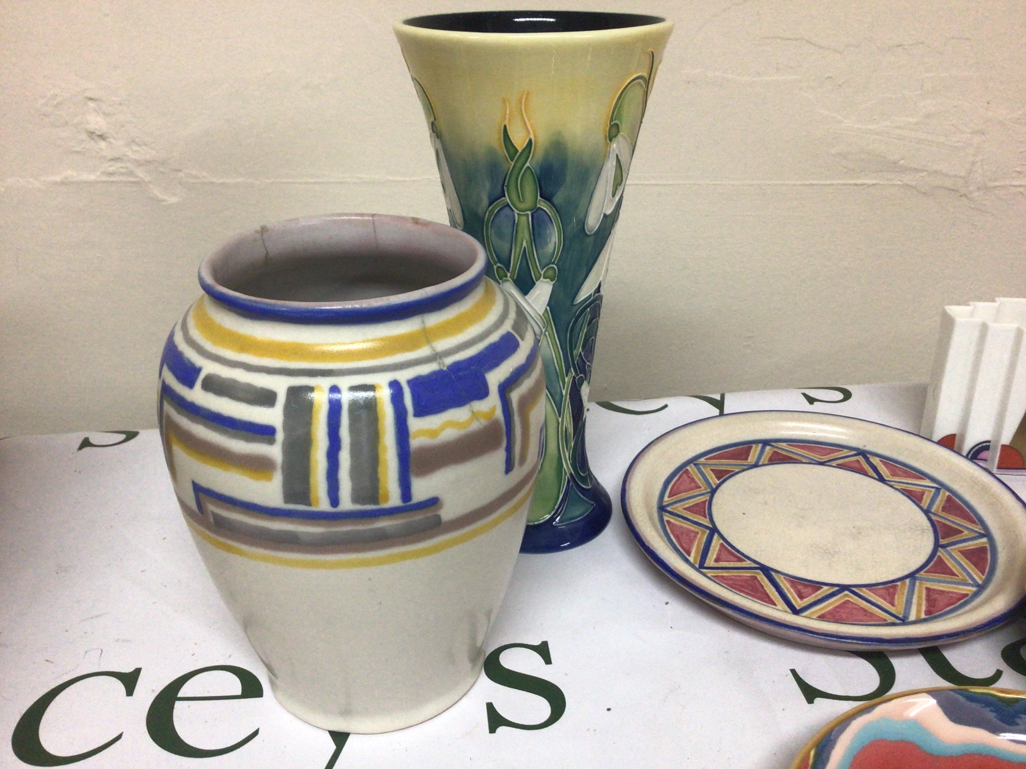 A limited edition Poole dish Sun & Moon 45/1000 signed to the reverse An Art Deco design Poole cigarette holder Jersey Bouchet Agate ware limited edition and other ceramics.