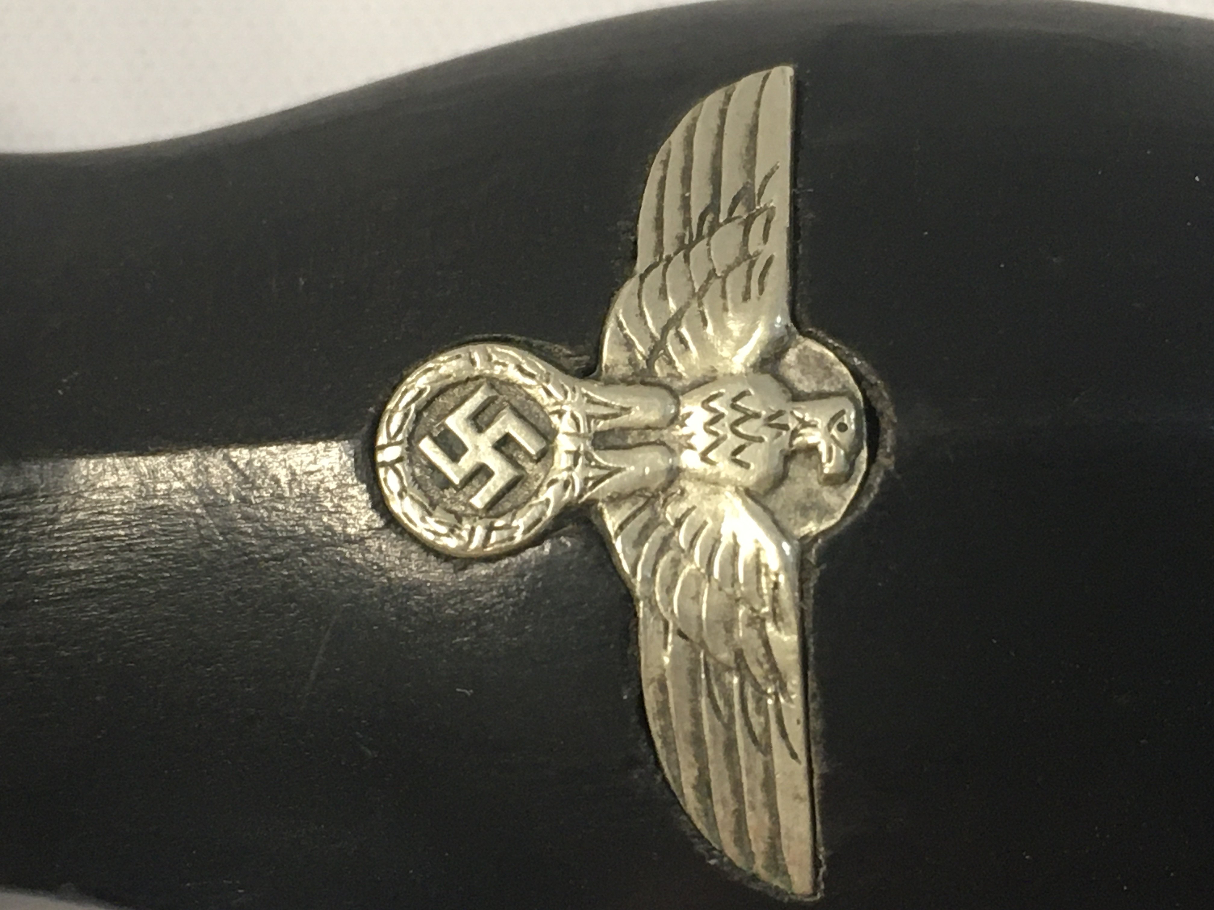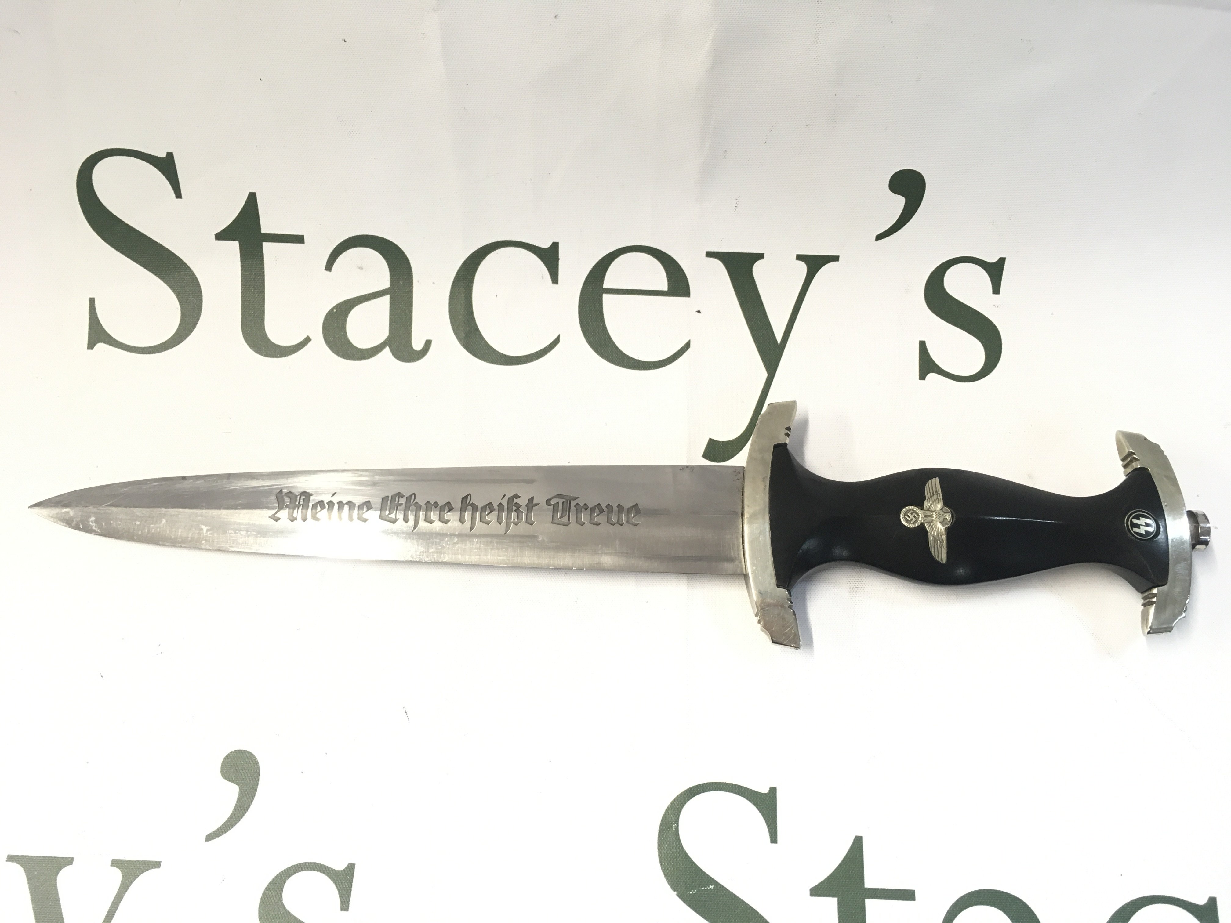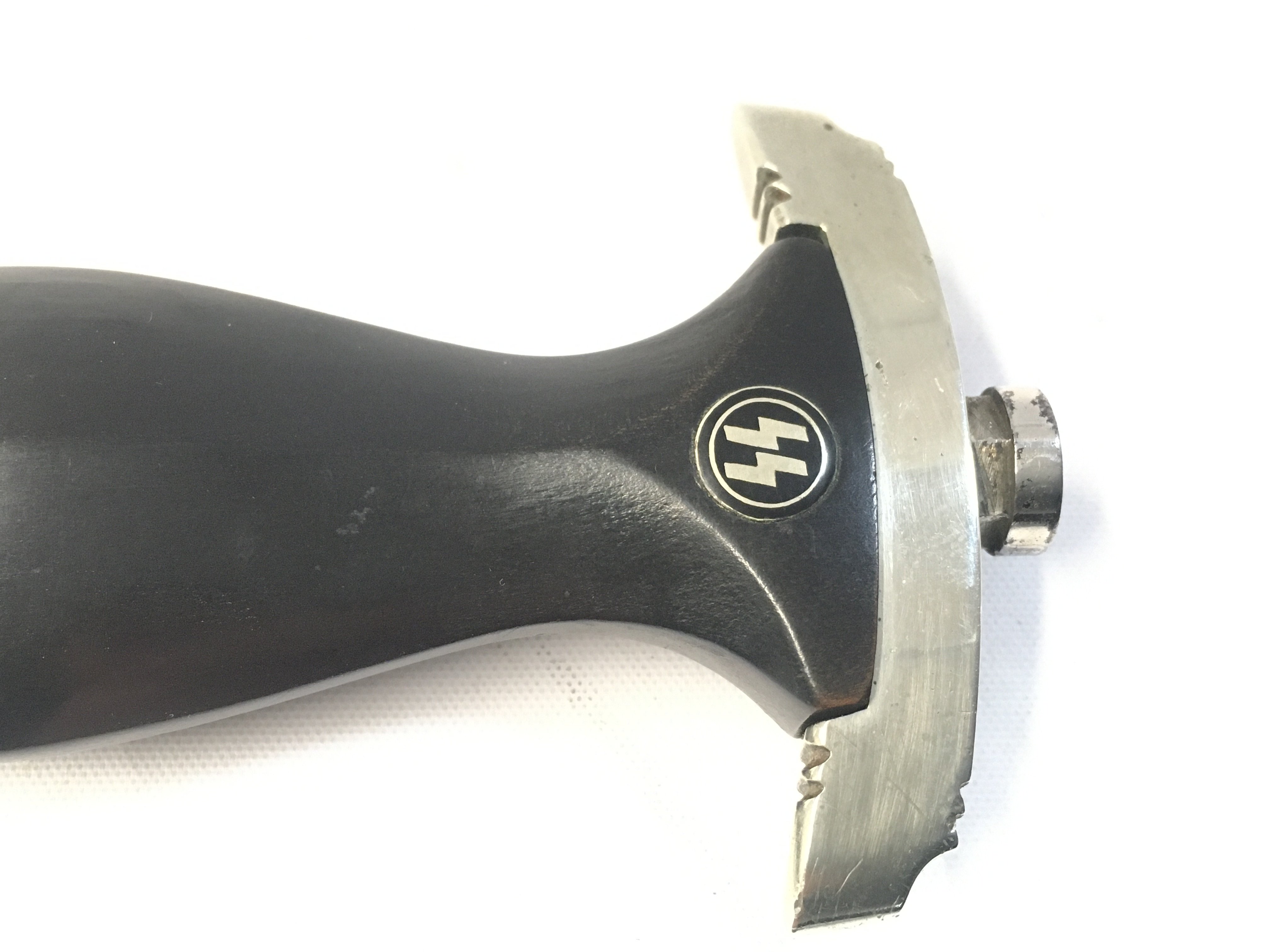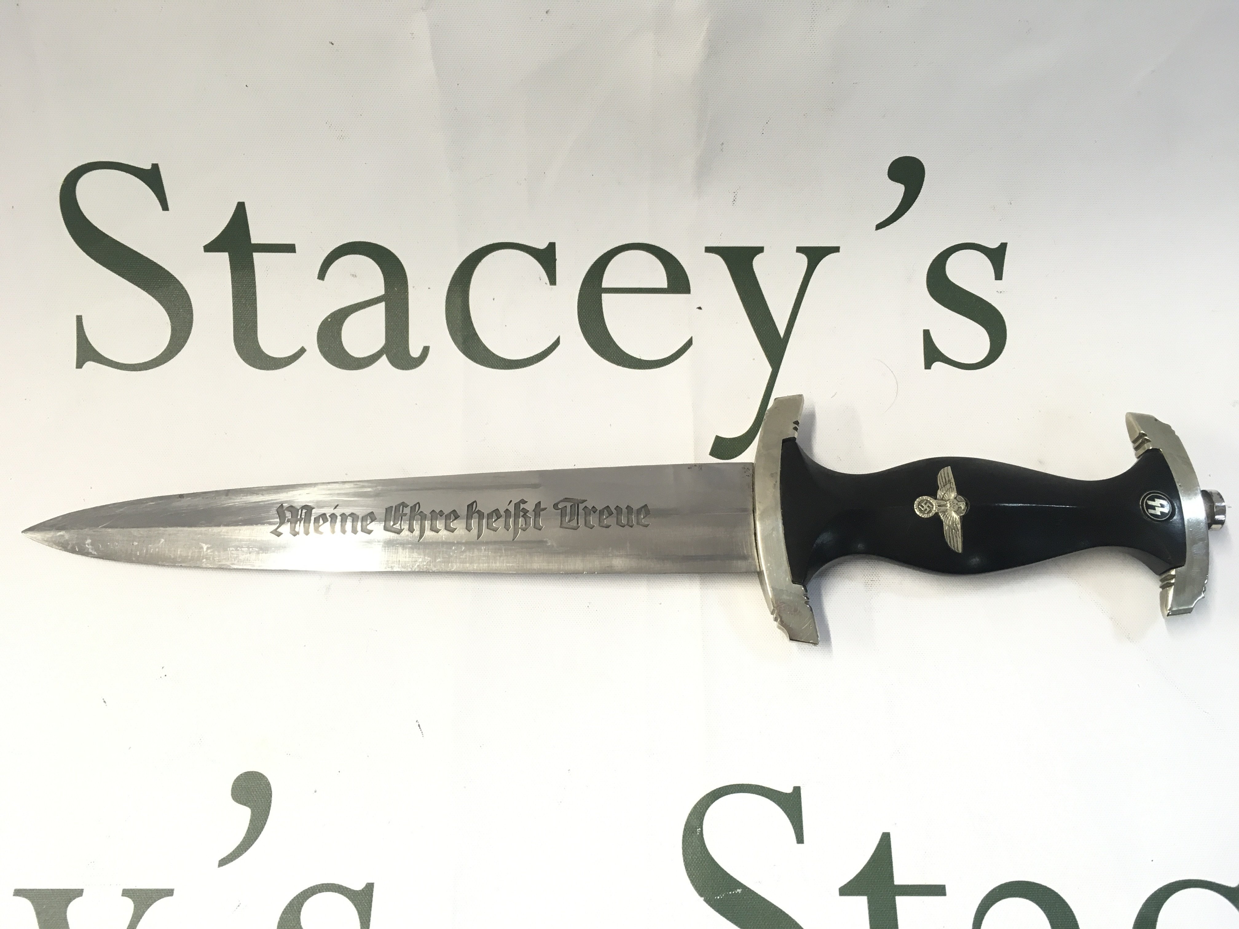 A very rare WW2 Third Reich SS dagger blade by F.W Backhaus with an original anodised scabbard, District III. blade 21.5cm long, total length 27.5cm long approximately.