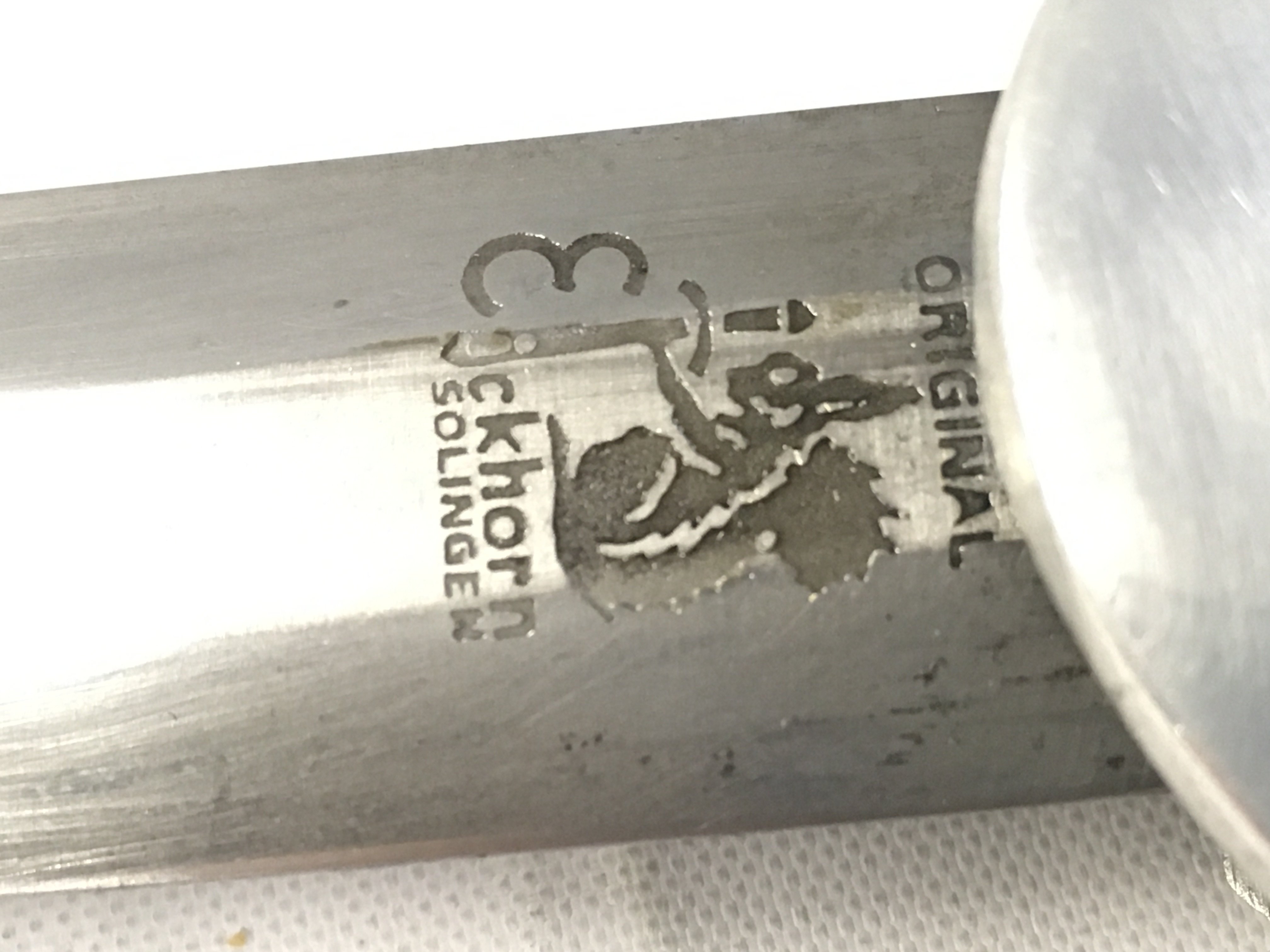A First pattern Bahnschutz Railway Police Eickhorn knife with longer grip and knot (post war). 26cm long blade, 37.5cm total length.