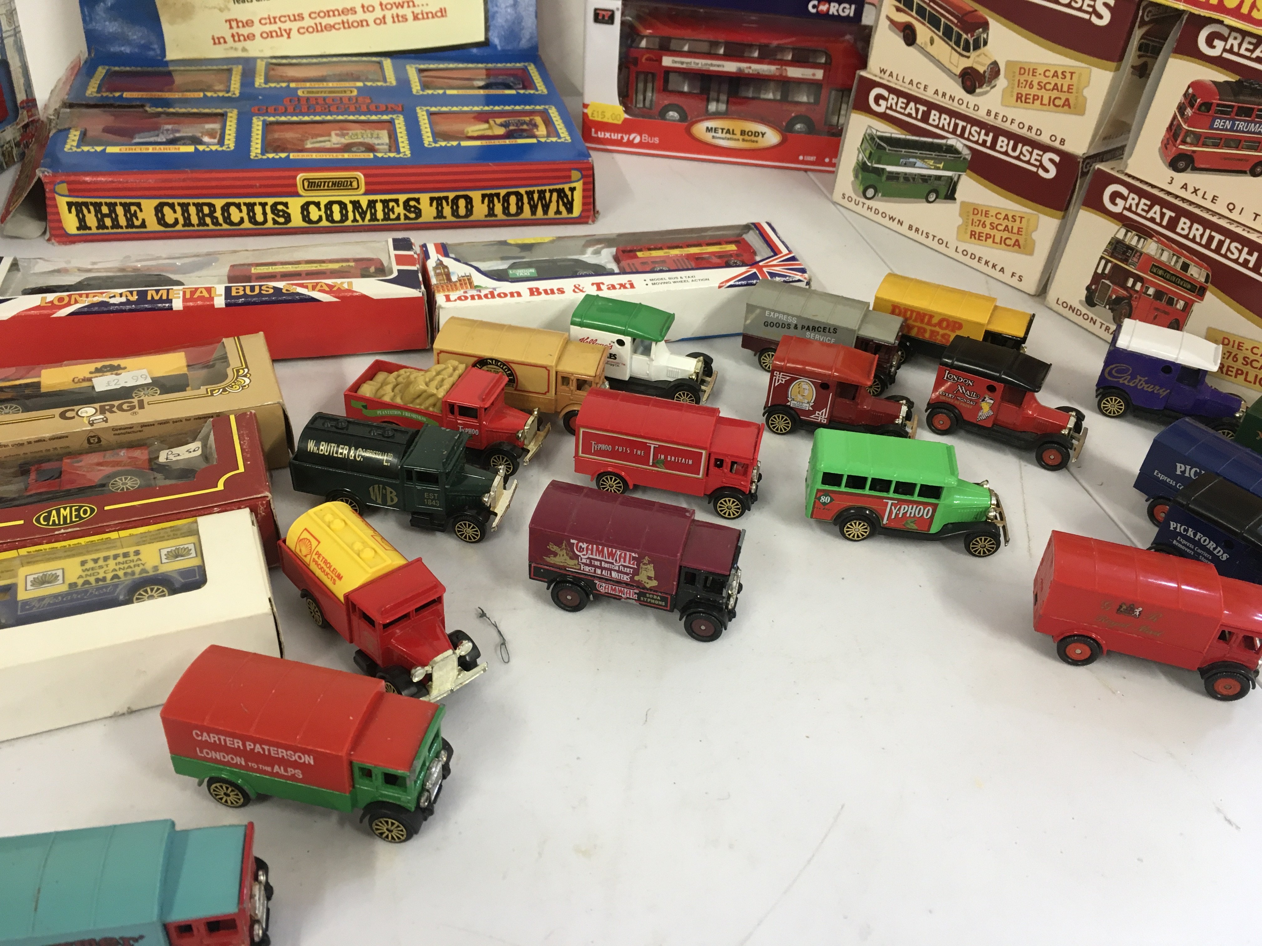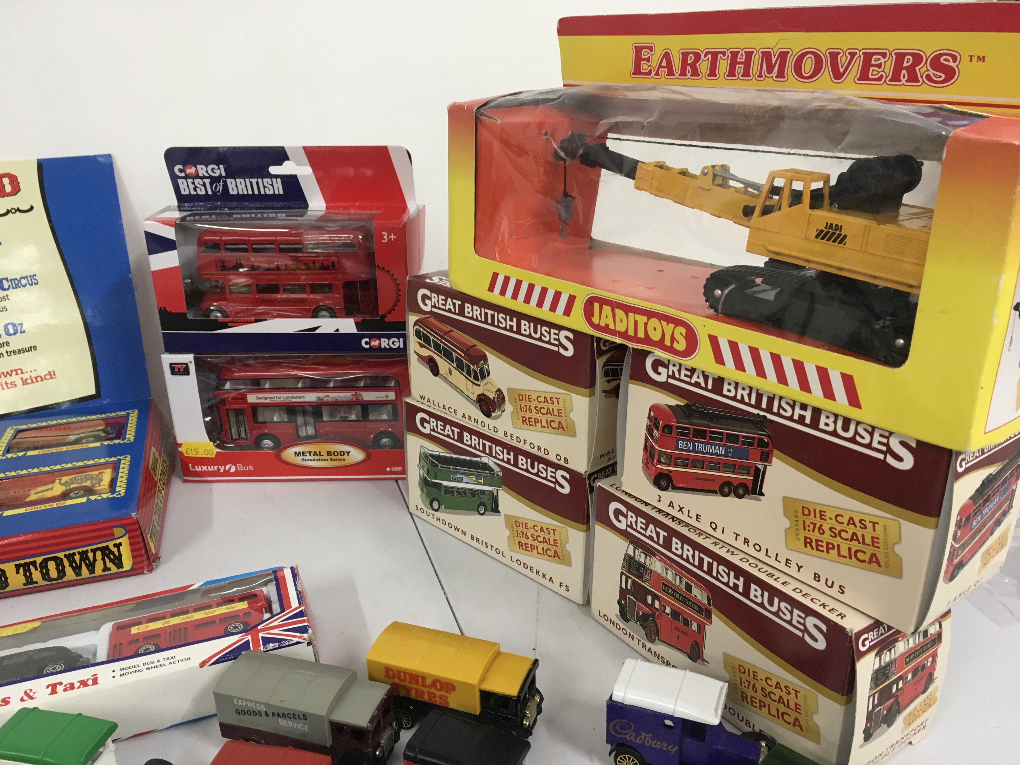 A collection of 15 boxed and 18 loose diecast and plastic model vehicles mostly buses by Matchbox..Corgi..Atlas etc. no reserve