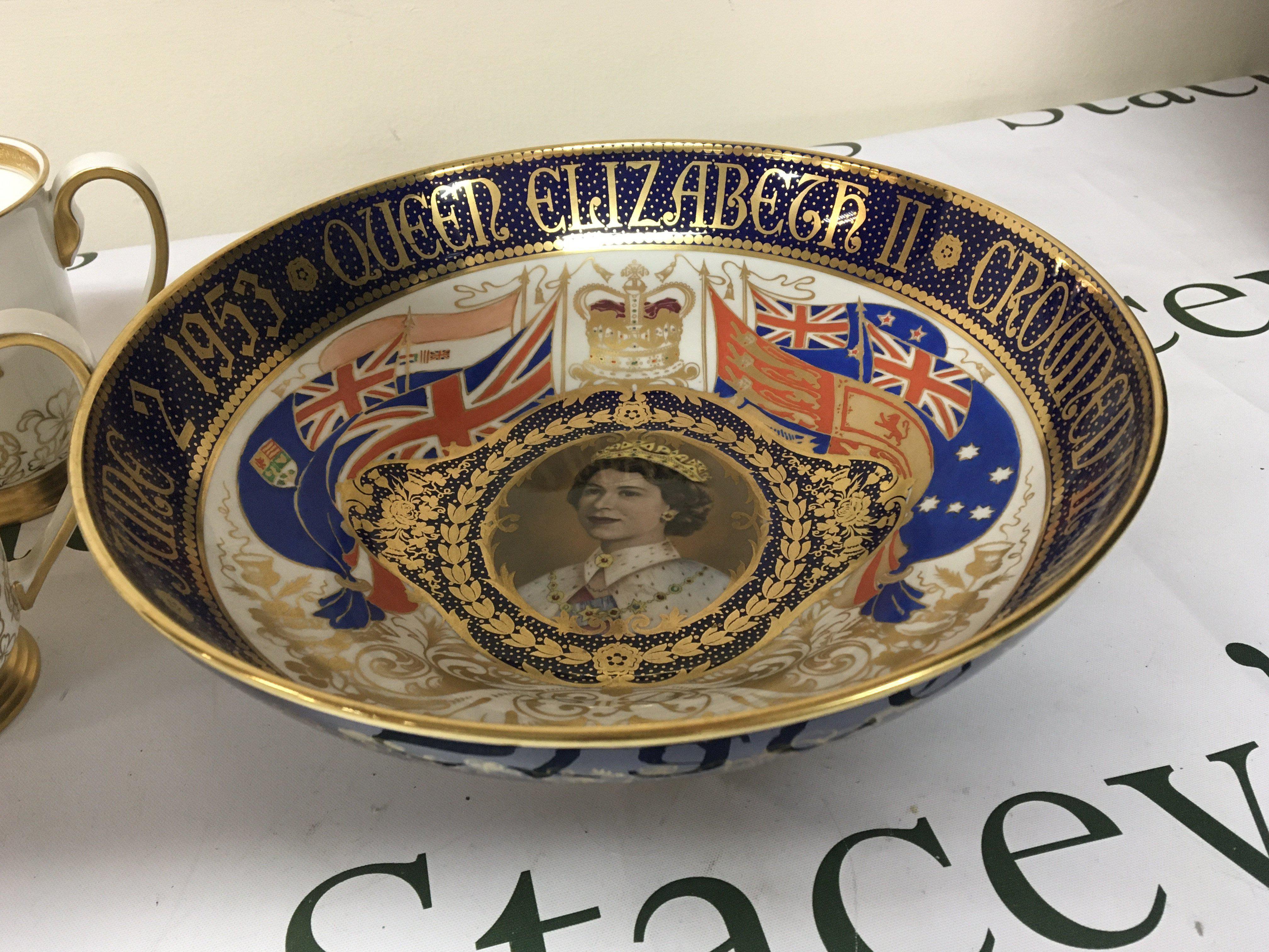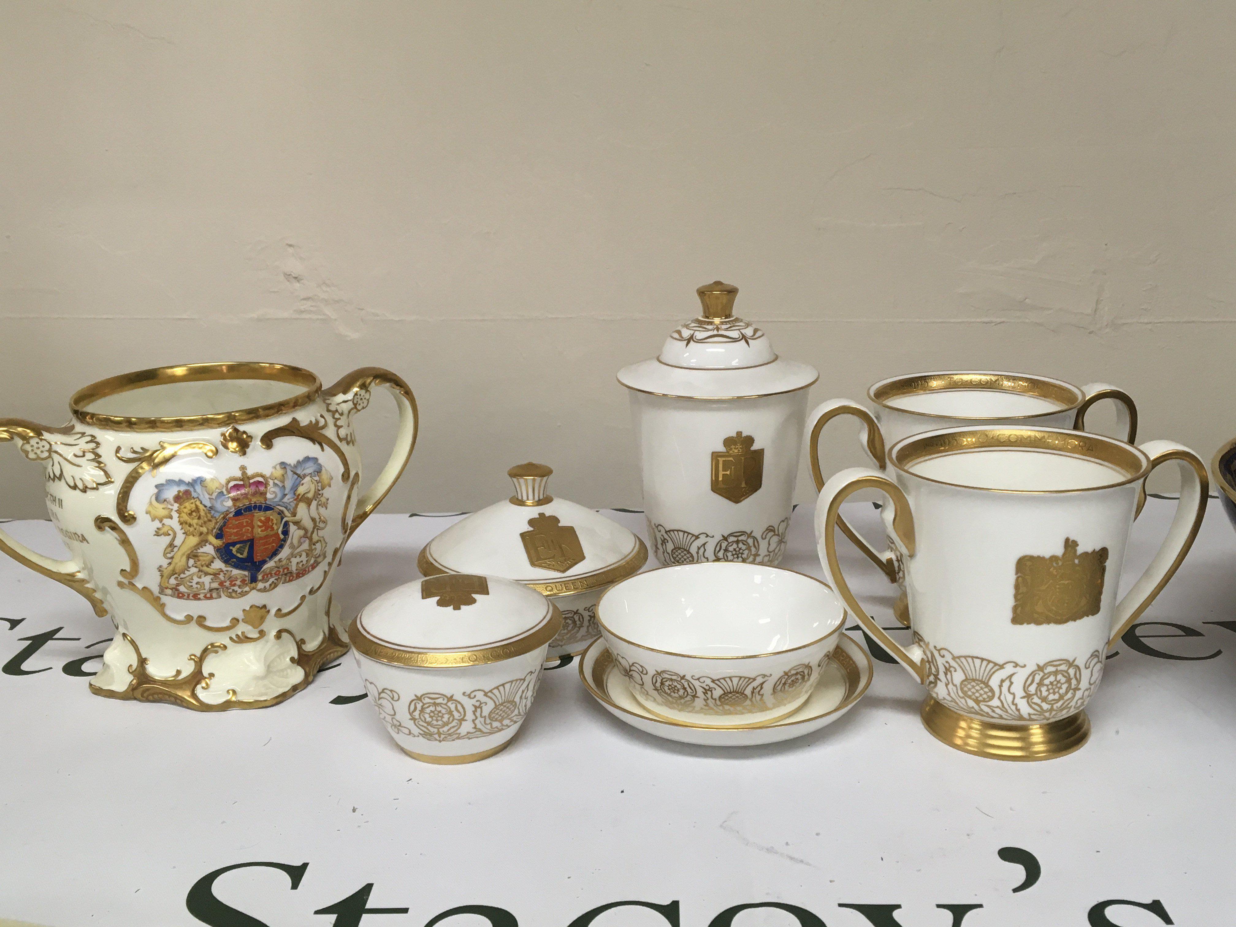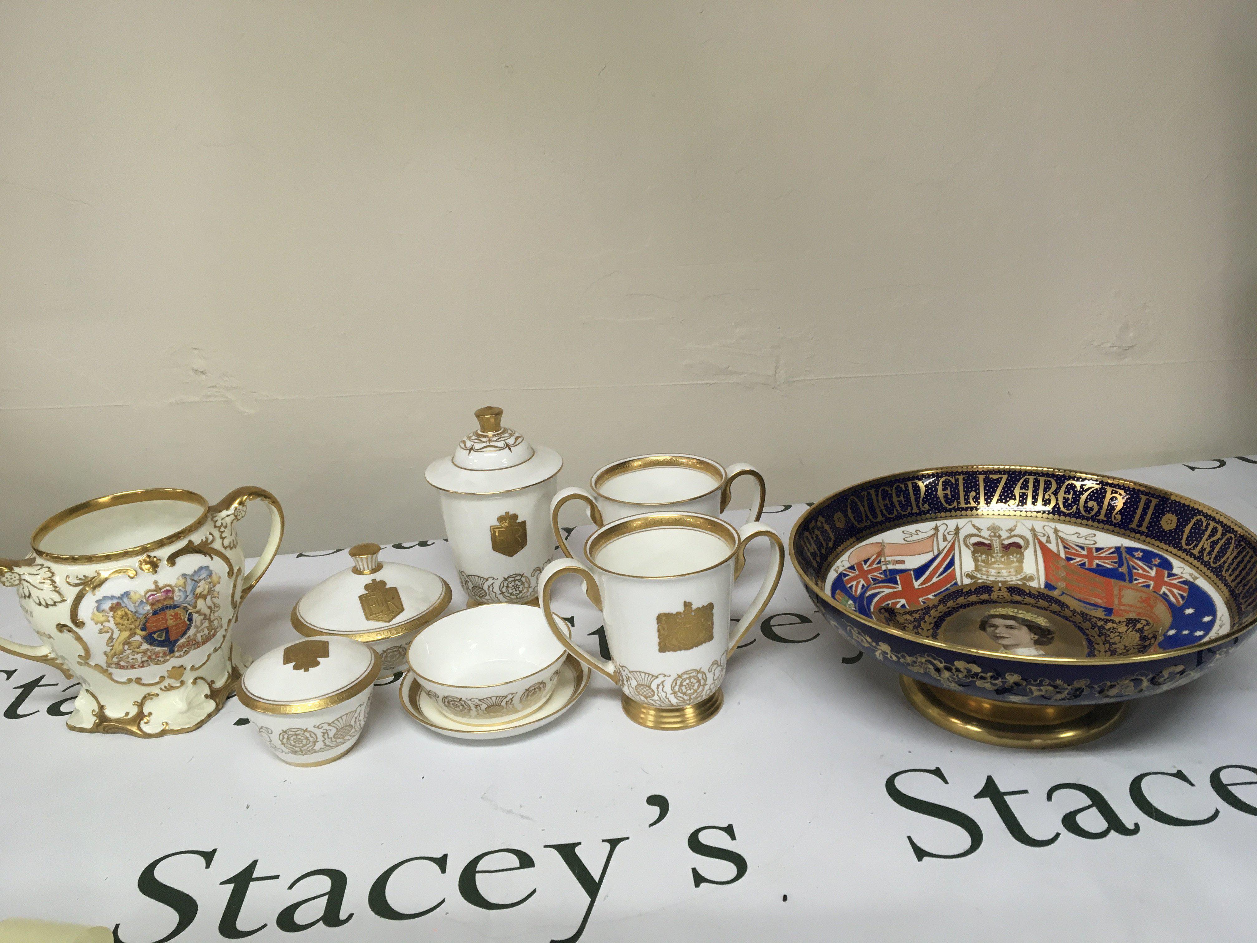 A collection of quality bone china and porcelain Elizabeth II commemorative Aynsley Paragon and Minton all elaborate decorated with applied gilt. no obvious damage NO RESERVE.