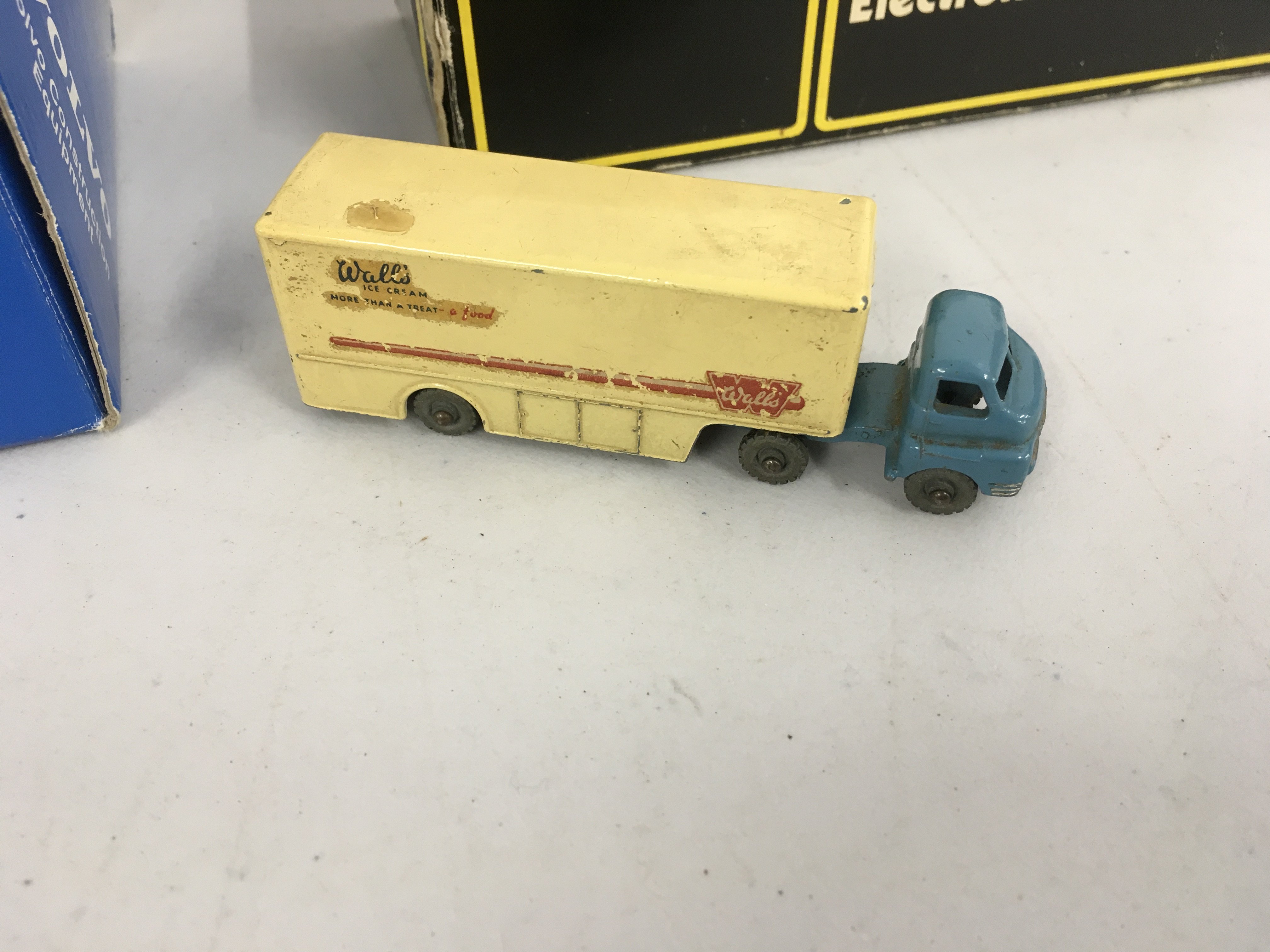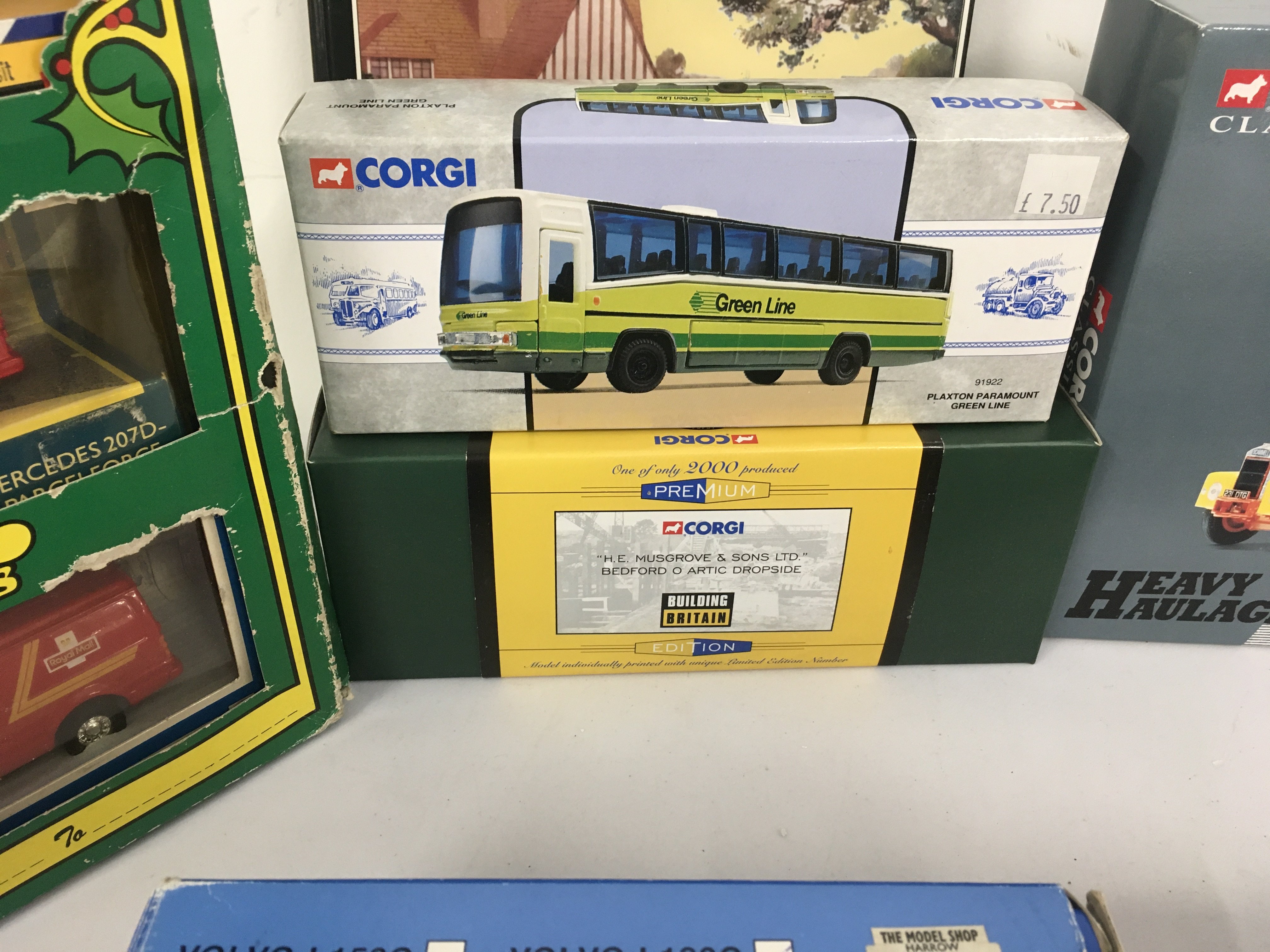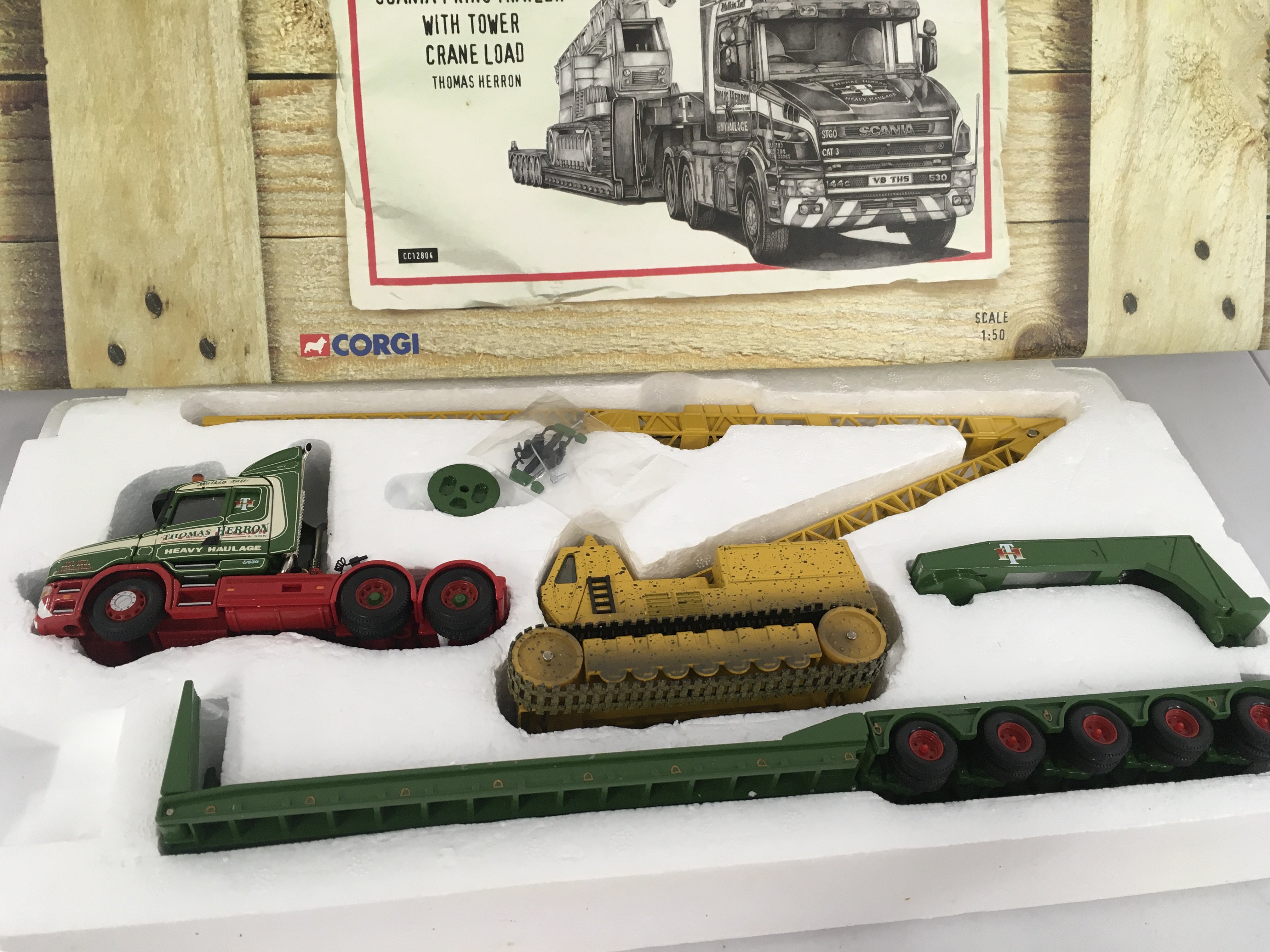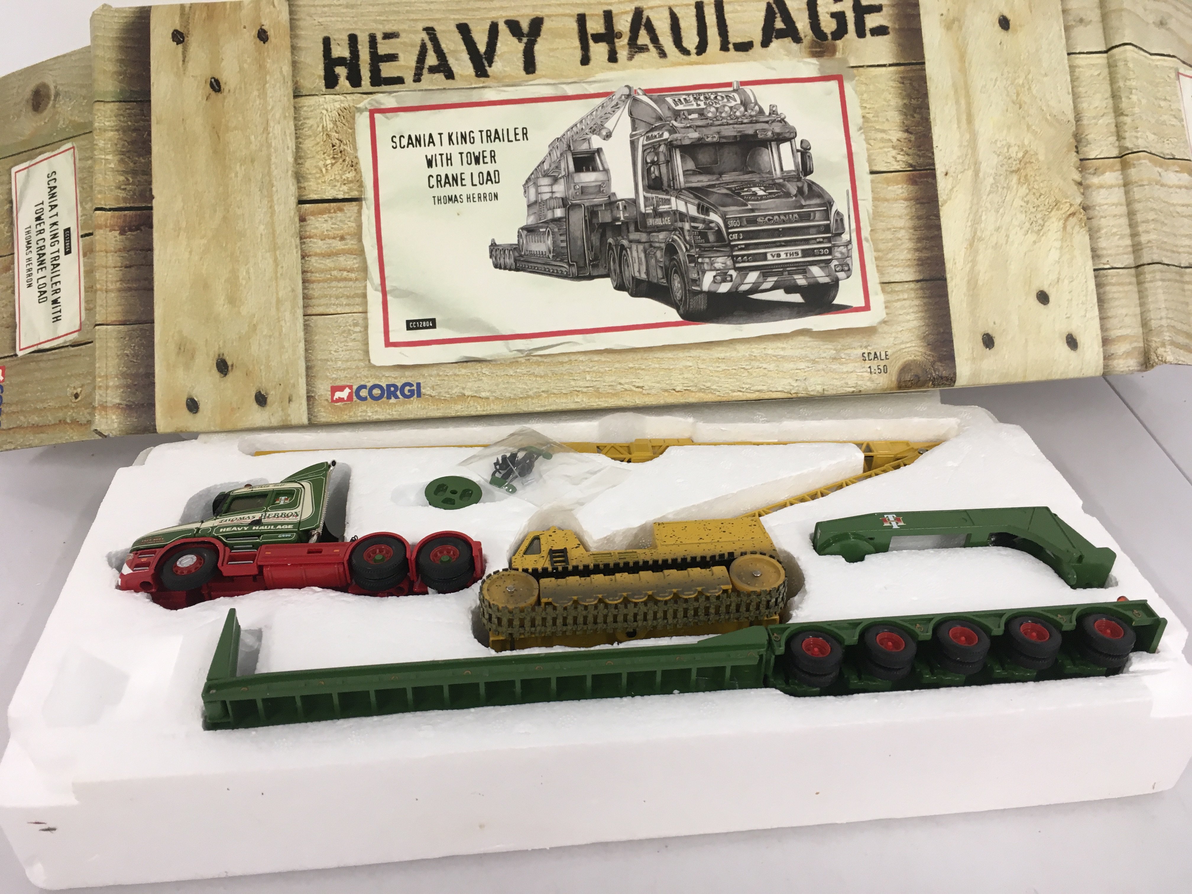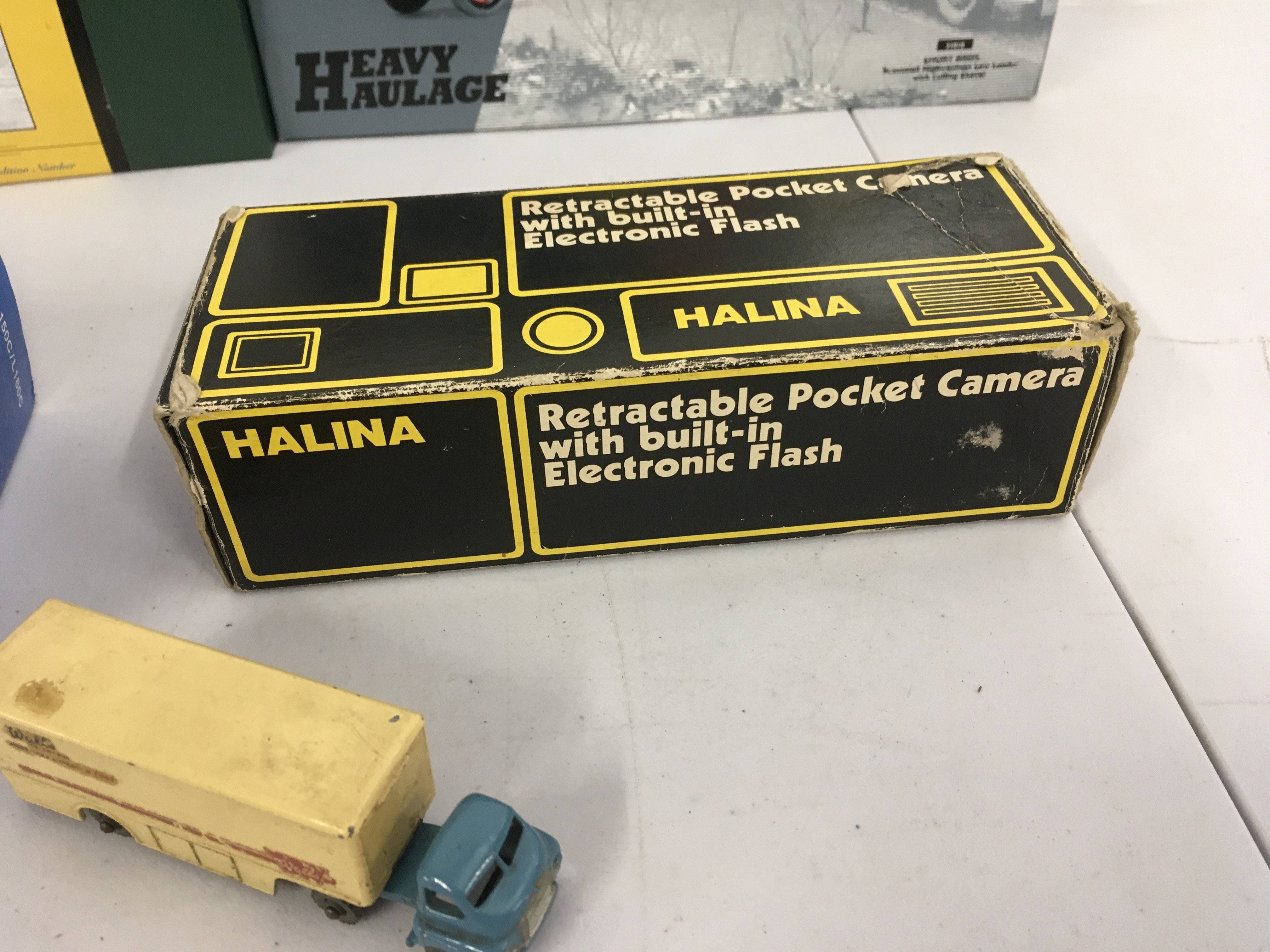 A collection o boxed diecast vehicles by Corgi etc. also includes a loose Matchbox no.2 Articulated lorry Walls ice cream. A boxed Halina pocket camera and book on London suburbs included. Also includes Heavy Haulage Scania T King Trailer with tower Crane load .No reserve (2)