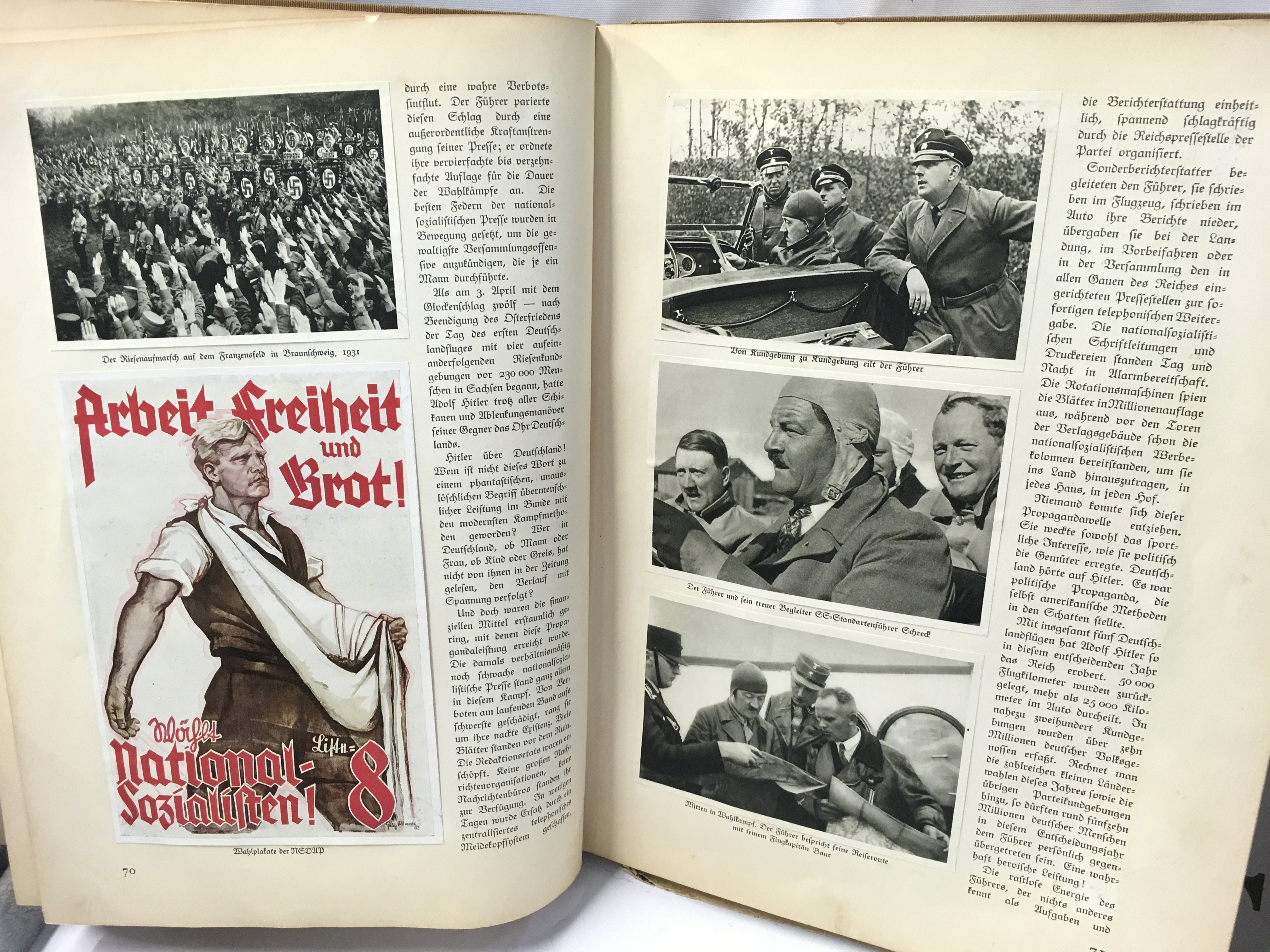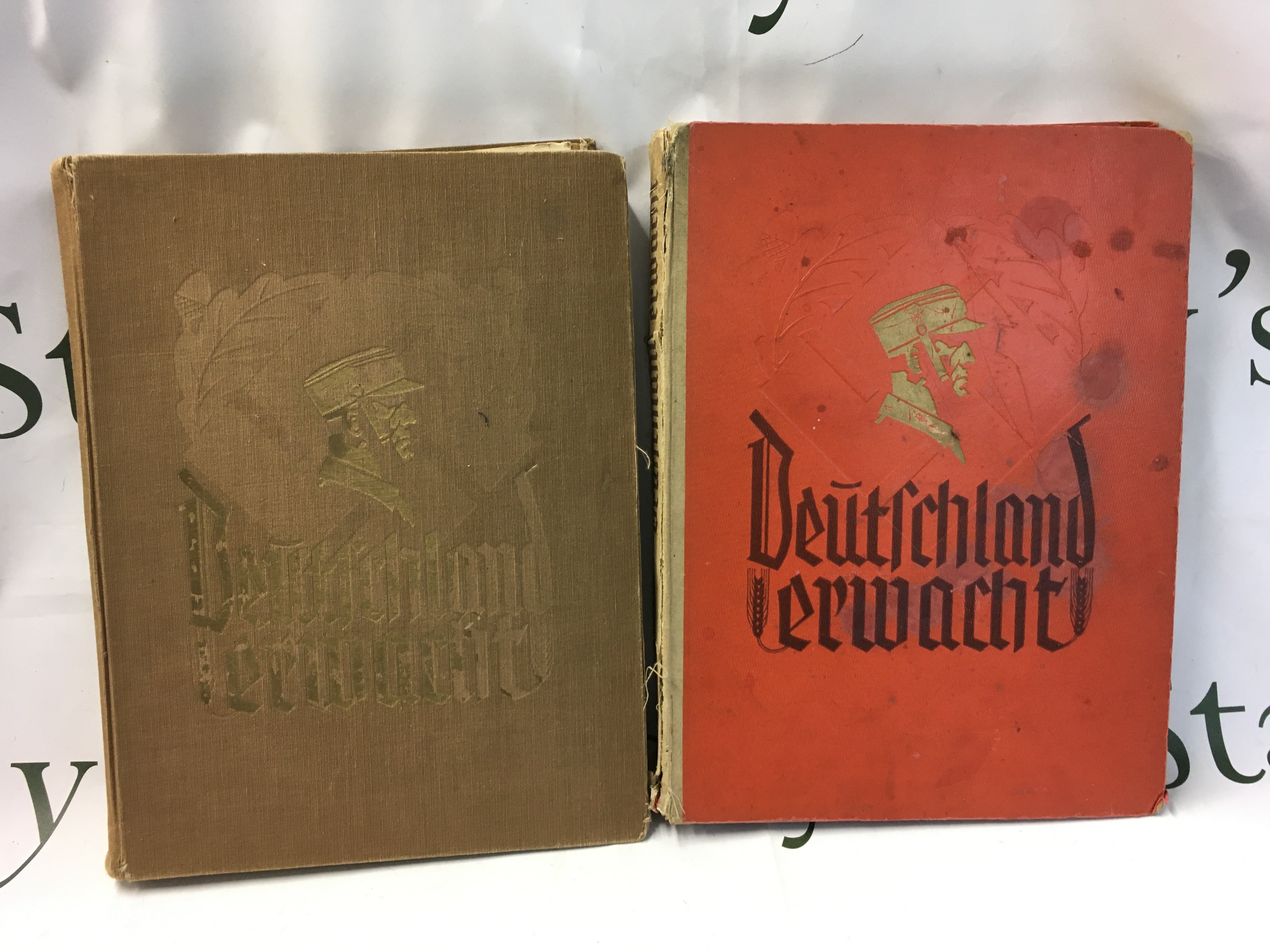 Two copies of Deutschland Erwacht, (Germany Awakes) published in 1933 by the Nazi party, a propaganda piece that chronicles the rise of the Nazi Party from its early struggles to its election victory. It was the first high quality publication produced by the Nazis after their election in 1933 and over two million copies were sold. Postage category C