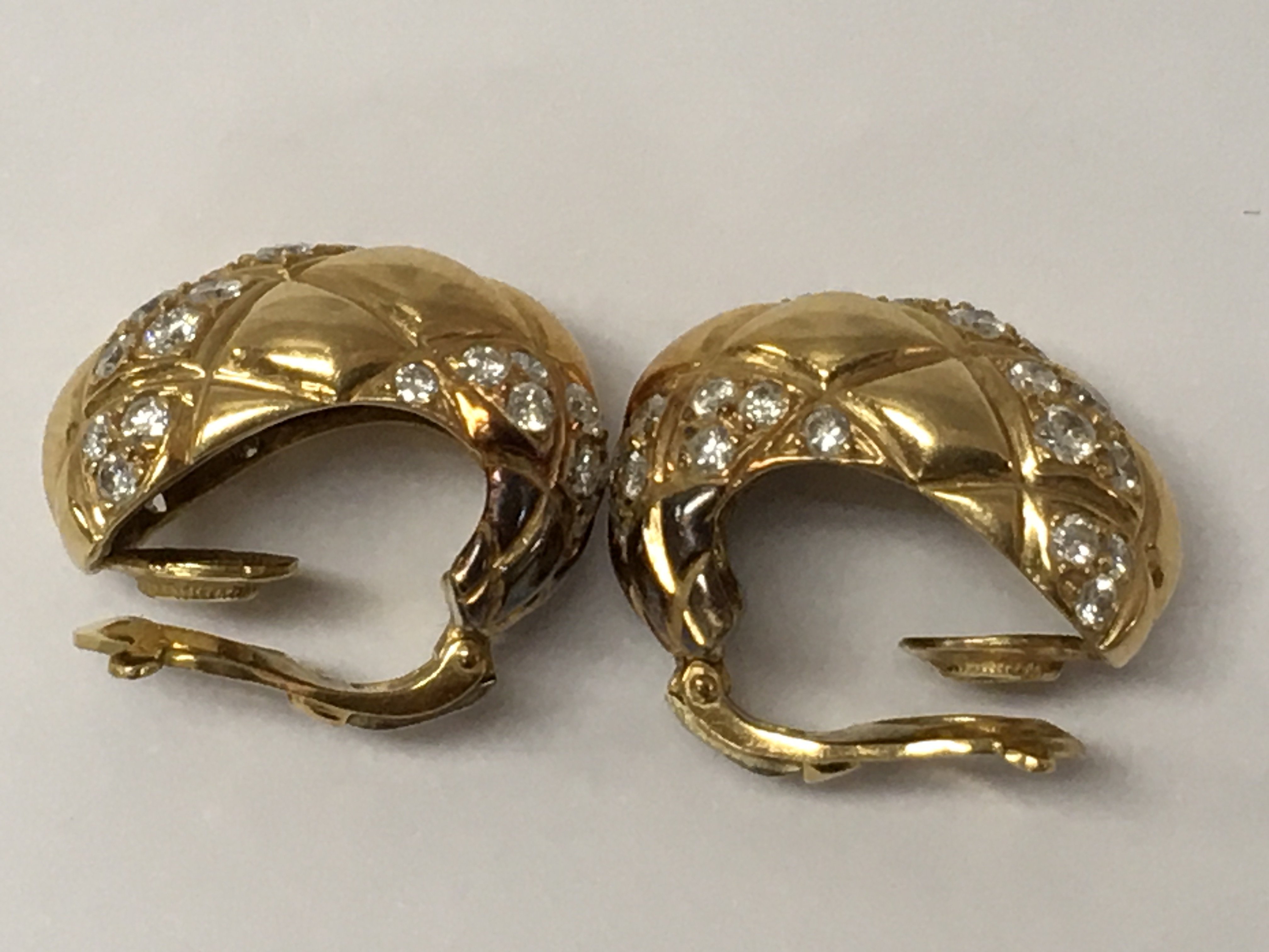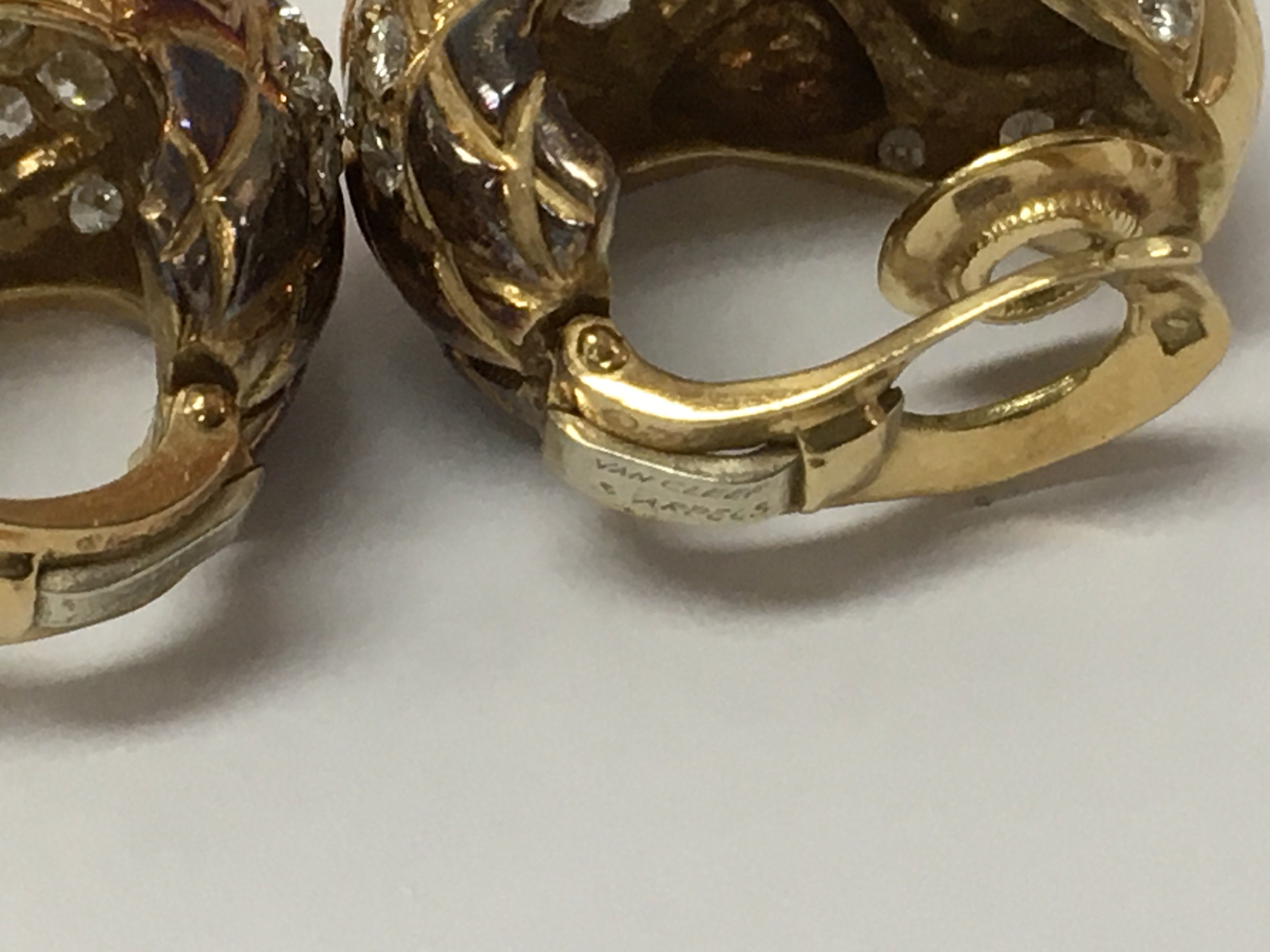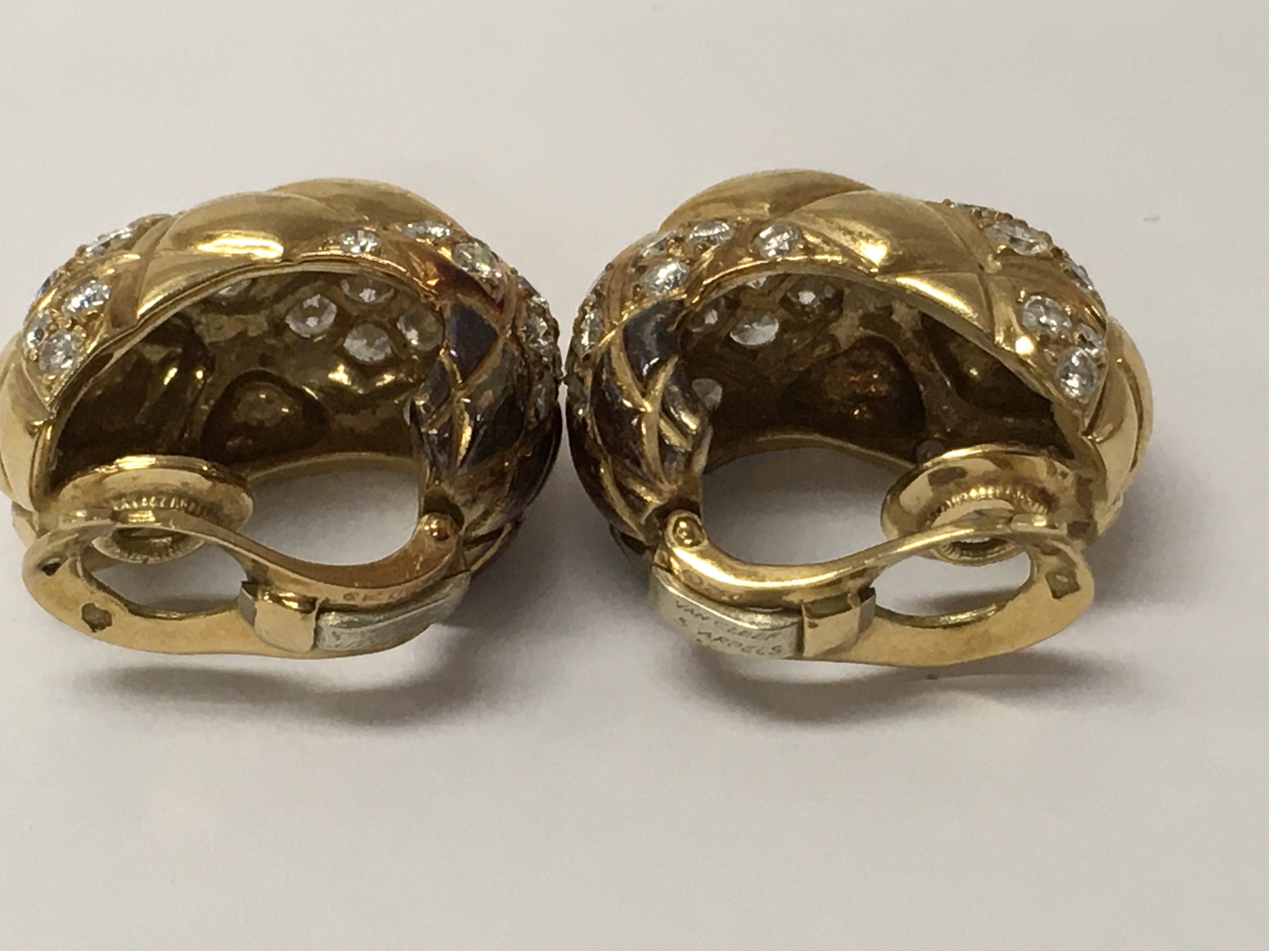 A pair of 18ct Van Cleef + Arpels diamond set ear clips 1.5cm numbered B3250 A9 With original leather pouch.